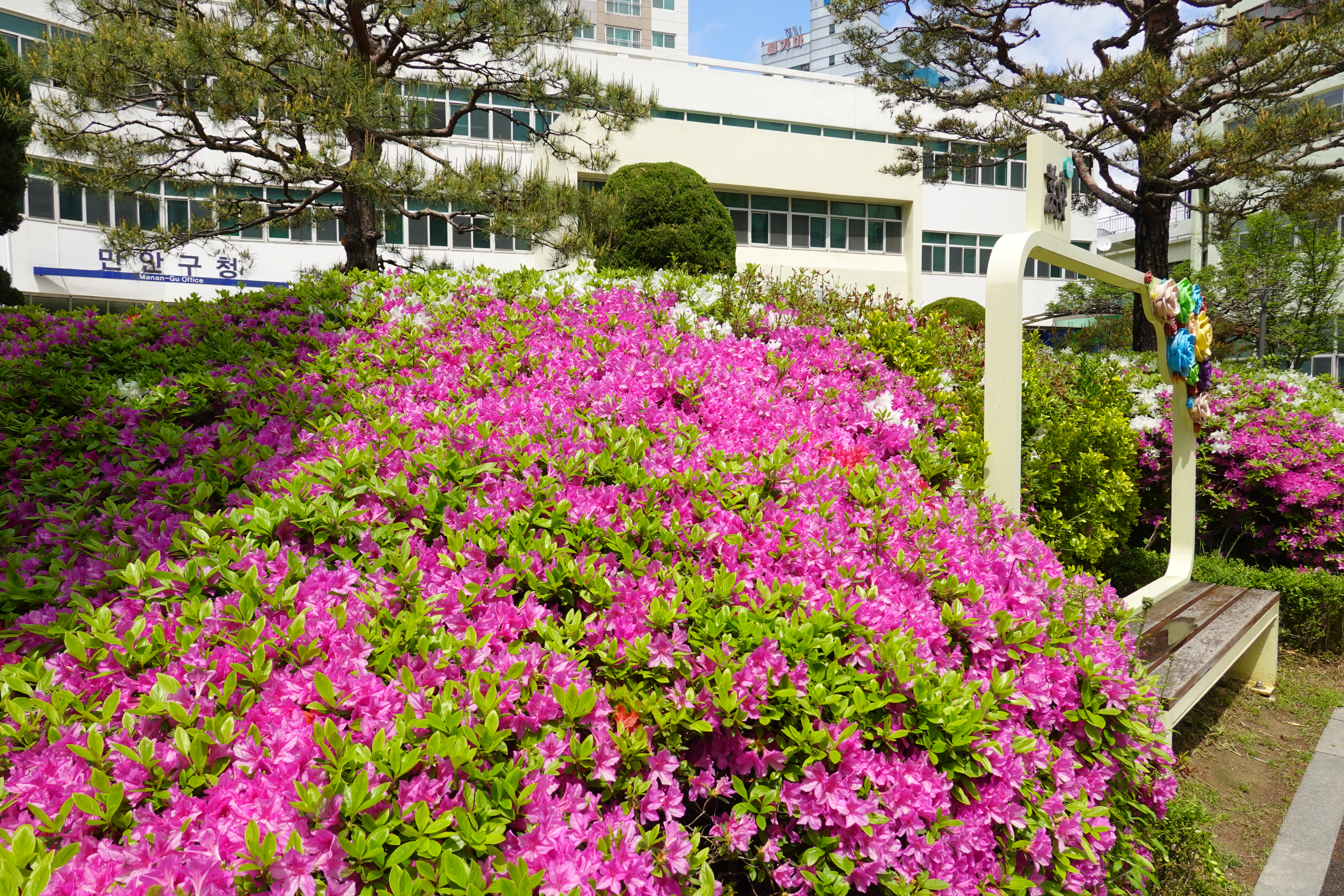 2024.04.24/ #도시기록 #안양 #만안구청 #꽃 #철쭉/ 푸르른 녹음과 아름다운 꽃으로 물들어가는 안양 만안구청. 구청 정원은 지금 울긋불긋 만발한 철쭉꽃으로 꽃대궐.
