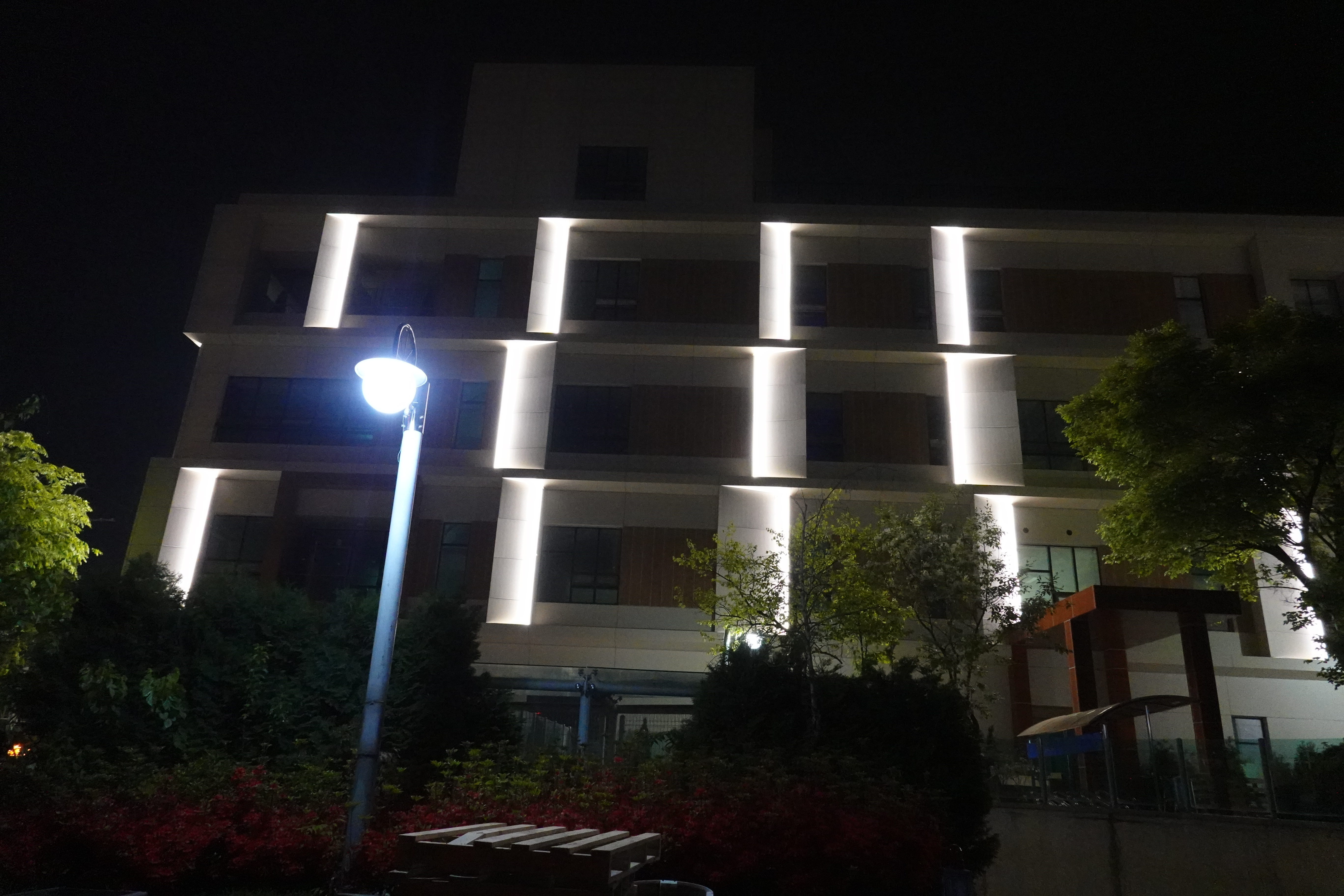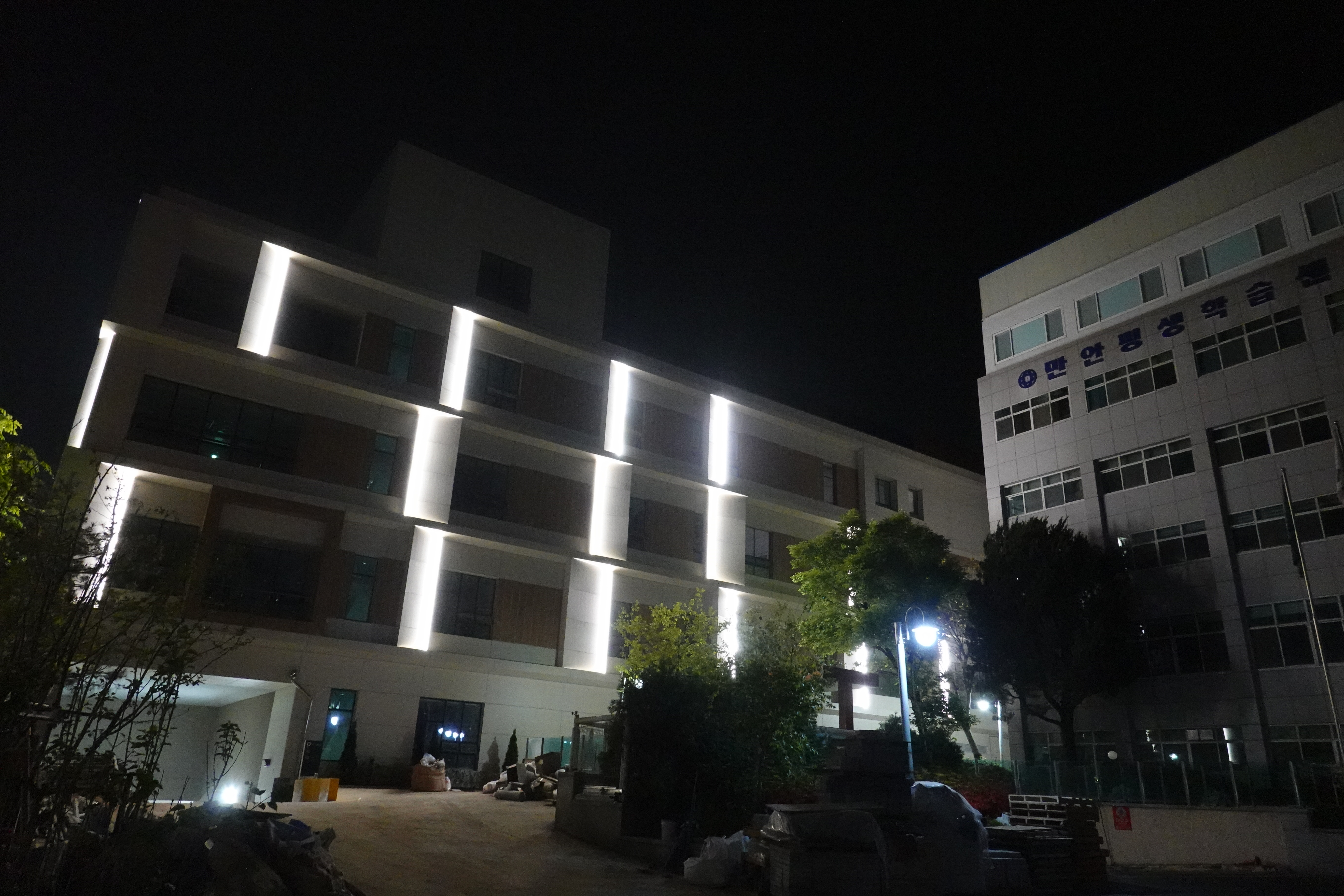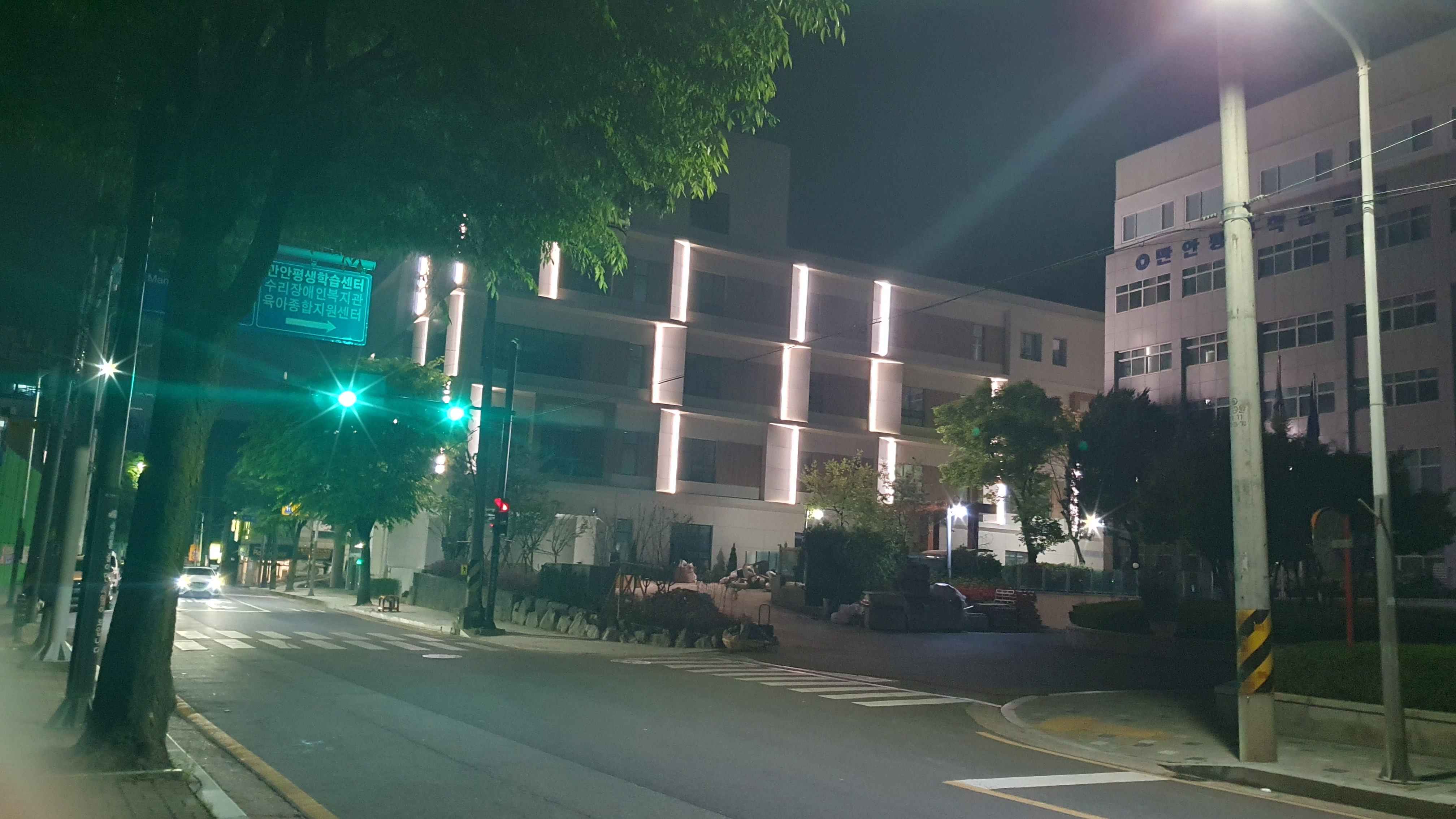 2024.04.30/ #도시기록 #안양6동 #건축물 #장애인복합문화관/ 안양6동 만안평생교육센터(만안구 안양동 477-1번지 일원) 테니스장 자리에 신축한 안양시장애인복합문화관이 개관을 앞두고 살내공사가 한창이다, 밤 시간 지나가다 건물에 조명이 켜져있기에 건물의 야간 풍경을 담아보았다.