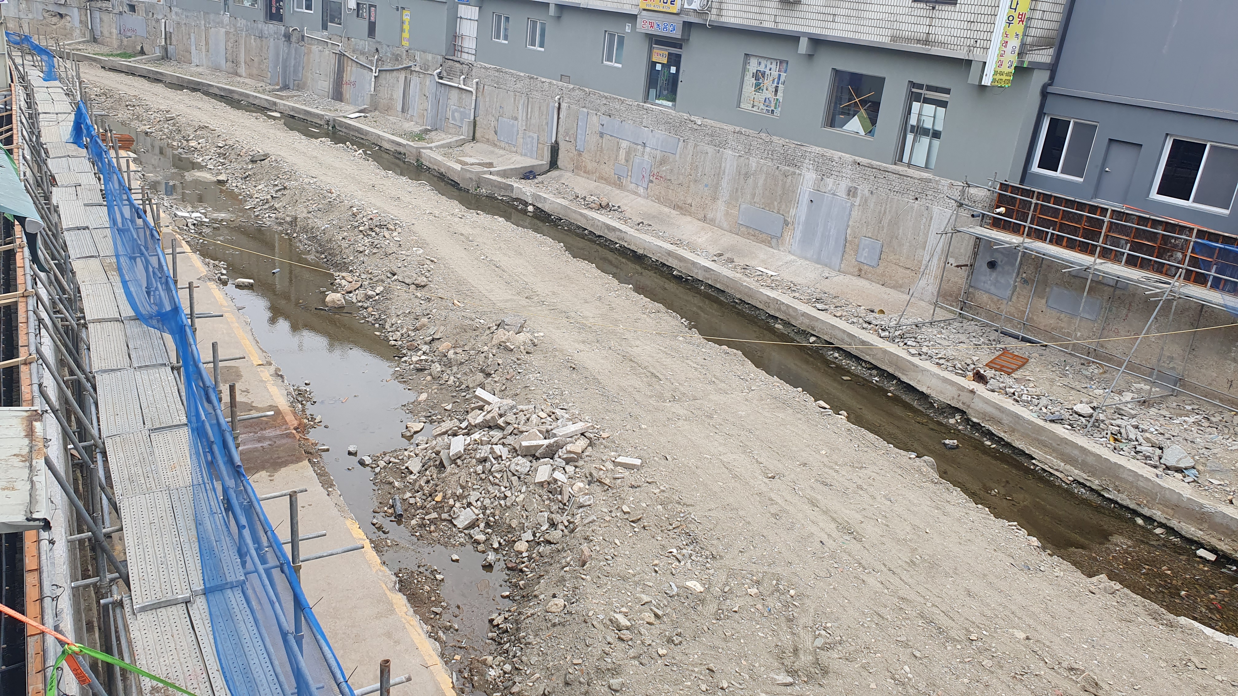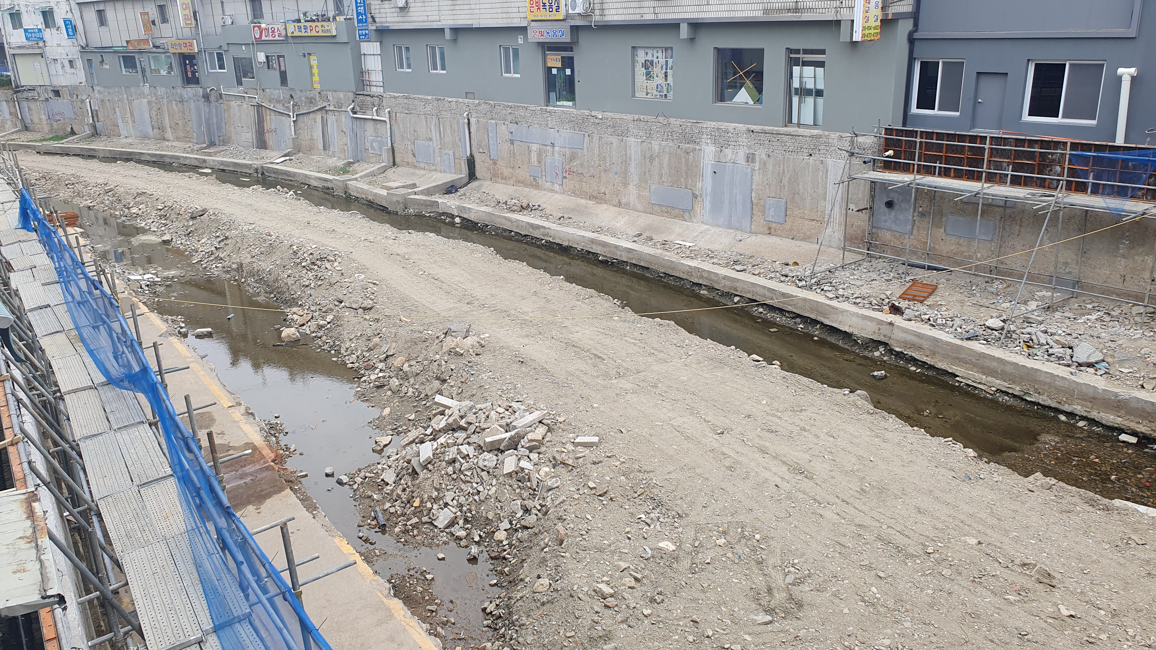 2024.04.30/ #도시기록 #안양 #수암천 #복개구간 #철거공사/ 안양만안구 도심을 관통하는 수암천을 자연형하천으로 복원하기 위해 남아있는 복개 구간에 대한 철거공사가 한창이다. 공사 구간은 현재 수암천의 안양역 인근 양지4교∼양지5교 사이 267m로 1986년 복개돼 주차장(176대)으로 사용되어 왔던 곳이다.