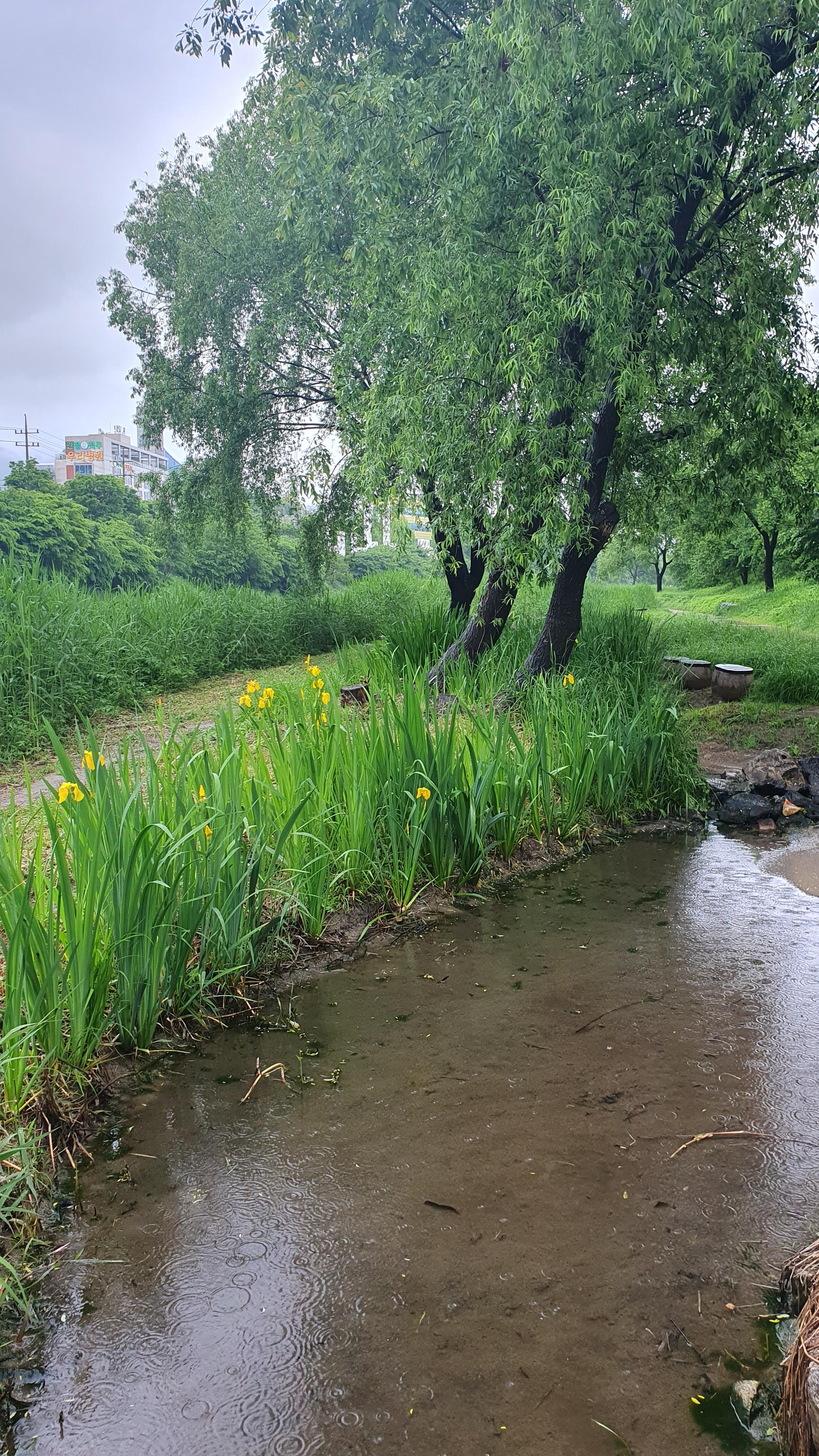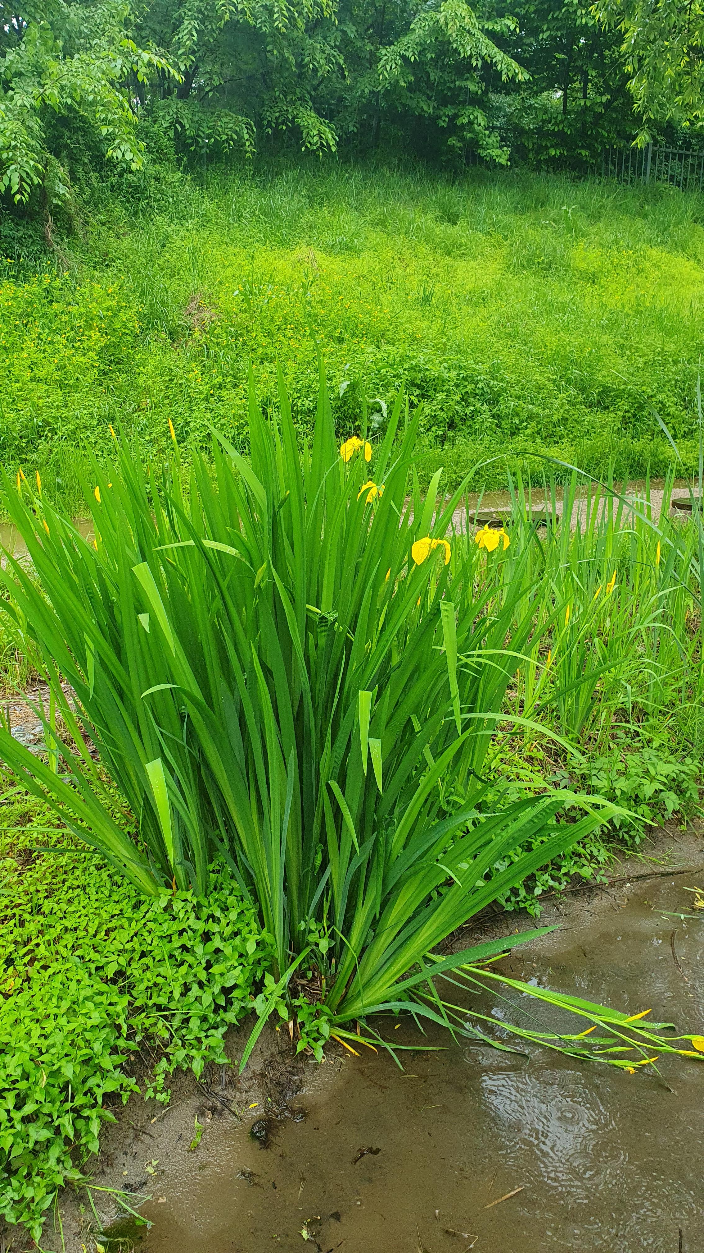 2024.05.05/ #도시기록 #생태 #노랑창포 #부채붓꽃 #안양 #학의천 #학운습지/ 매년 5월 이맘때면 안양 학의천 습지에서 붓꽃과 창포꽃 아씨들을 만나던 기억에 비가 오는날 안양 학의천 학운습지엘 갔더니 정말보고싶던 아씨들이 노란색과 보라색 옷을 입고 어여쁜 모습으로 반겨주네요.