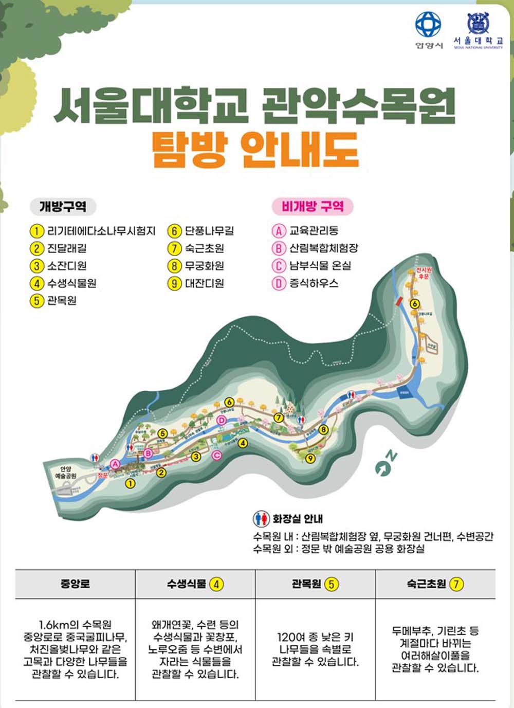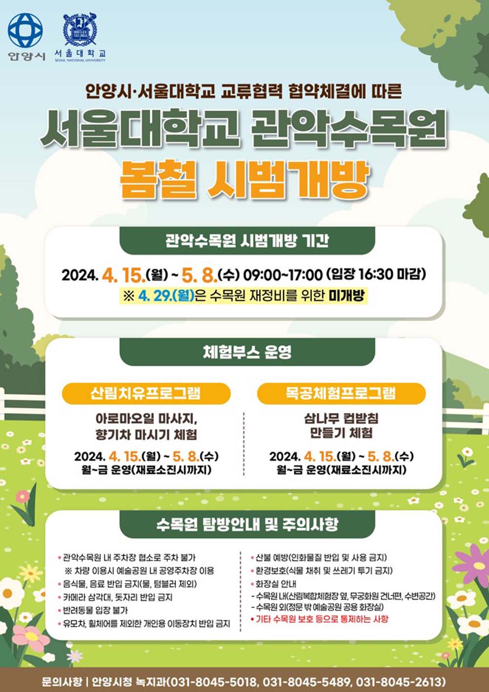 비개방 학교수목원인 '서울대 관악수목원'이 한시적으로 개방한 이후 시민들의 만족도가 매우 높은 것으로 나타나자 안양시는 서울대 측과 실무협의를 통해 지난 4월 15일부터 5월 8일까지 32일간 한시적으로 개방했다.