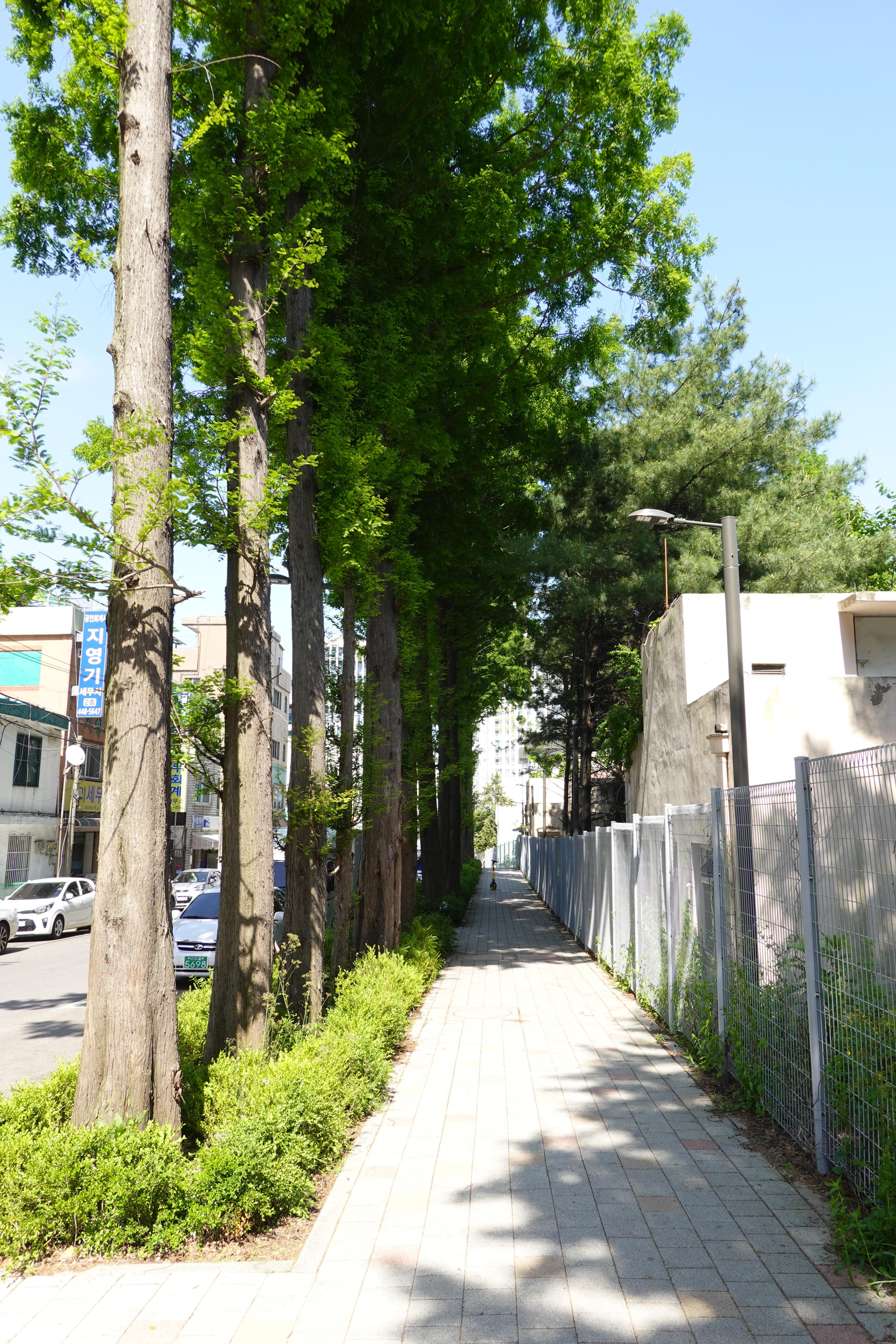 2024.05.10/ #도시기록 #안양 #소곡로 #가로수 #메타쉐콰이어 #통학로/ 안양6동 소곡로의 멋진 메타쉐콰이어 가로수길. 소곡로 남쪽 옛검역원 북쪽 담장을 부지 안쪽으로 셋백시켜 조성한 보행로(인도). 안양세무서 끝자락에서 중앙로(은혜와진리교회 남쪽사거리)와 연결되는 이 도로는 소곡천을 복개하여 만든 길로 길폭이 좁아 인도가 없었다. 안양시는 검역원 담장을 허물고 부지 안쪽으로 보행로를 만들었다. 담장을 허문 일부 구간에는 기존에 심어져있던 메타쉐콰이어 가로수가 자라고 있어 나무숲 그늘이 생겨 땡볕 여름철 그늘 사이로 쾌적하게 다닐 수 있는 걷고싶은 길로 탄생했다. 특히 안양6동 소곡자이아파트에서 안양초교로. 안양로 도로 버스정류장에서 신성중.고교로 통학하는 학생들이 안전하고 편리하게 걸어다닐수 퉁학로가 됐다. 나무밑에 잠시 쉬어갈수 있는 나무벤치 한두개 있으며 금상첨화일듯 싶다.