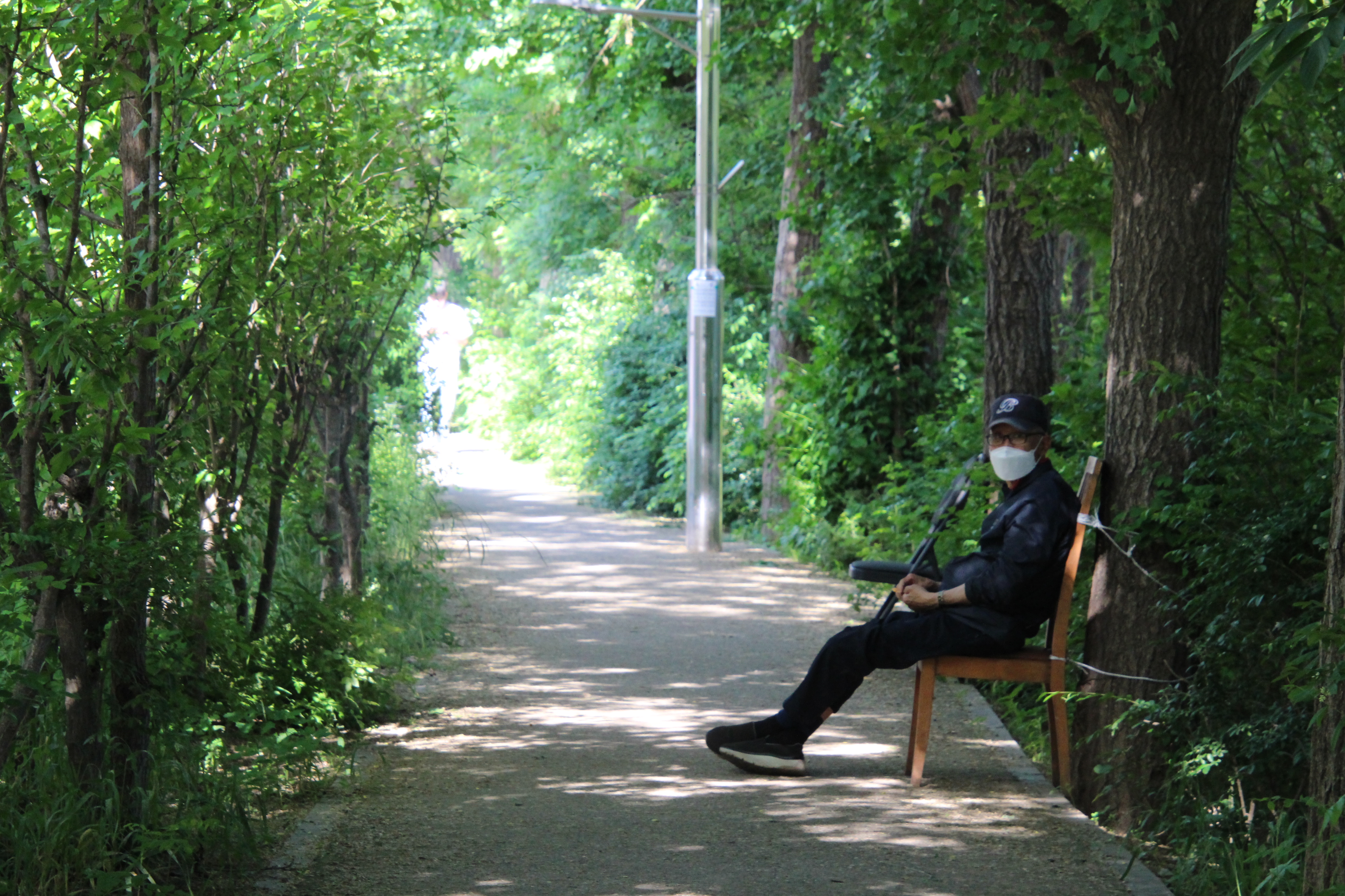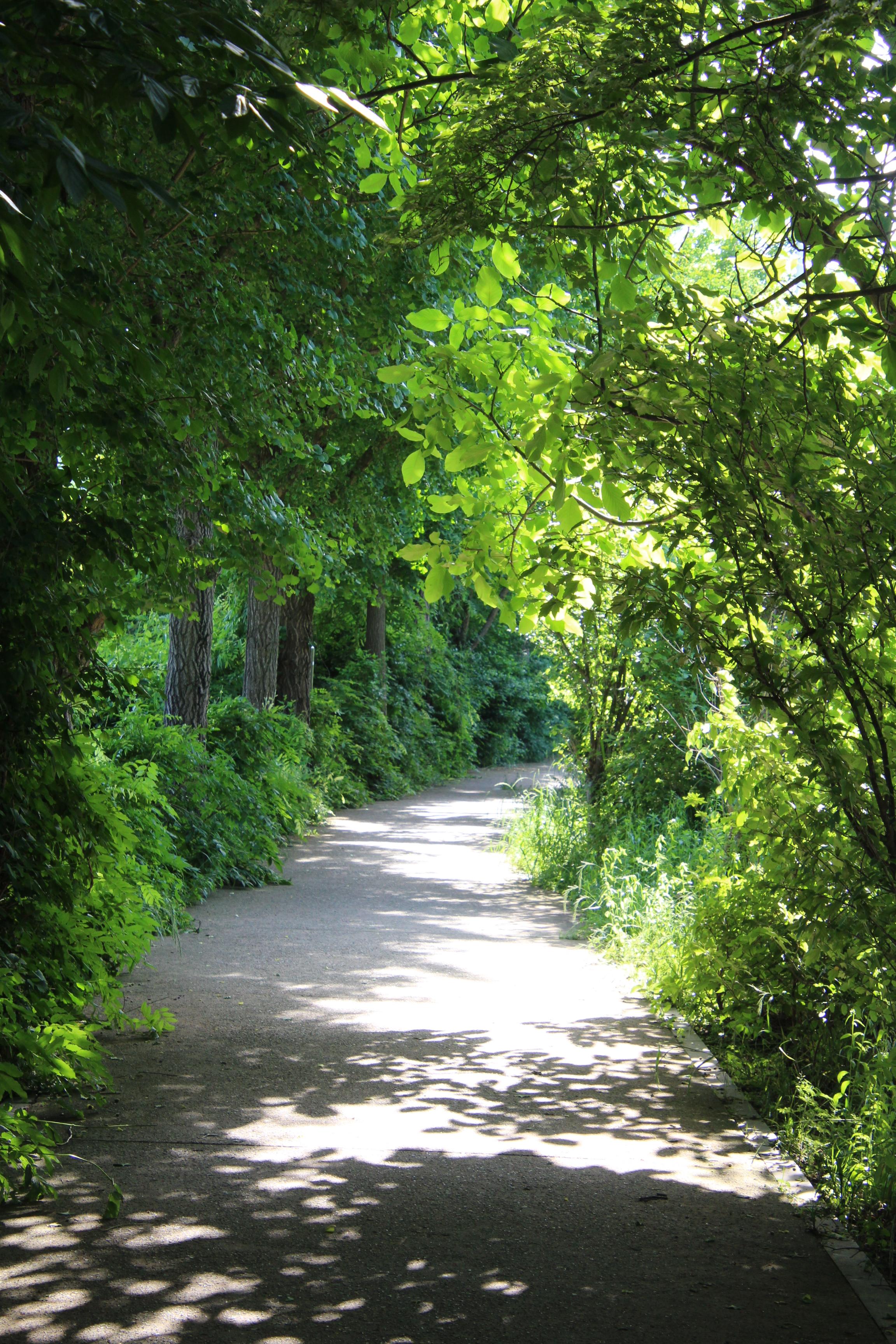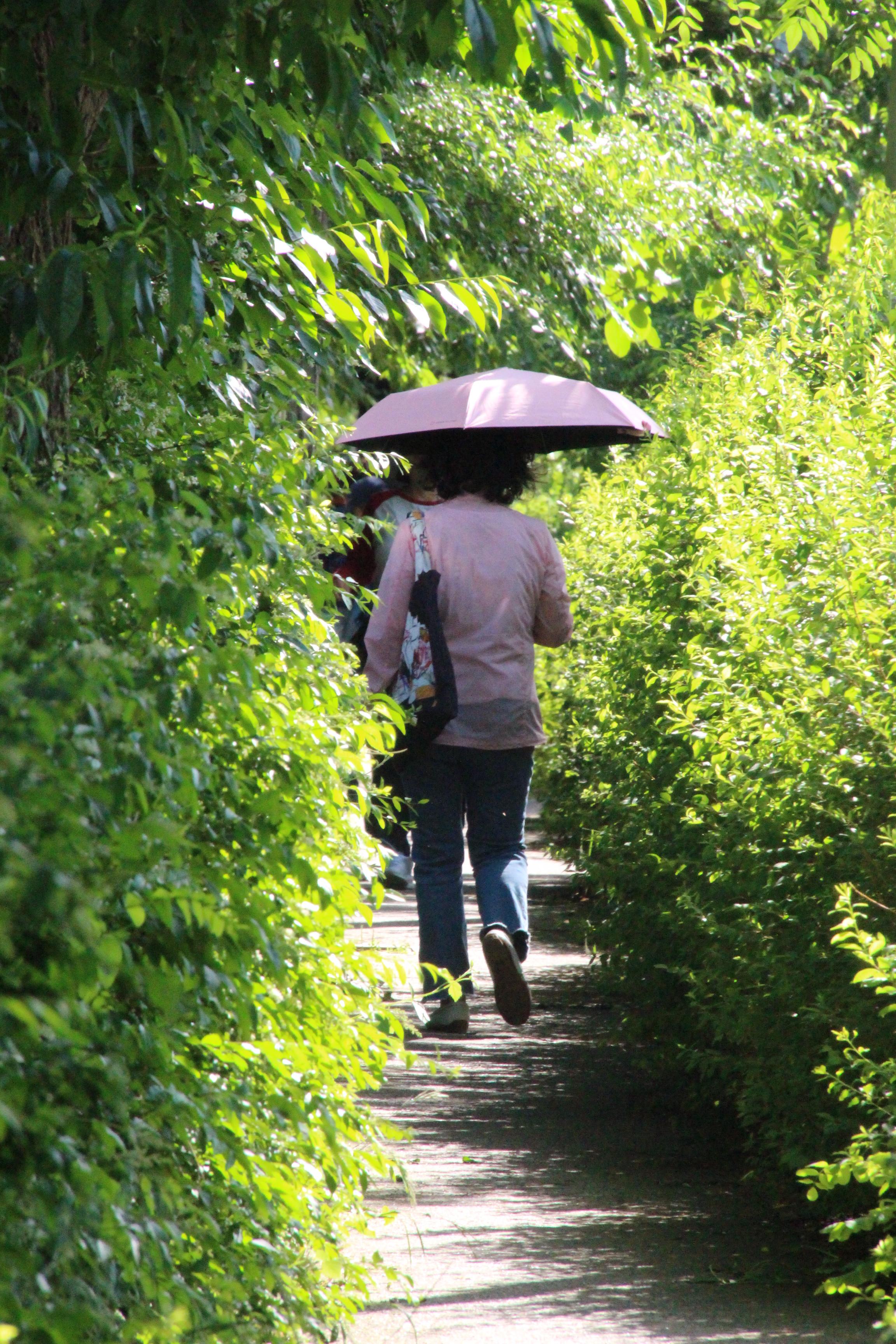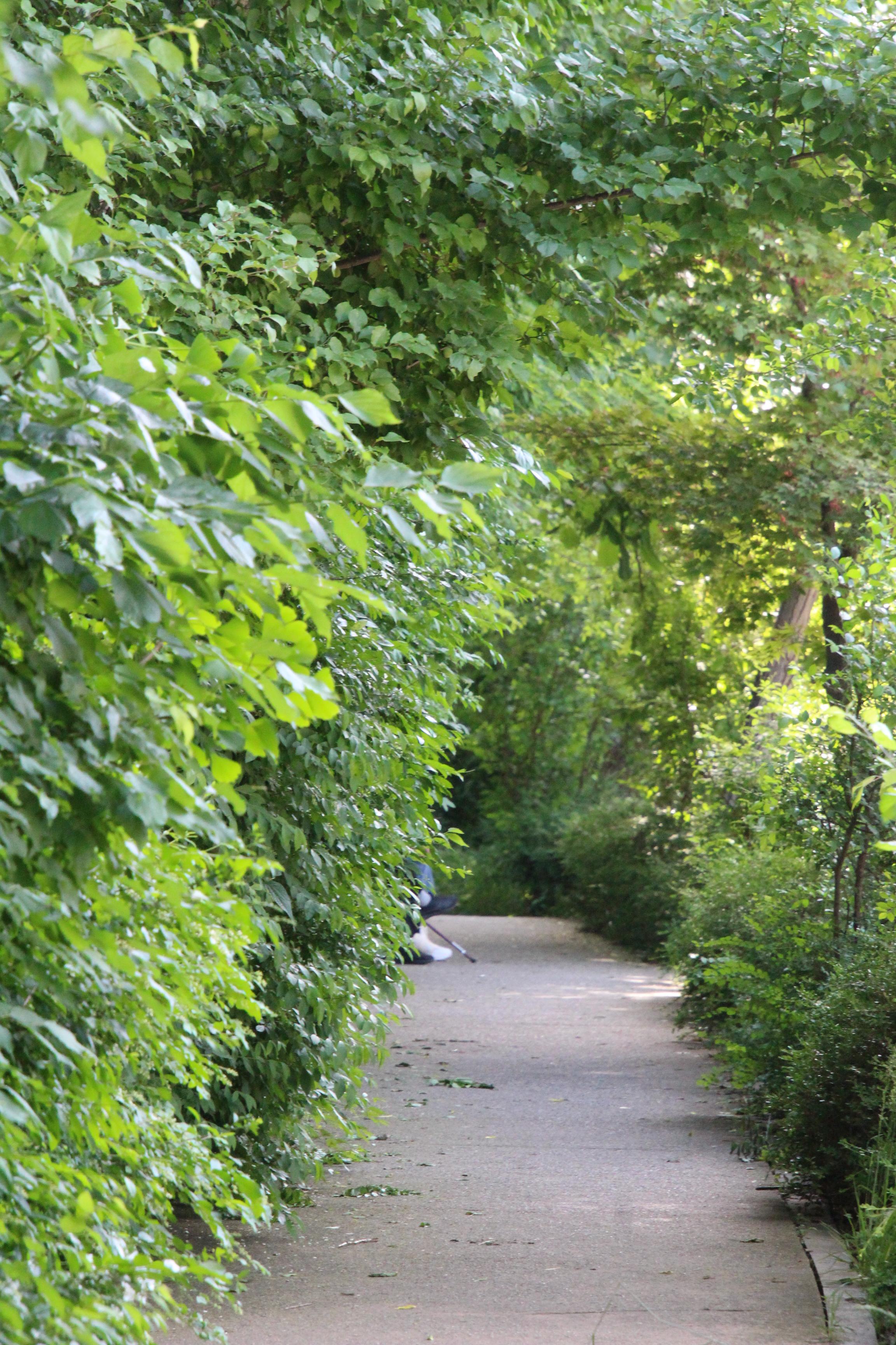 제방위 산책길 양옆로 짙푸른 나무숲이 우거져 둘이 걷기에 비좁은 길은 마치 짙푸른 숲터널을 연상케 할 정도이다.