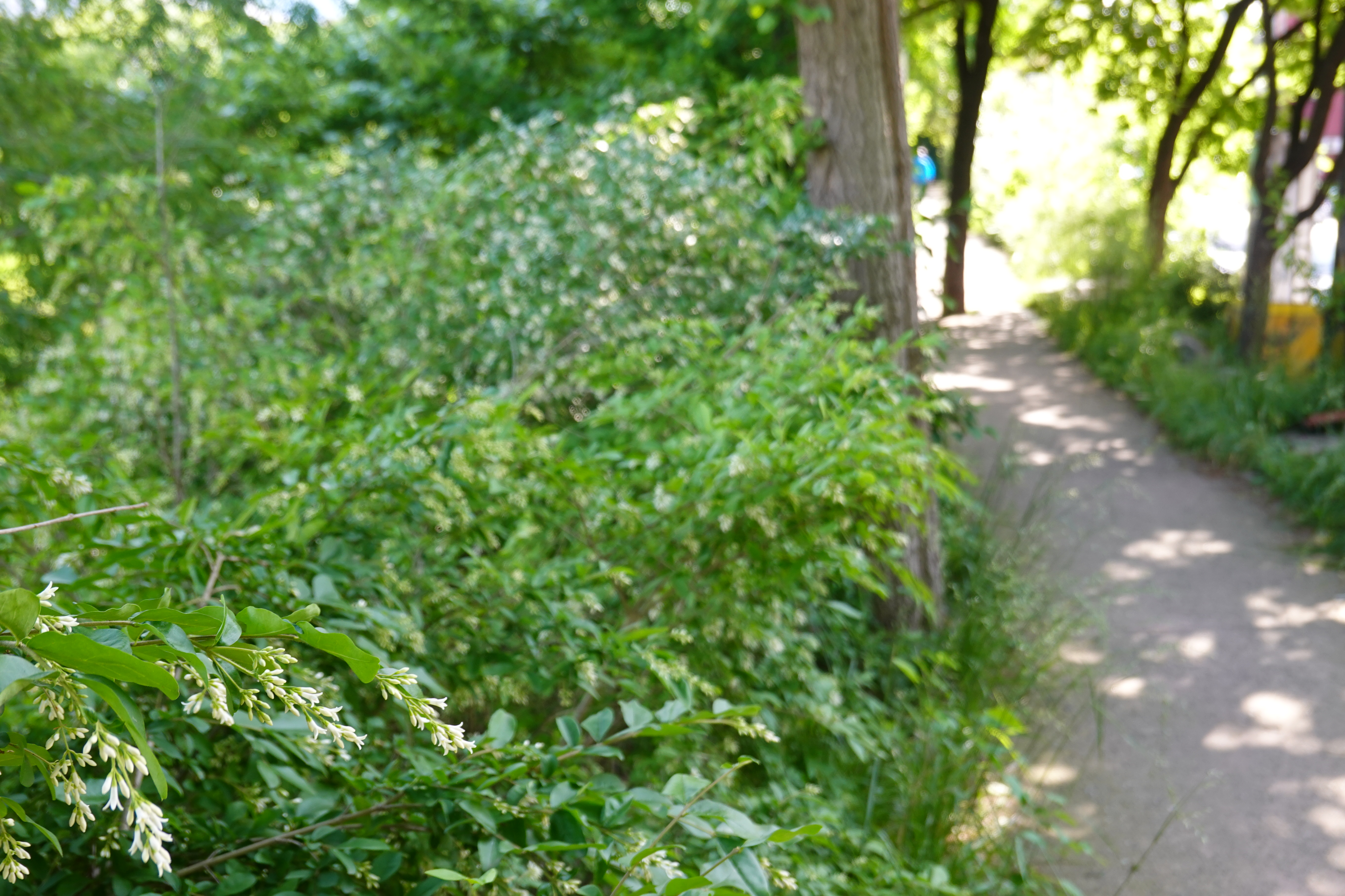 2024.05.19/ #도시기록 #꽃 #쥐똥나무 #그늘길 #숲터널/ 안양 학의천 북쪽 제방길(학운교-내비산교-수촌교-대한교 구간)에는 무더운날 뜨거운 햇살을 피해 걸을수 있는 그늘길이 있다.