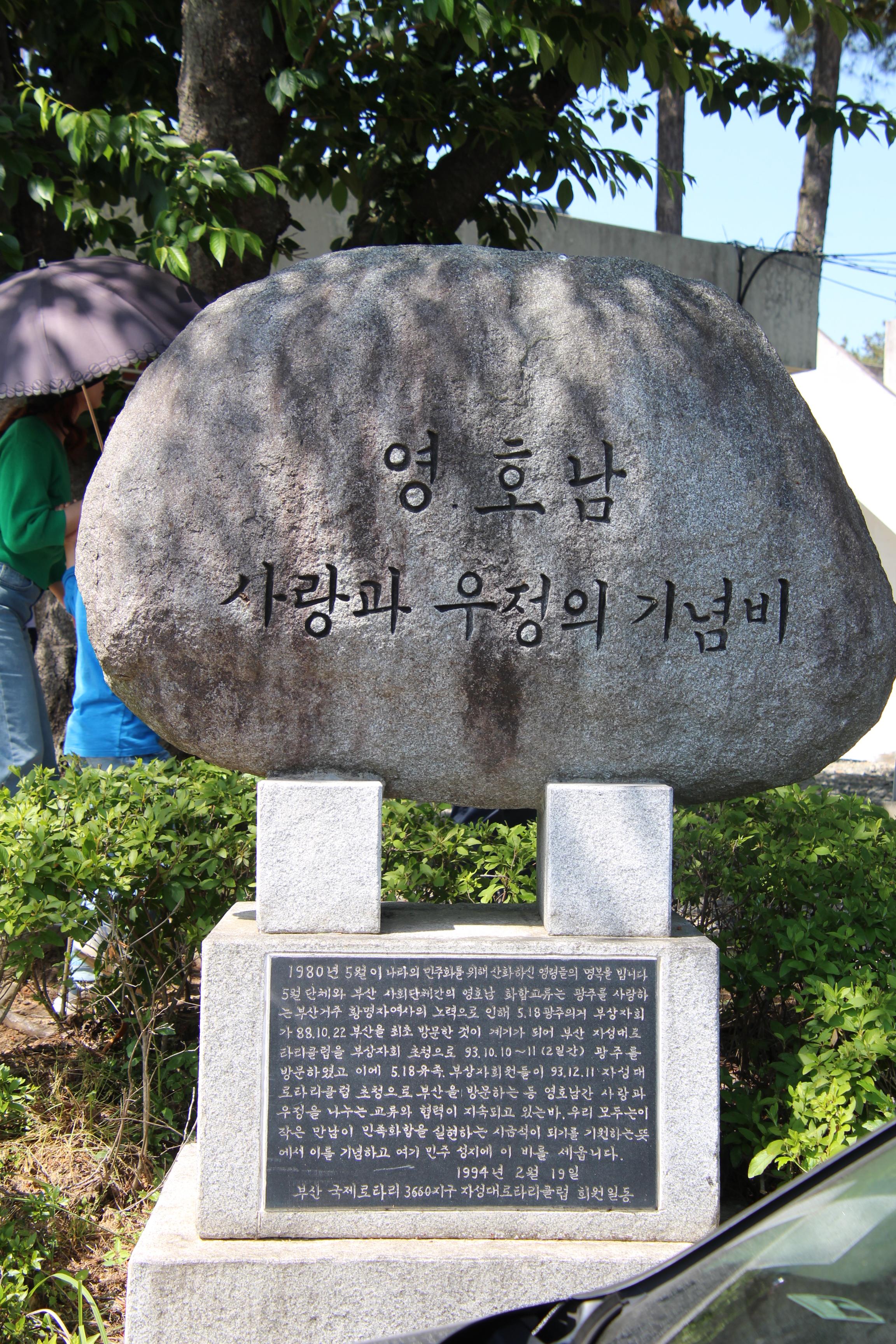이곳에는 망월묘역오월돌탑, 위르겐 힌츠페터 추모 기념비, 전두환밟기비석 등이 있다.