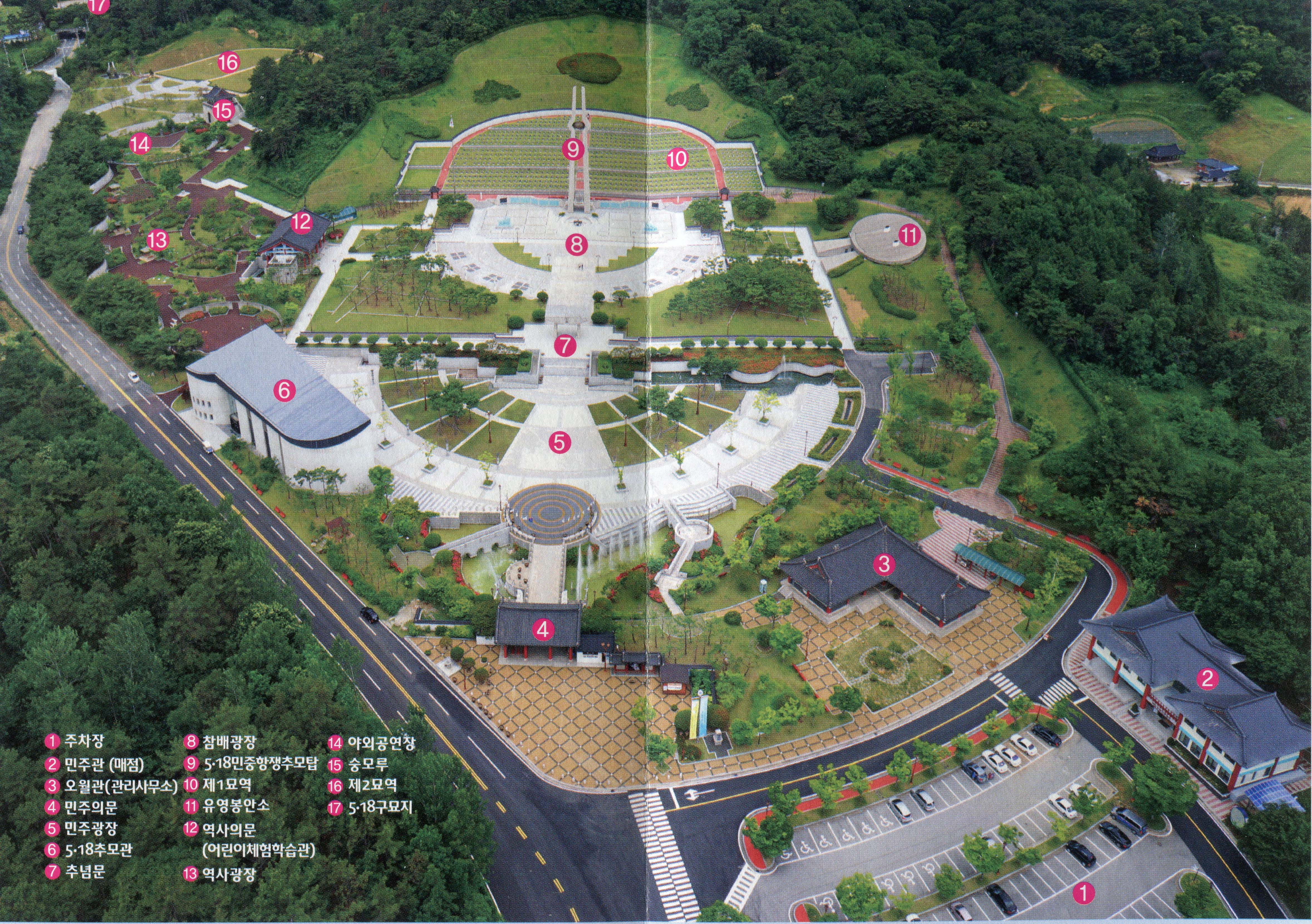 망월동 구묘역에서 언덕길을 내려오면 신묘역인 국립 5.18민주묘지로 연결된다. 광주광역시 북구 운정동 소재 국립민주묘지는 1994년 11월 1일 착공해 1997년 5월 13일 완공했다.