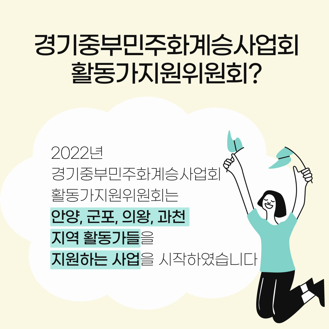 경기중부민주화운동계승사업회에서 진행하고 있는 활동가 지원사업을 안내 드립니다.