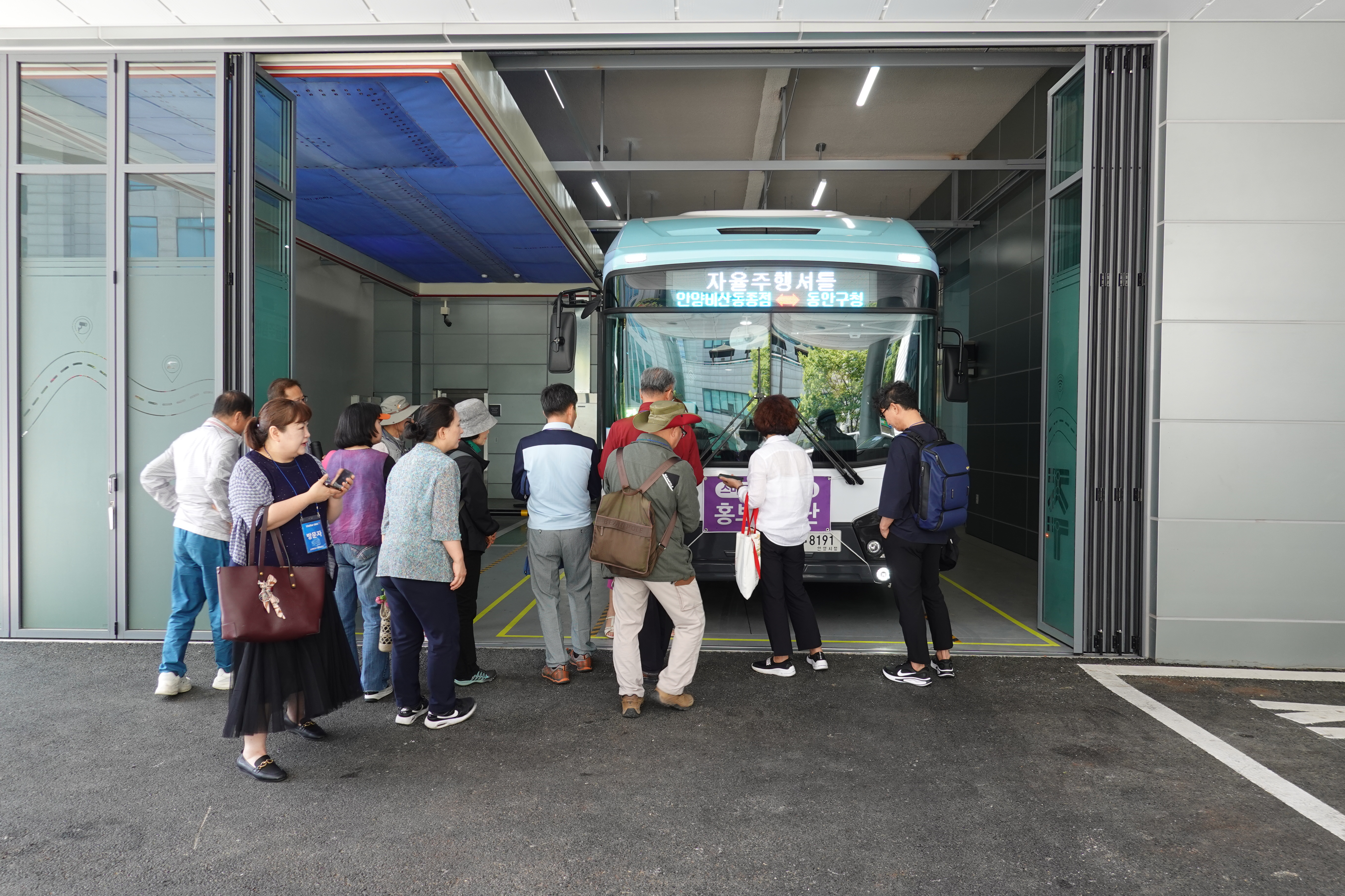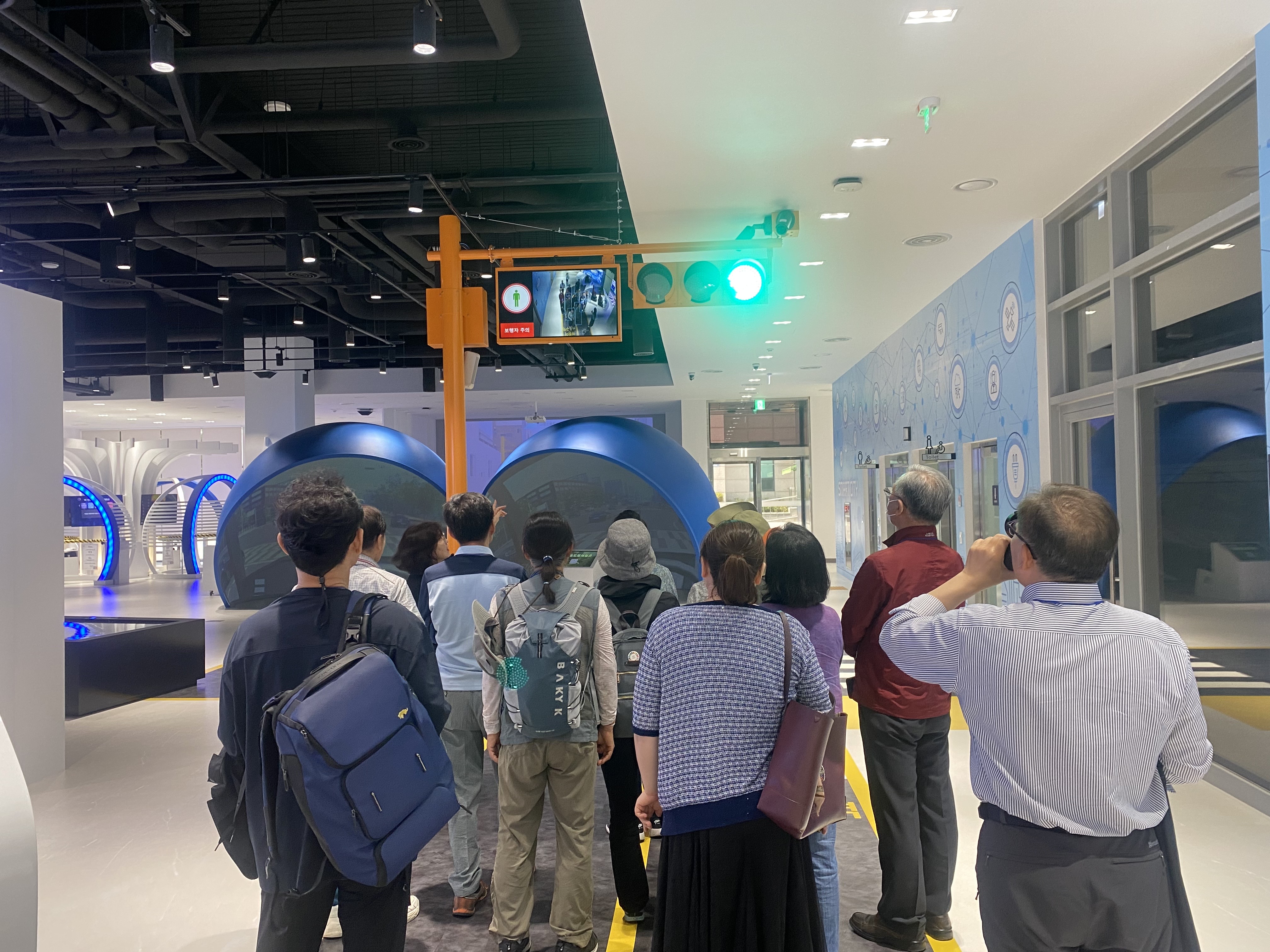 이어 견학팀은 2개조로 나뉘어 안양시 자율주행버스 주야로 시승을 통해 안양시 자율주행 미래교통·인공지능(AI) 스마트 안전도로 등을 체험하고, 1층 홍보체험관에서 디지털 가상현실(VR·XR)과 자율주행 시뮬레이터, 스마트도로 인프라, 스마트도시 디오라마 등의 미래첨단 기술을 직접 경험해 보았다.