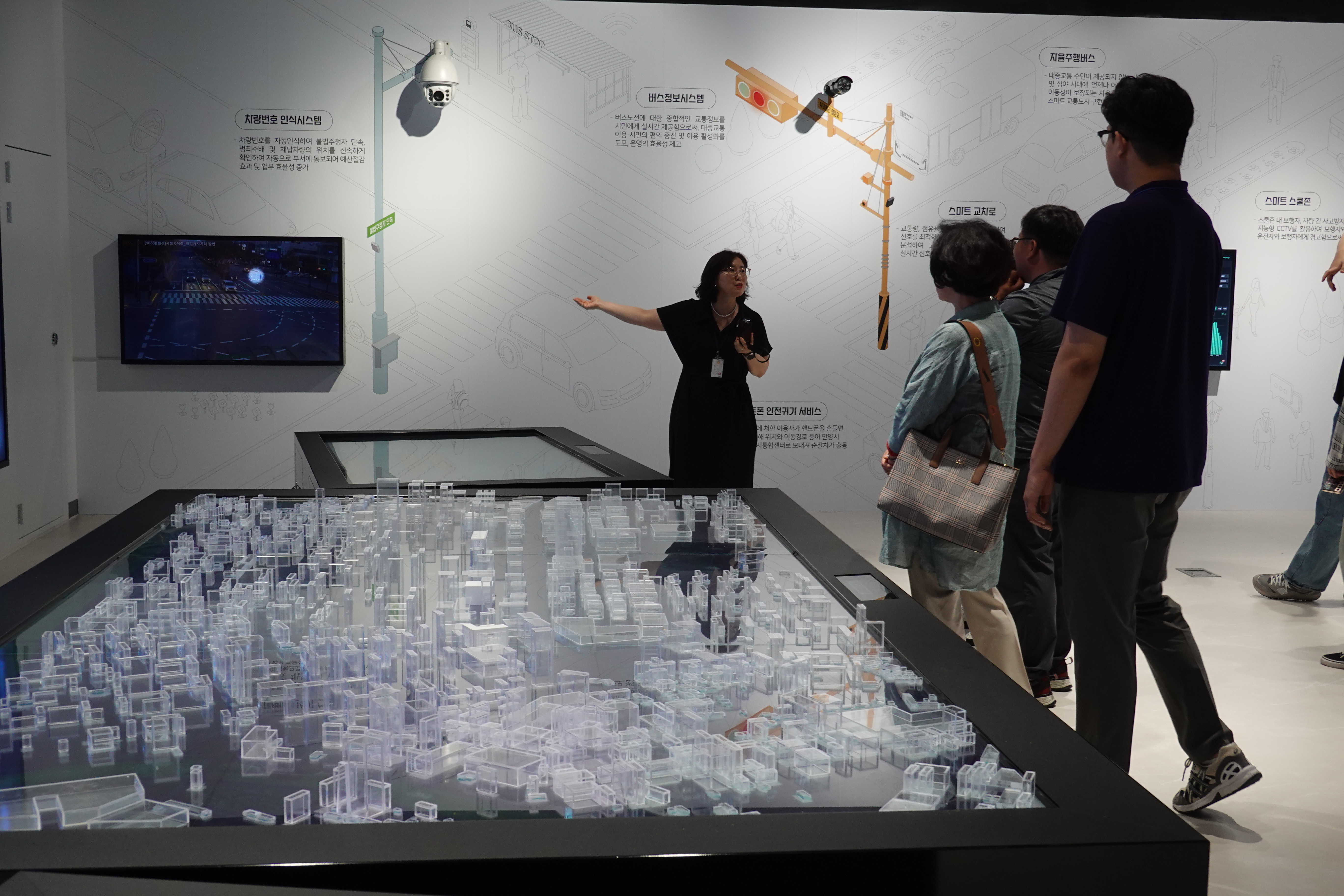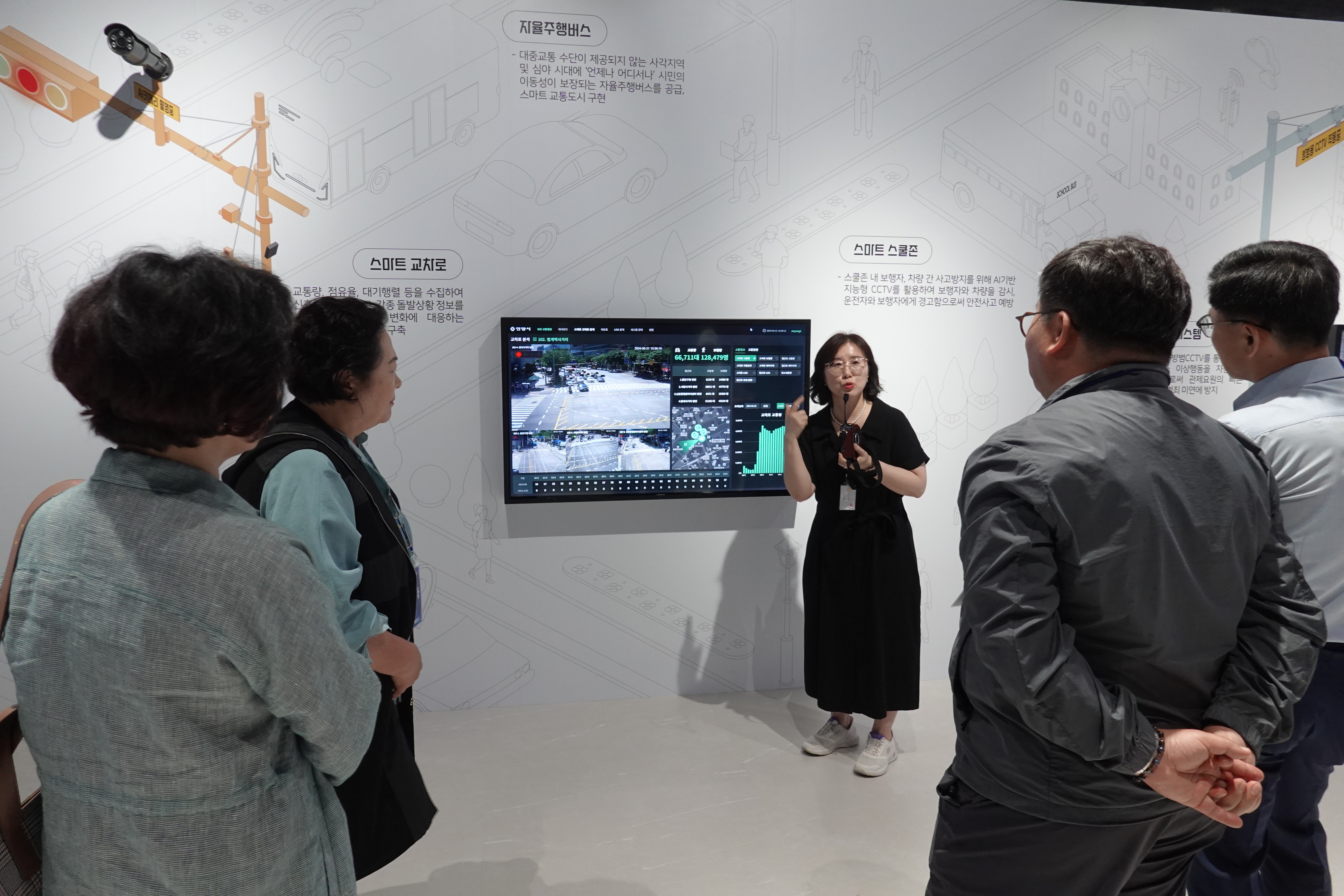 이어 견학팀은 2개조로 나뉘어 안양시 자율주행버스 주야로 시승을 통해 안양시 자율주행 미래교통·인공지능(AI) 스마트 안전도로 등을 체험하고, 1층 홍보체험관에서 디지털 가상현실(VR·XR)과 자율주행 시뮬레이터, 스마트도로 인프라, 스마트도시 디오라마 등의 미래첨단 기술을 직접 경험해 보았다.