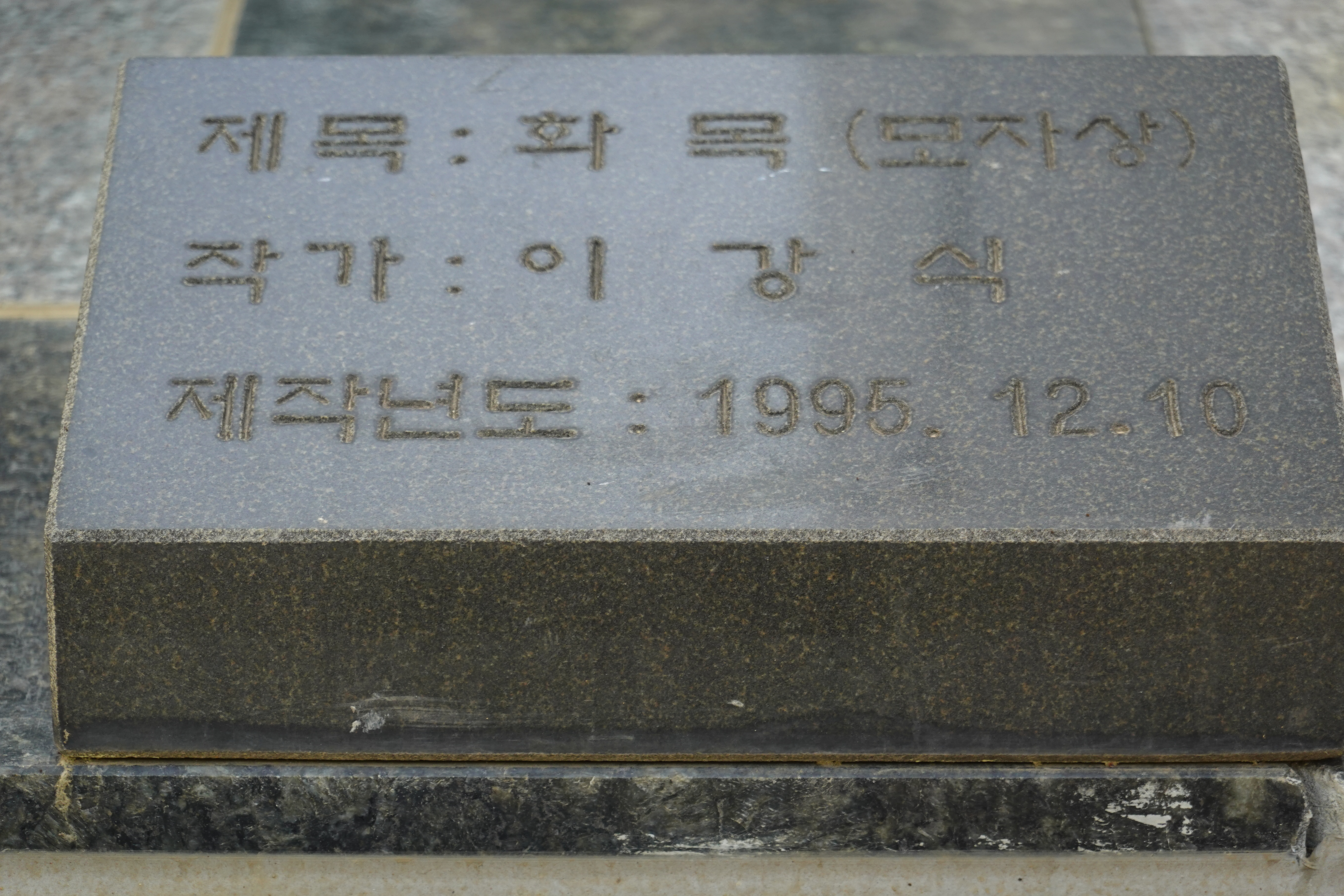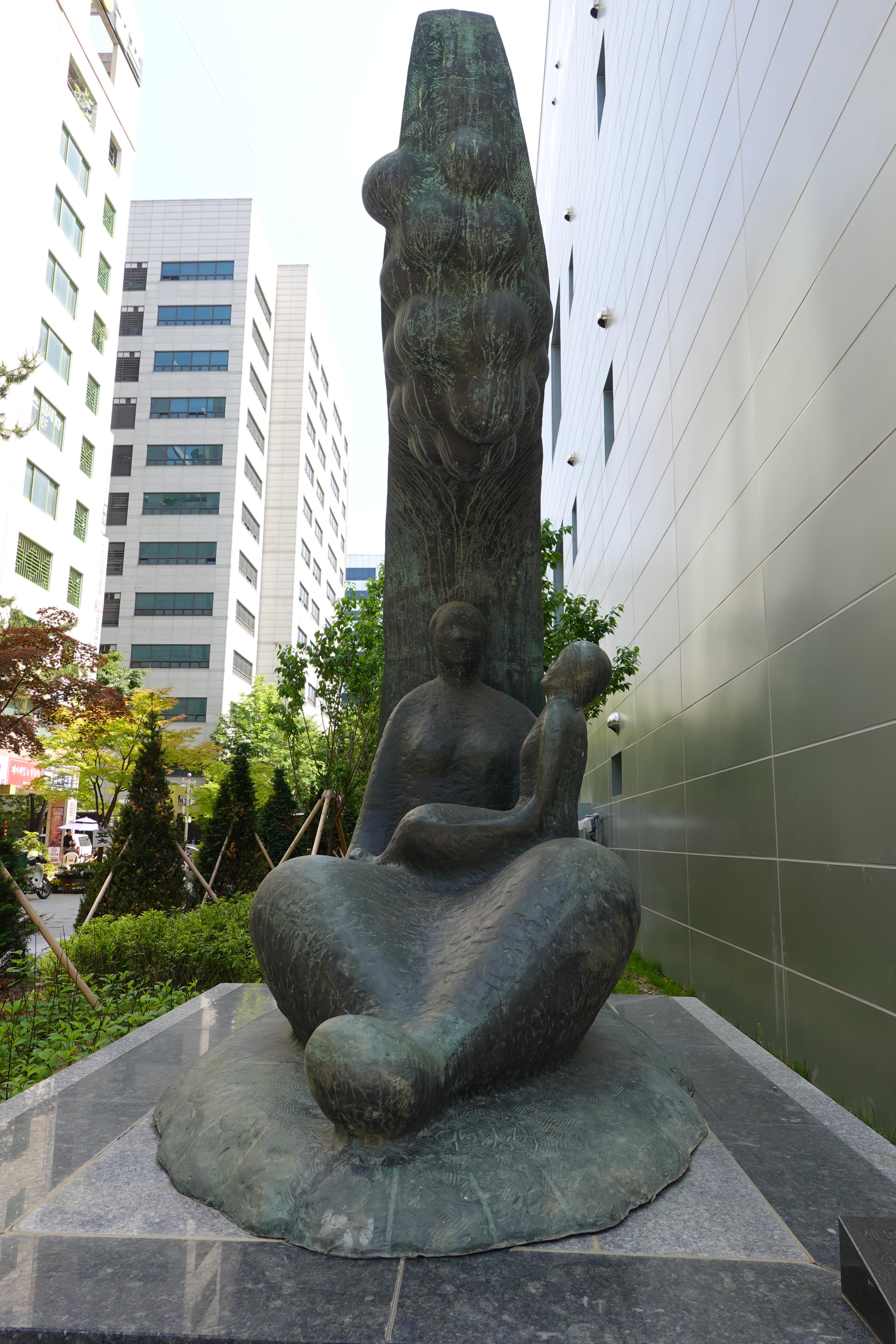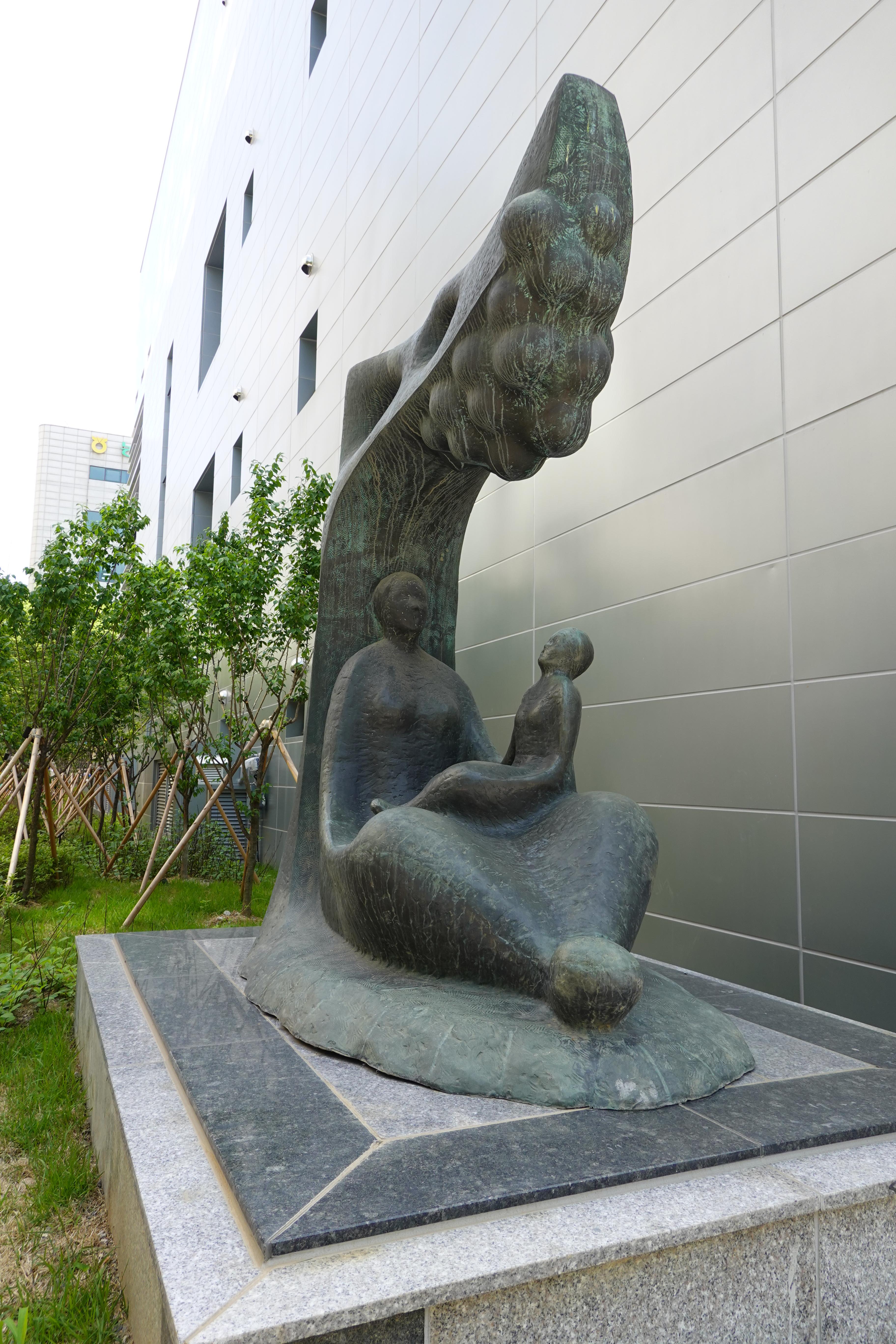 2024.05.21/ #도시기록 #미술품 #조각/ 지난4월 개관한 안양시스마트통합센터에 설치된 미술품 이강식 작가의 화목(모자상)으로 제작년도는 1995년 12월 10일이다.