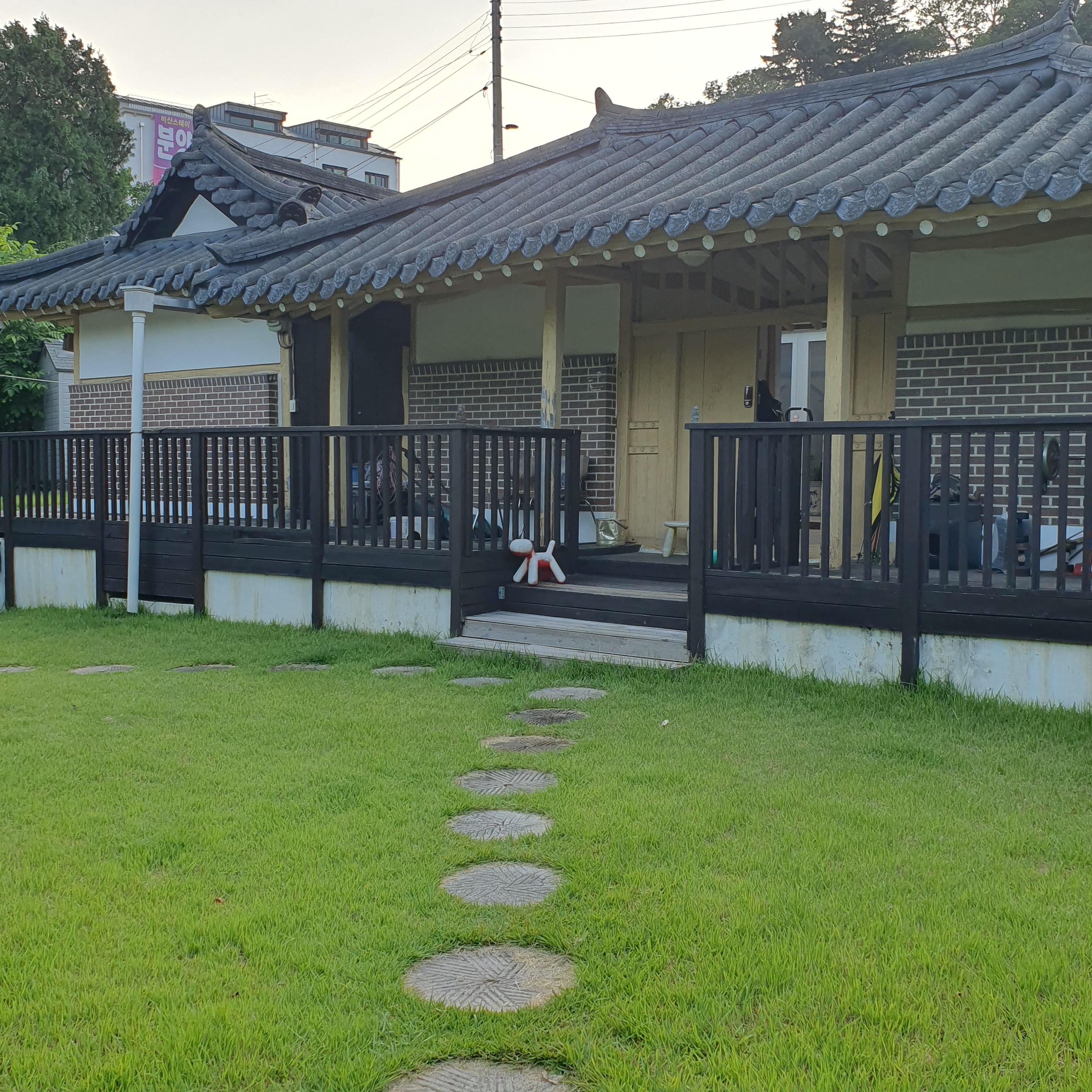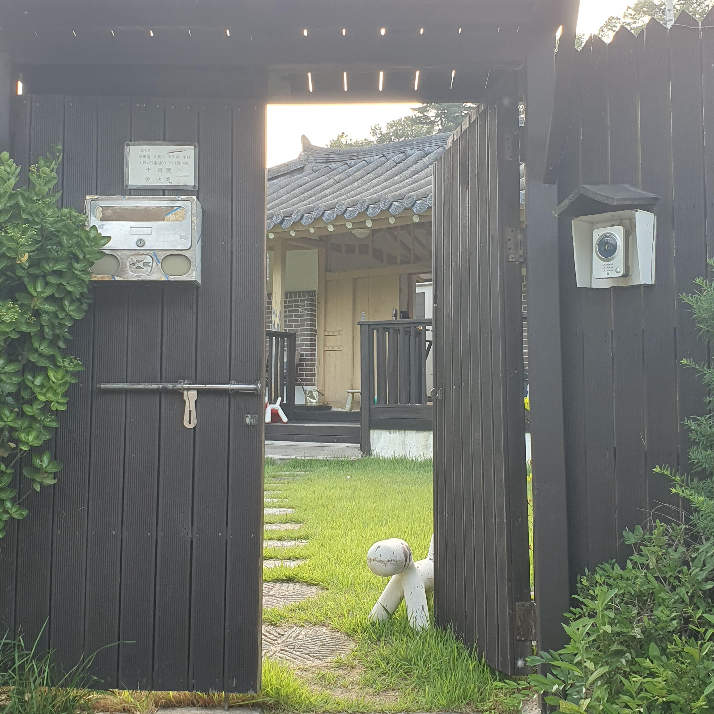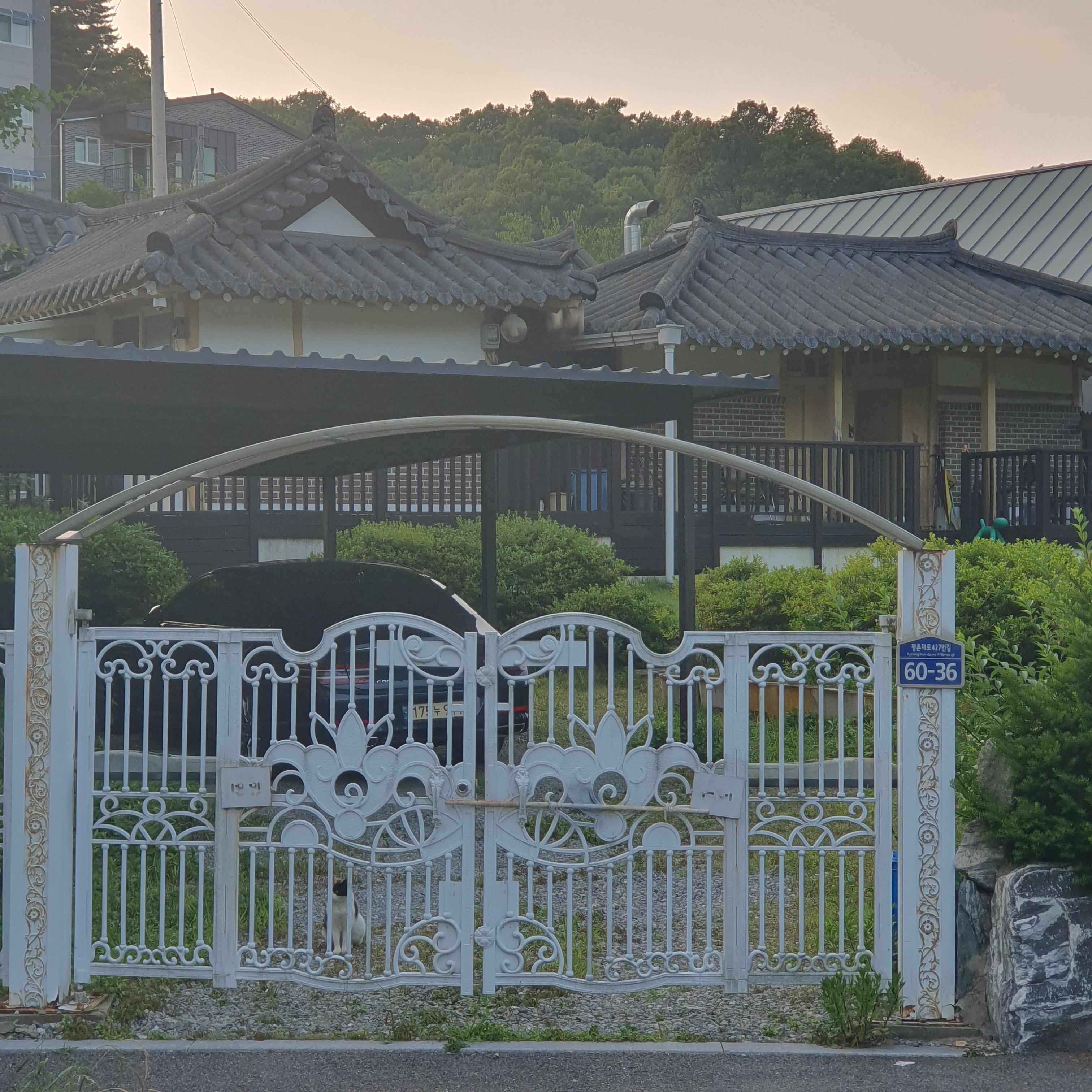 2024.06.09/ #도시기록 #안양 #비산동/ 안양 비산동 인라인롤러경기장뒤 서쪽 전원 지역에 텃밭과 동산과 마당이 있던 예쁜 단독주택들이 개발붐으로 인해 대부분 없어진 가운데 유일하게 옛모습을 그대로 간직하고 있는 잔디마당이 있는 아담한 한옥기와집. "지켜주셔서 감사합니다"