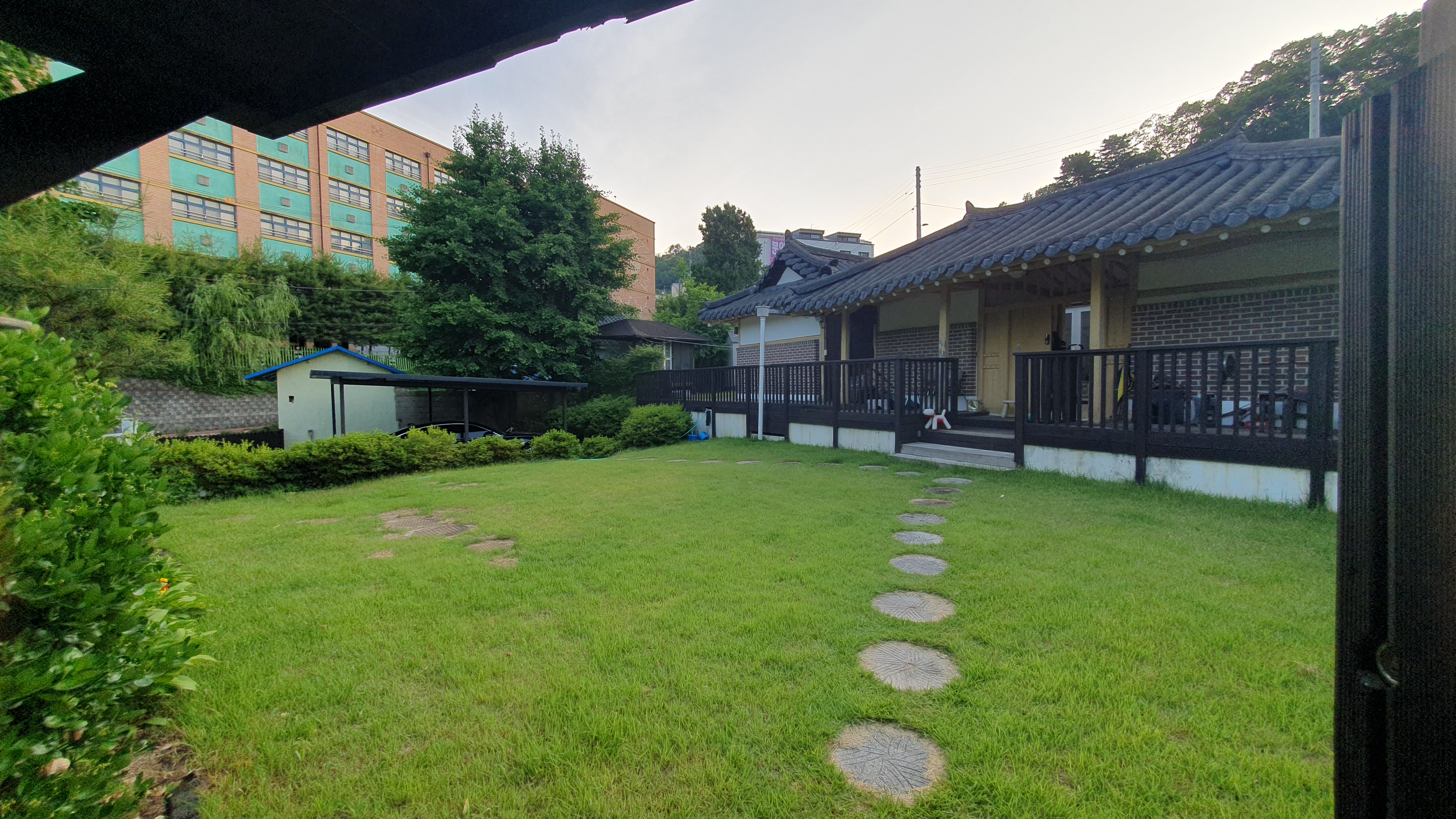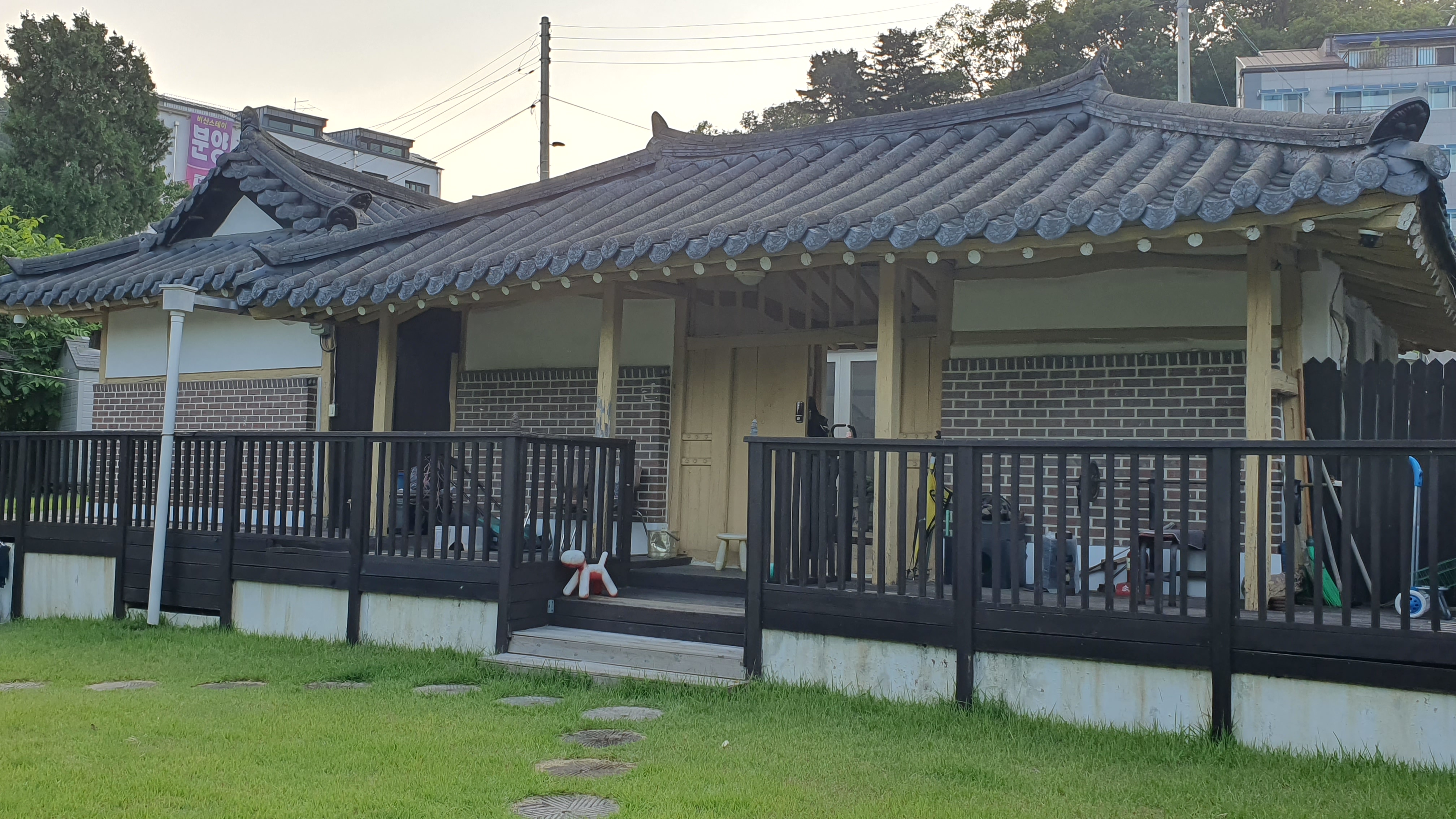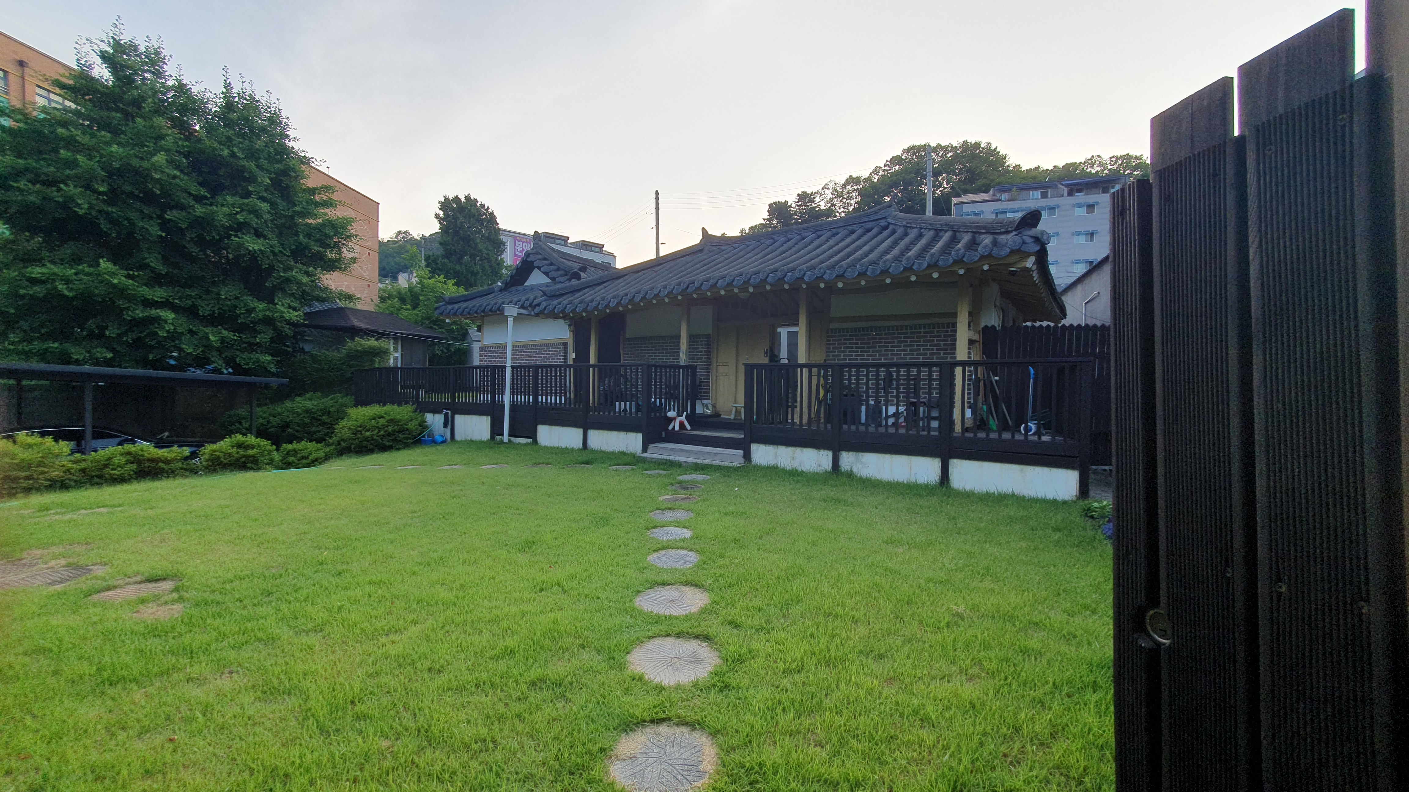 2024.06.09/ #도시기록 #안양 #비산동/ 안양 비산동 인라인롤러경기장뒤 서쪽 전원 지역에 텃밭과 동산과 마당이 있던 예쁜 단독주택들이 개발붐으로 인해 대부분 없어진 가운데 유일하게 옛모습을 그대로 간직하고 있는 잔디마당이 있는 아담한 한옥기와집. "지켜주셔서 감사합니다"