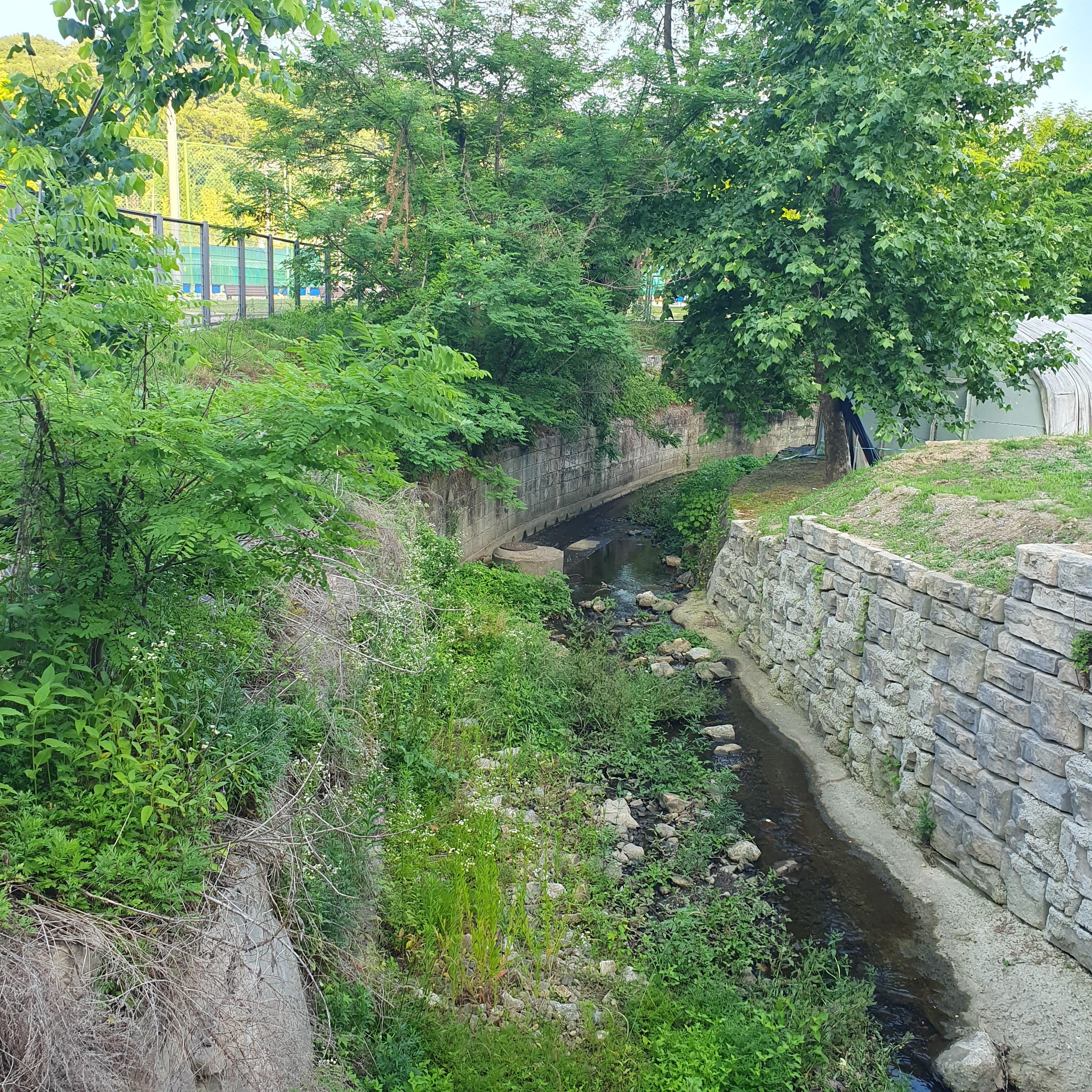 2024.06.09/ #도시기록 #안양 #내비산천 #소하천 #실개천 #복개하천/ 관악산삼림욕장 비산동쪽 초입의 습지와 수도군단사령부뒤 계곡에서 내려오는 물길의 지상부분을보다. 물길은 비산체육공원과 롤러경기장 서쪽 도로옆과 비산중학교 앞을 지난후 평촌대로 427번길에서 복개구간인 땅밑으로 들어가 안양운동장과 운곡공원, 운동장사거리를 지나 내비산교옆에서 학의천으로 연결된다.