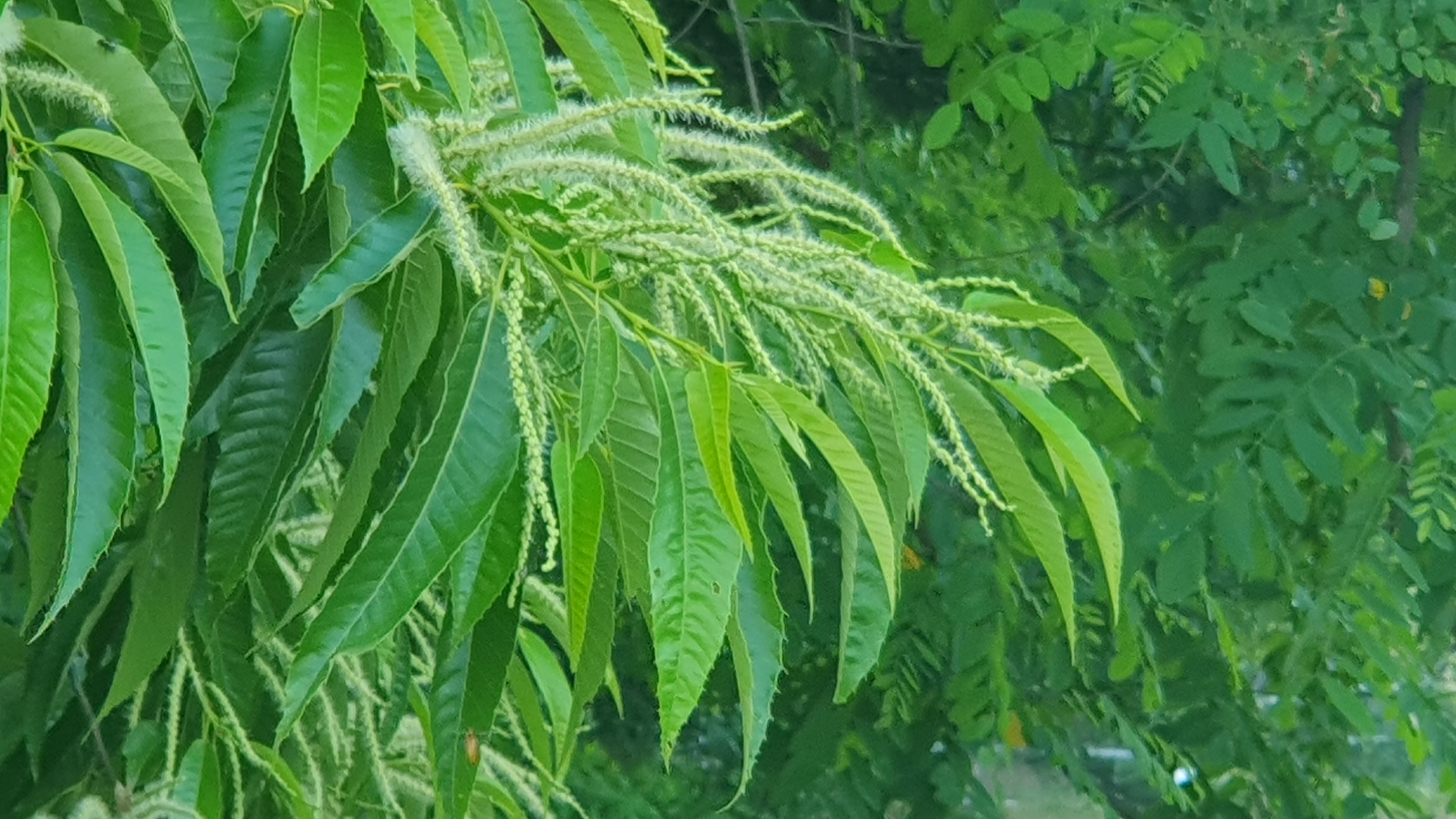 2024.06.09/ #도시기록 #안양 #밤꽃/ 안양 비산동에서 본 밤꽃. 안양.군포.의왕시 주변을 지나다 보면 나즈막한 동네 산자락 나무들이 희긋희긋한 것을 볼수 있다. 톡특한 향기를 내뿜는 밤나무꽃이 핀것이다. 안양의 특산물 하면 1960년대 교과서에도 실렸던 포도를 떠울리지만 그 이전에는 밤이 주 특산물이었다.