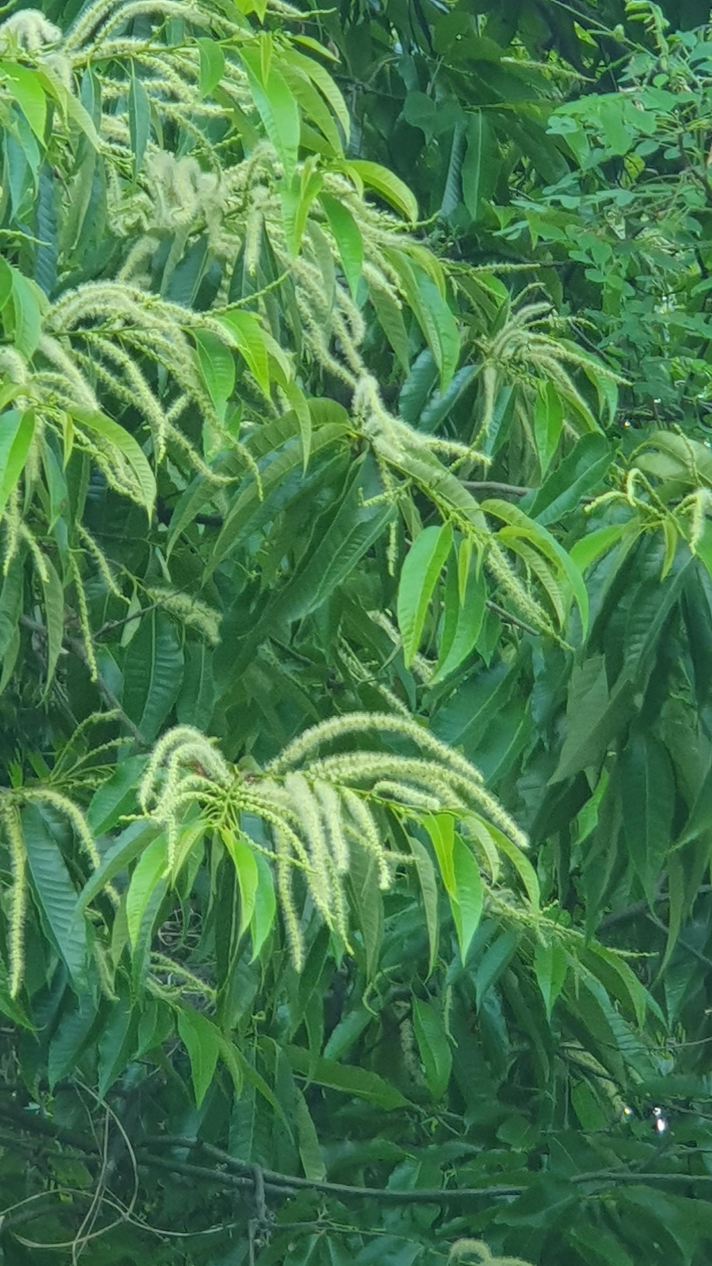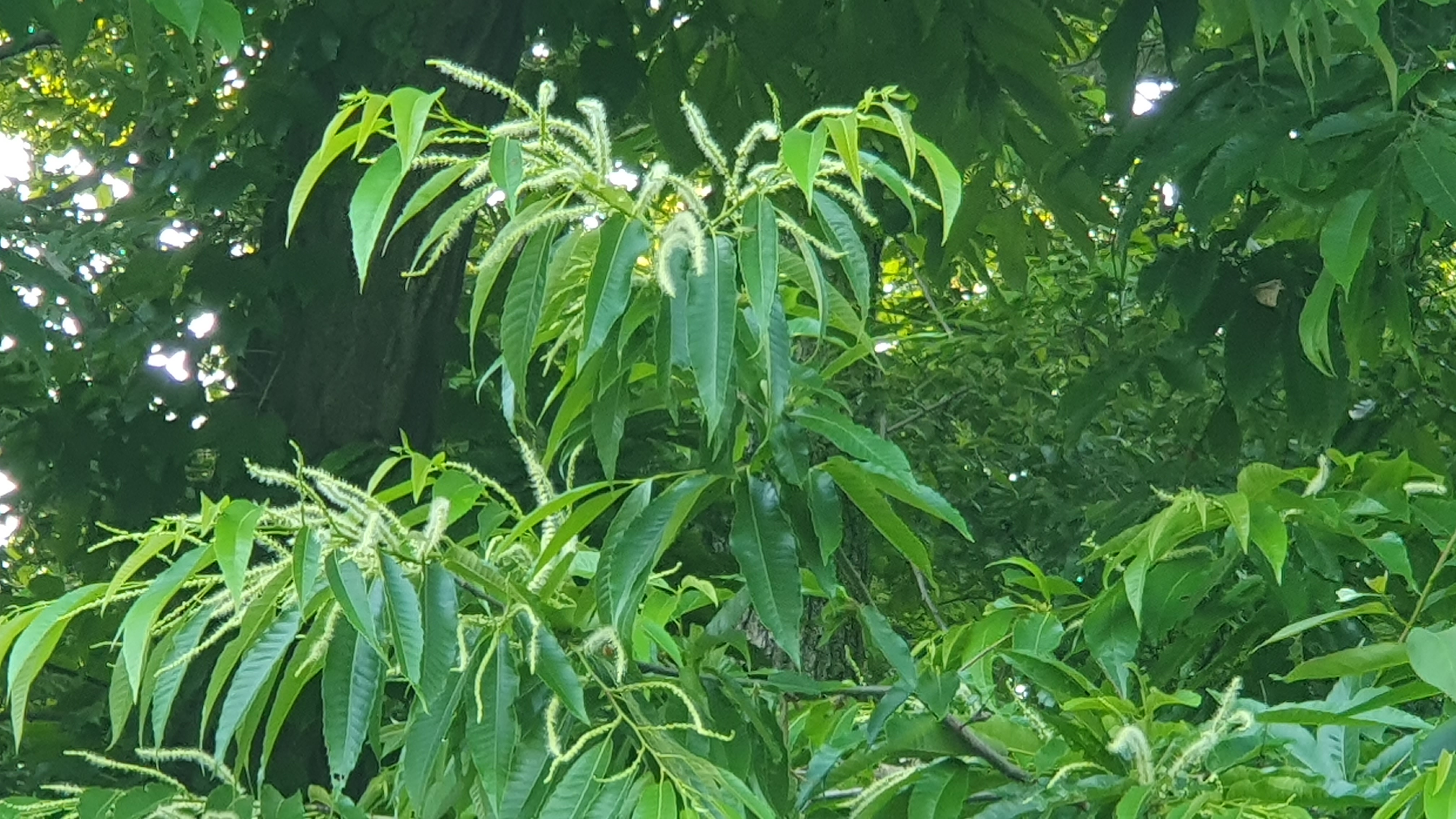 2024.06.09/ #도시기록 #안양 #밤꽃/ 안양 비산동에서 본 밤꽃. 안양.군포.의왕시 주변을 지나다 보면 나즈막한 동네 산자락 나무들이 희긋희긋한 것을 볼수 있다. 톡특한 향기를 내뿜는 밤나무꽃이 핀것이다. 안양의 특산물 하면 1960년대 교과서에도 실렸던 포도를 떠울리지만 그 이전에는 밤이 주 특산물이었다.
