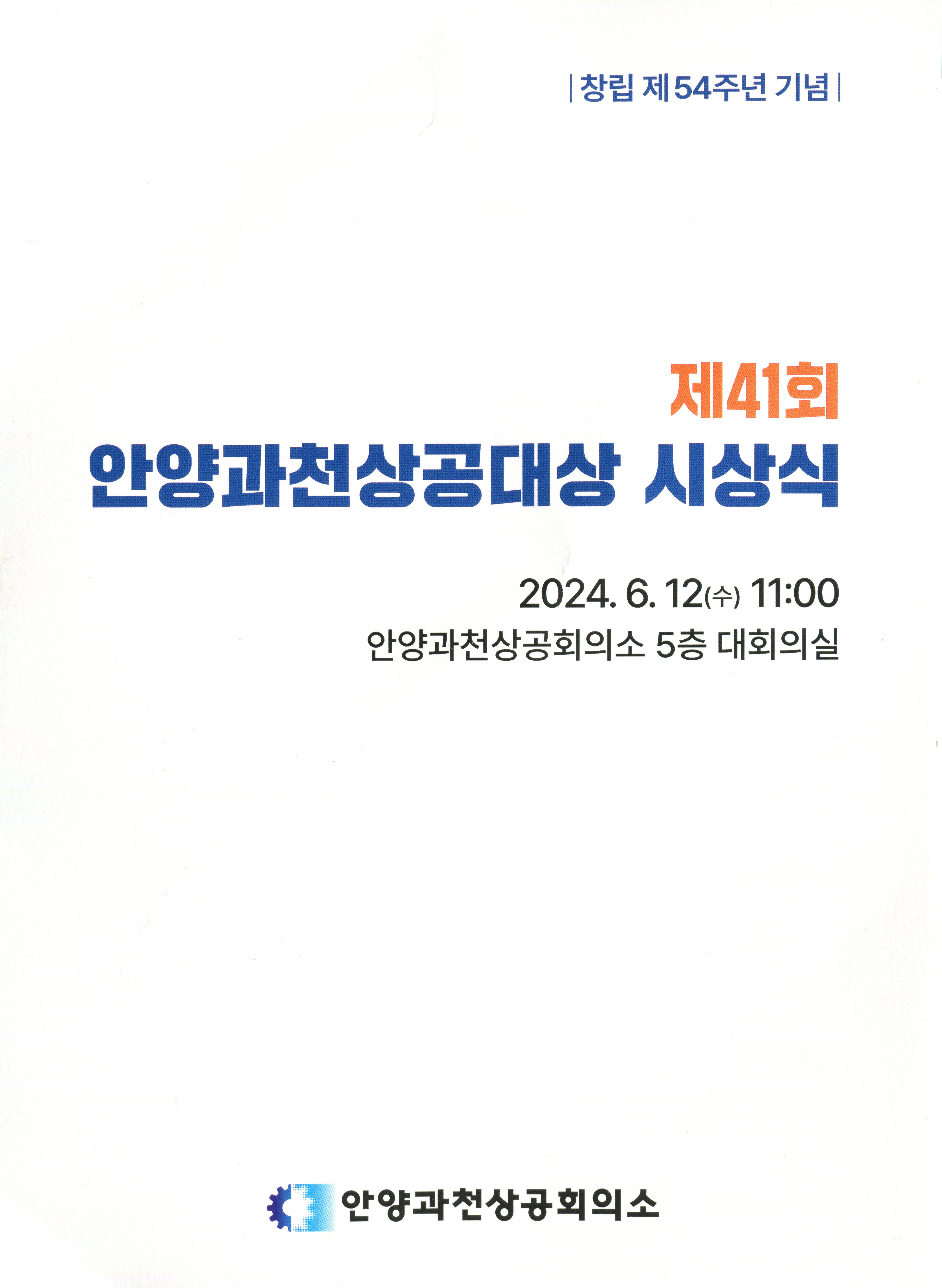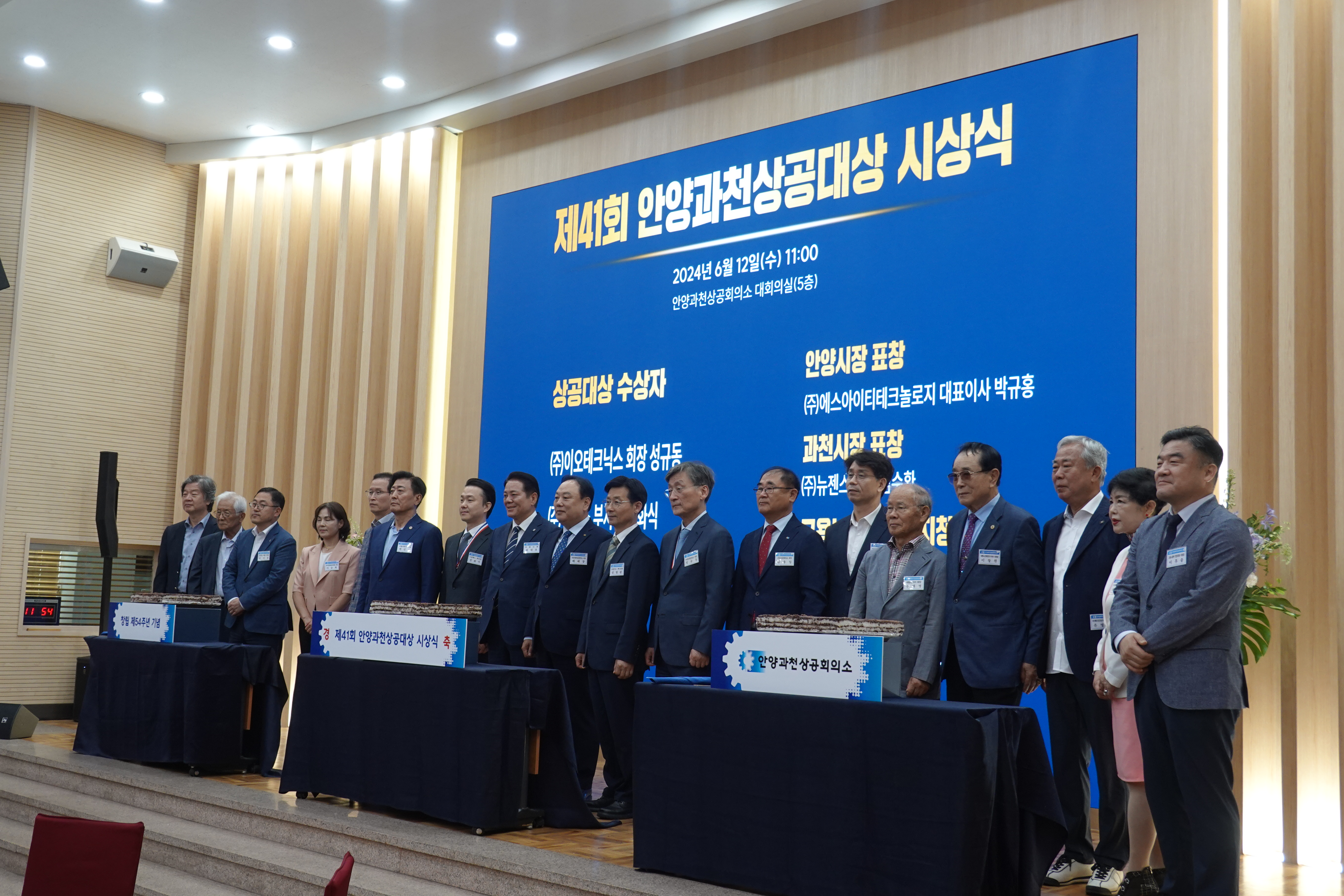 안양과천상공회의소가 창립 제54주년을 기념하며 지난 12일 오전 11시 상공회의소 5층 대화의실에서 '제41회 안양과천 상공대상'을 시상식을 개최했다.
