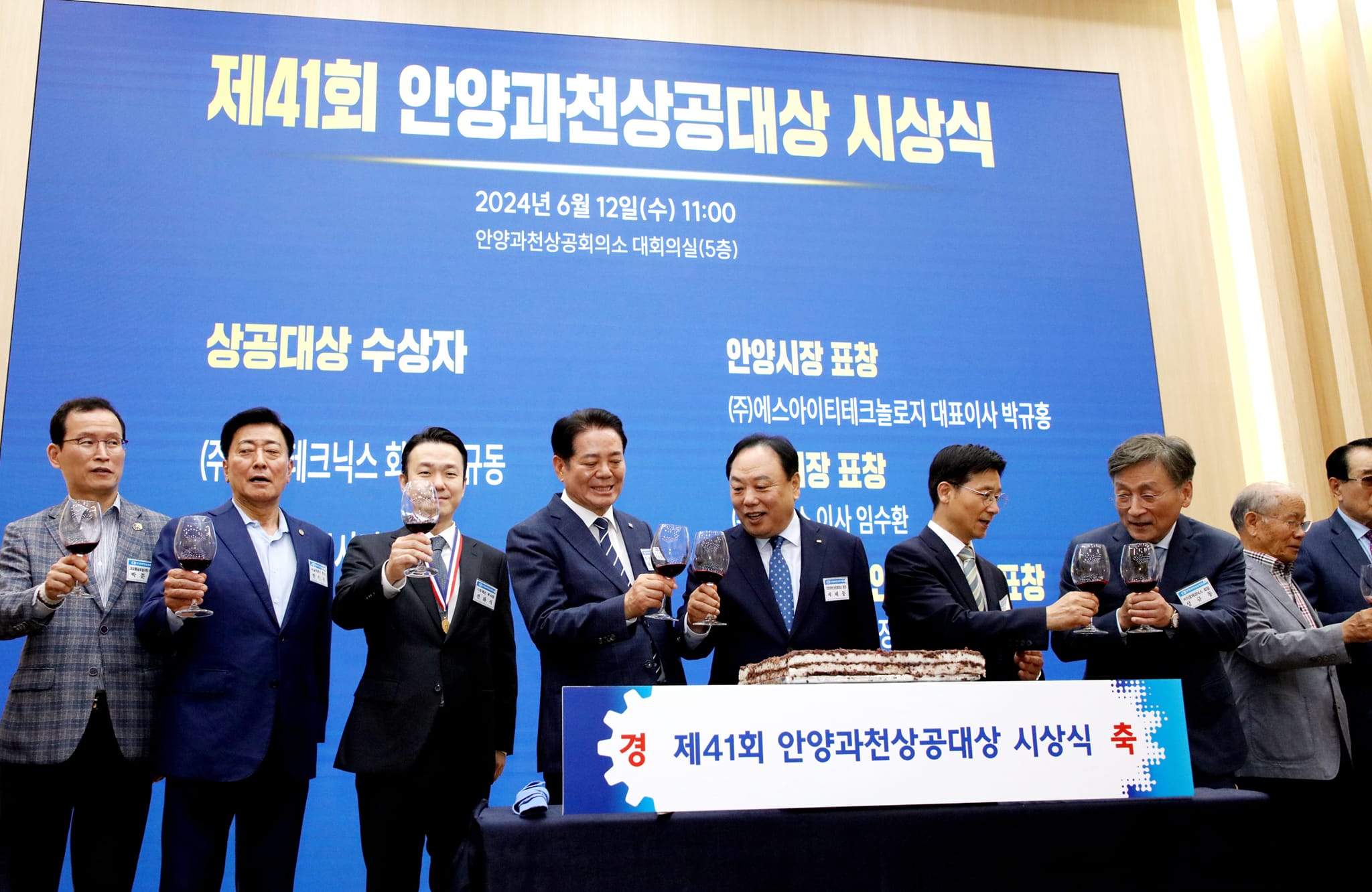 축사에 나선 최대호 안양시장은 “제41회 안양과천상공대상 수상을 축하합니다. 안양상공대상은 1984년부터 40년 동안 지역상공인의 긍지를 높이고 사기 진작을 위해 수여해 온 역사와 전통을 가진 안양 최고의 기업인 포상입니다. 그동안 안양경제의 성장과 발전에 기여해 주신 수상 기업체와 수상자분들께 감사와 축하를 드립니다"고 말했다.