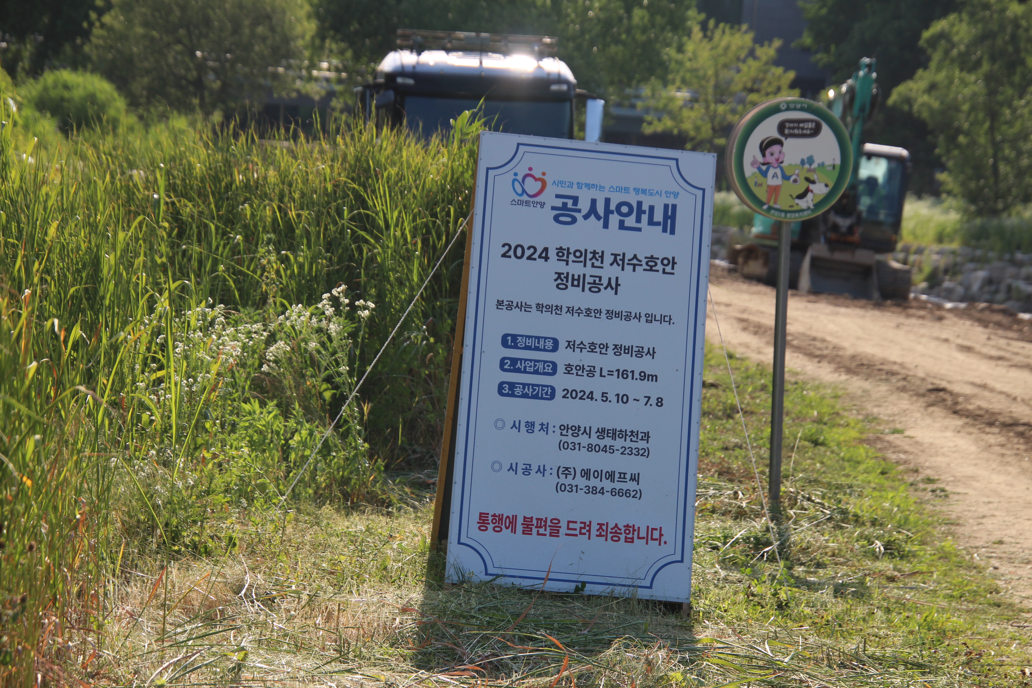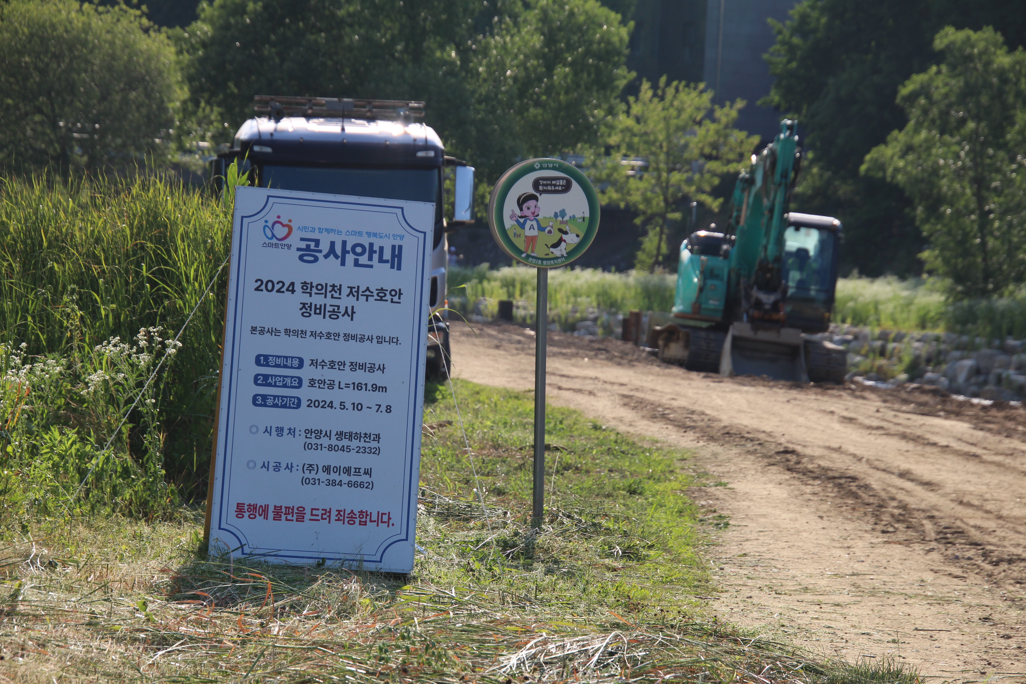 2024.06.13/ #도시기록 #안양 #학의천/ 학의천은 곳곳에서 공사중. 관양교 인근에서는 학의천 저수호안 정비공사 진행중. 인근 제방사변(관양교-인덕원인도교)에 꼬리명주나비 애벌레 먹이인 쥐방울덩굴이 자생하는 군락지가 있는데 안양시 생태하천과 공무원들의 관심 덕분에 올해부터는 일체 건드리지 않고 온전히 보전되고 있음을 확인할수 있어서 다행스럽고 감사하다.