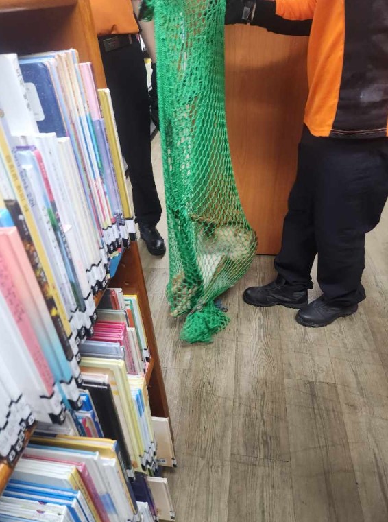 안양 수리산에서 내려왔을것으로 추정되는 고라니 한마리가 안양 만안시립도서관에서 포획됐다.
