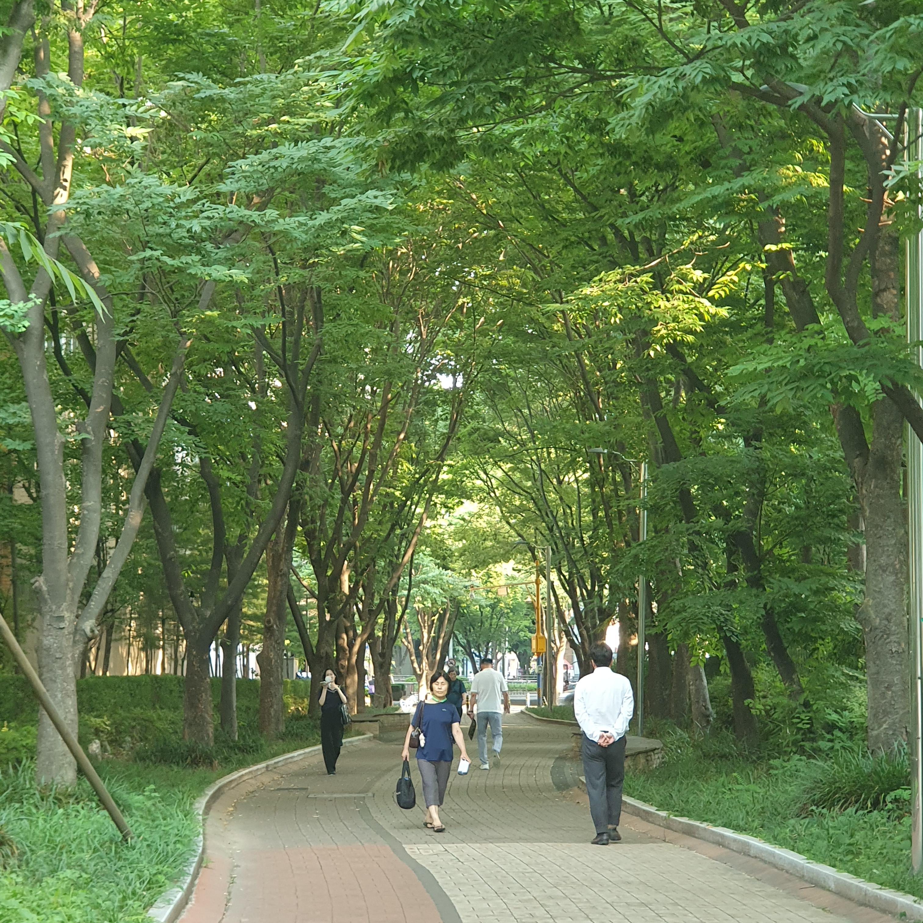 세월이 지나면서 니무들도 자라 무더운 여름에는 뜨거운 햇빛을 모두 가려주는 그늘이 있는 도시숲을 만들어 걷기 좋은길, 걷고싶은 길이 됐다.