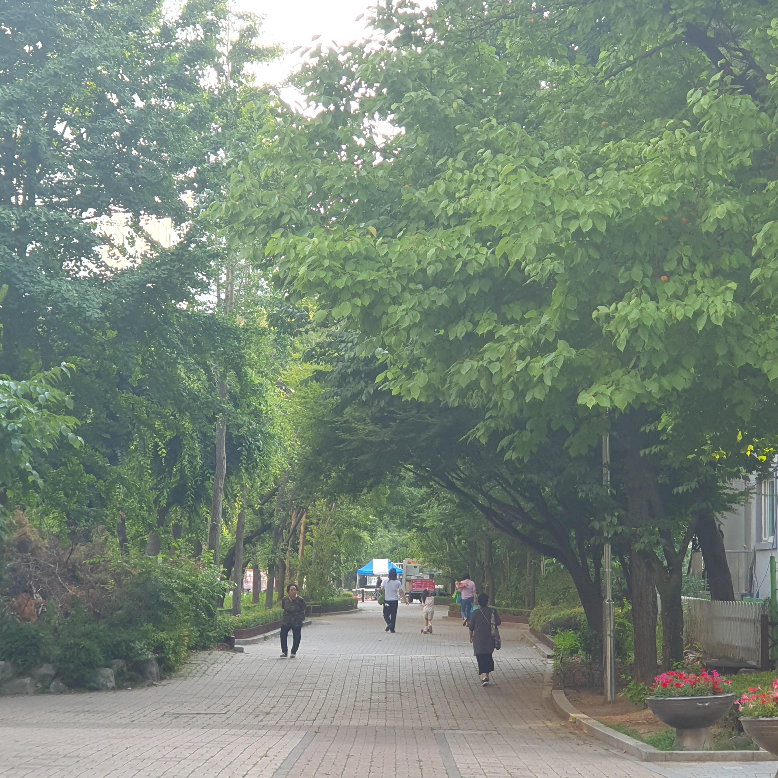 2024.06.19/ #도시기록 #사잇길 #안양 #평촌/ 무더위속에 햇살이 뜨거워지면서 평촌 도심 아파트단지 사이를 지나는 사잇길이 인기다. 평촌신도시를 설계하면서 잘한것중 하나가 아파트단지와 소공원들을 연결하는 사잇길이 아닐까 싶다.