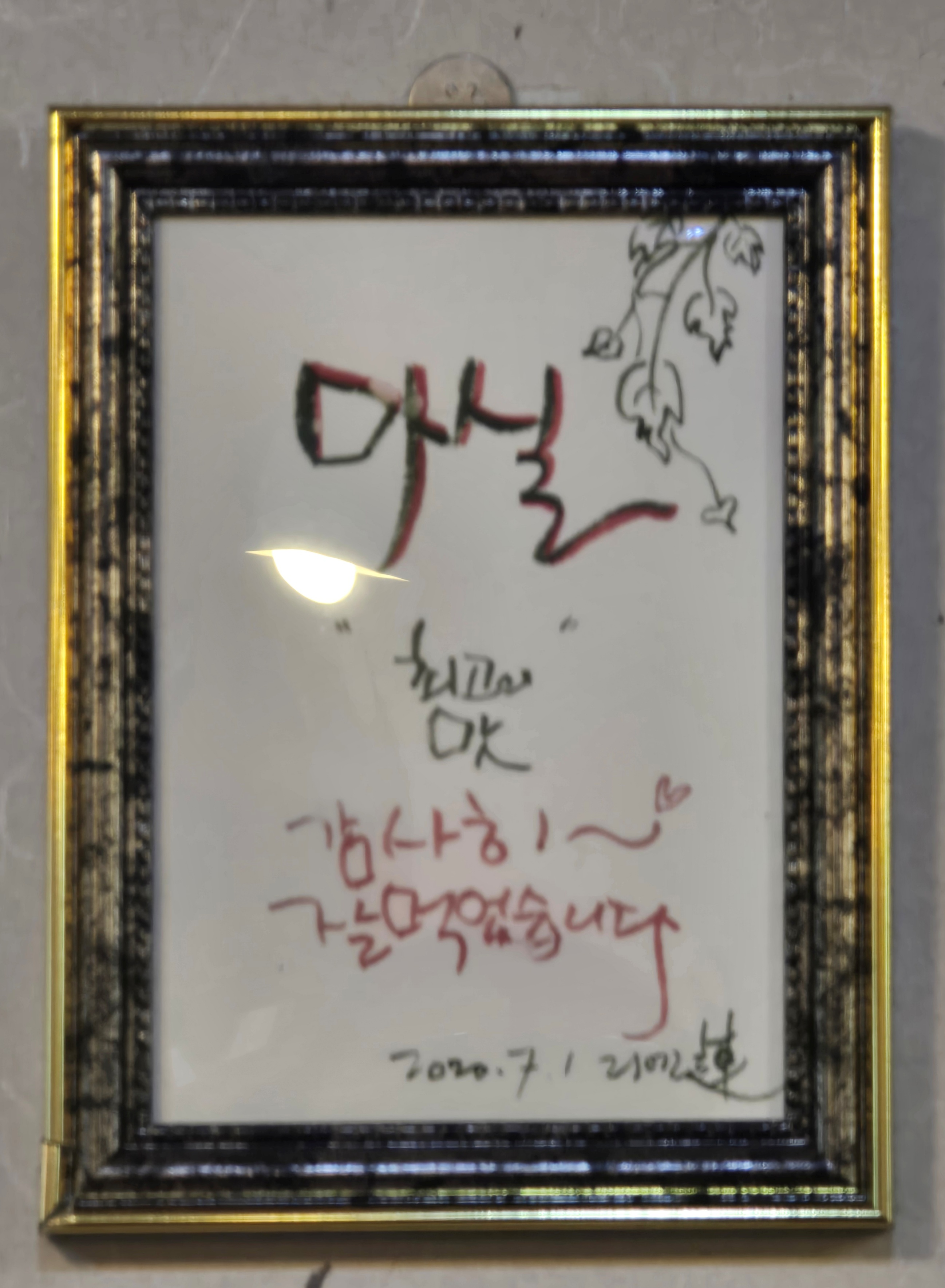 식당 벽면에 쓰여진 싸인을 보니 지상파 방송에도 출연하고 홈쇼핑에서 갈비를 판매하시기도 하는 요리대가 구본길 선생(페친)께서도 이집을 다녀가셨네요. 저하고도 페친인데 안양예술공원 계곡옆에 사시지요.