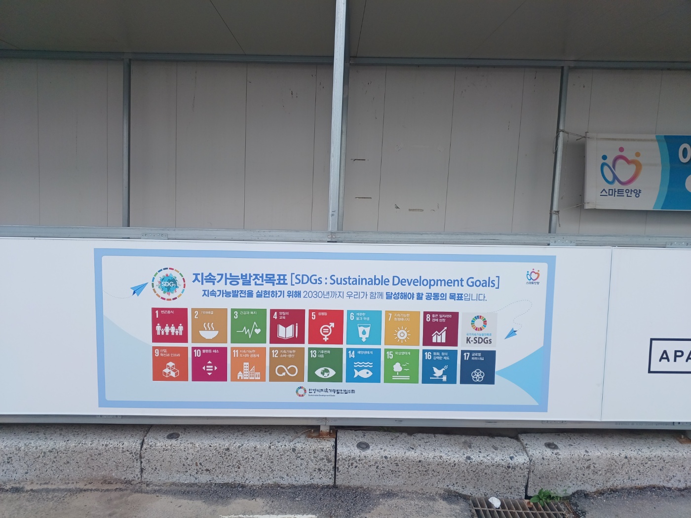 이후 안양시에서도 SDGs 이미지가 공사장 가설울타리에 부착되도록 적극 나선 결과 지난 6월 평촌동54-8외 6필지(근린생활시설 신축공사)에 SDGs 홍보 가림막이 처음 부착됐으며 안양 비산동 삼호아파트 재개발 공사 현장에도 SDGs가 설치됐다.