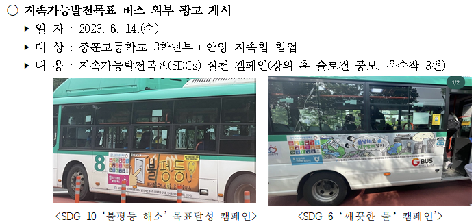 이는 지난 2023년 6월 SDGs 홍보를 위한 안양시내 버스 외부광고에 이은 쾌거다.