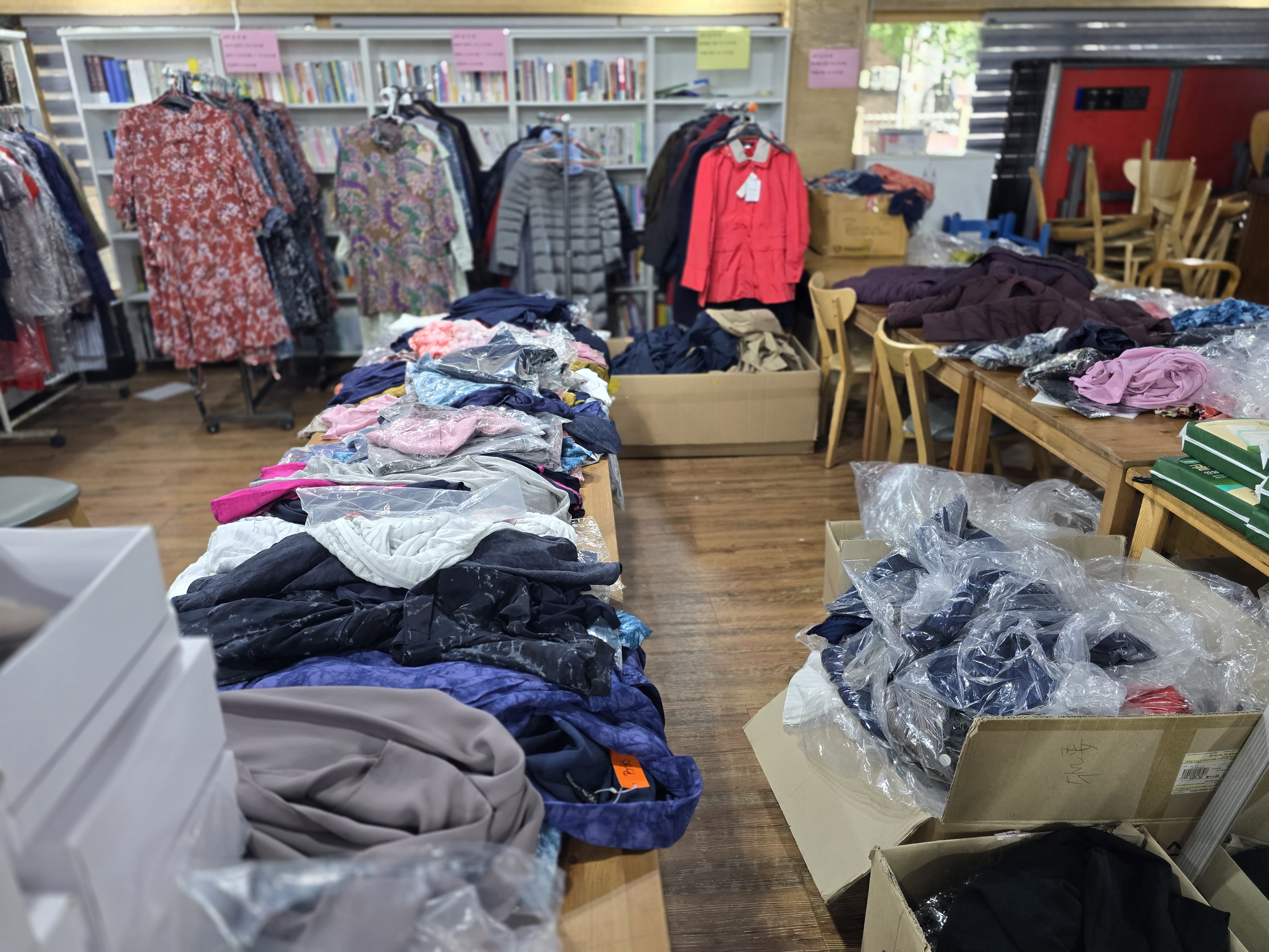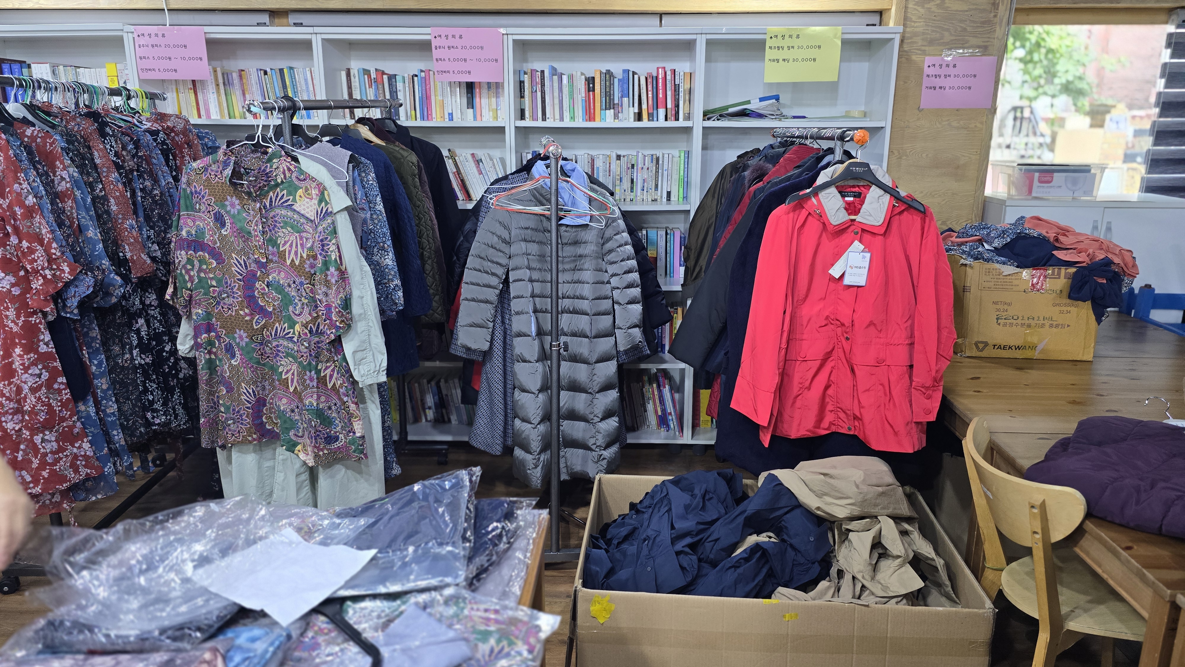 2024.07.15/ #도시기록 #인민교회 #둥지카페 #바자회/ 안양 공유냉장고 1호점이 있는 박달동 안민교회에서 바자회가 열리는중. 지난 15일 시작됐는데 물건이 많아 기간 연장 운영중입니다. 좋은 물건들이 많아요. 가격은 거의 공짜 수준^^