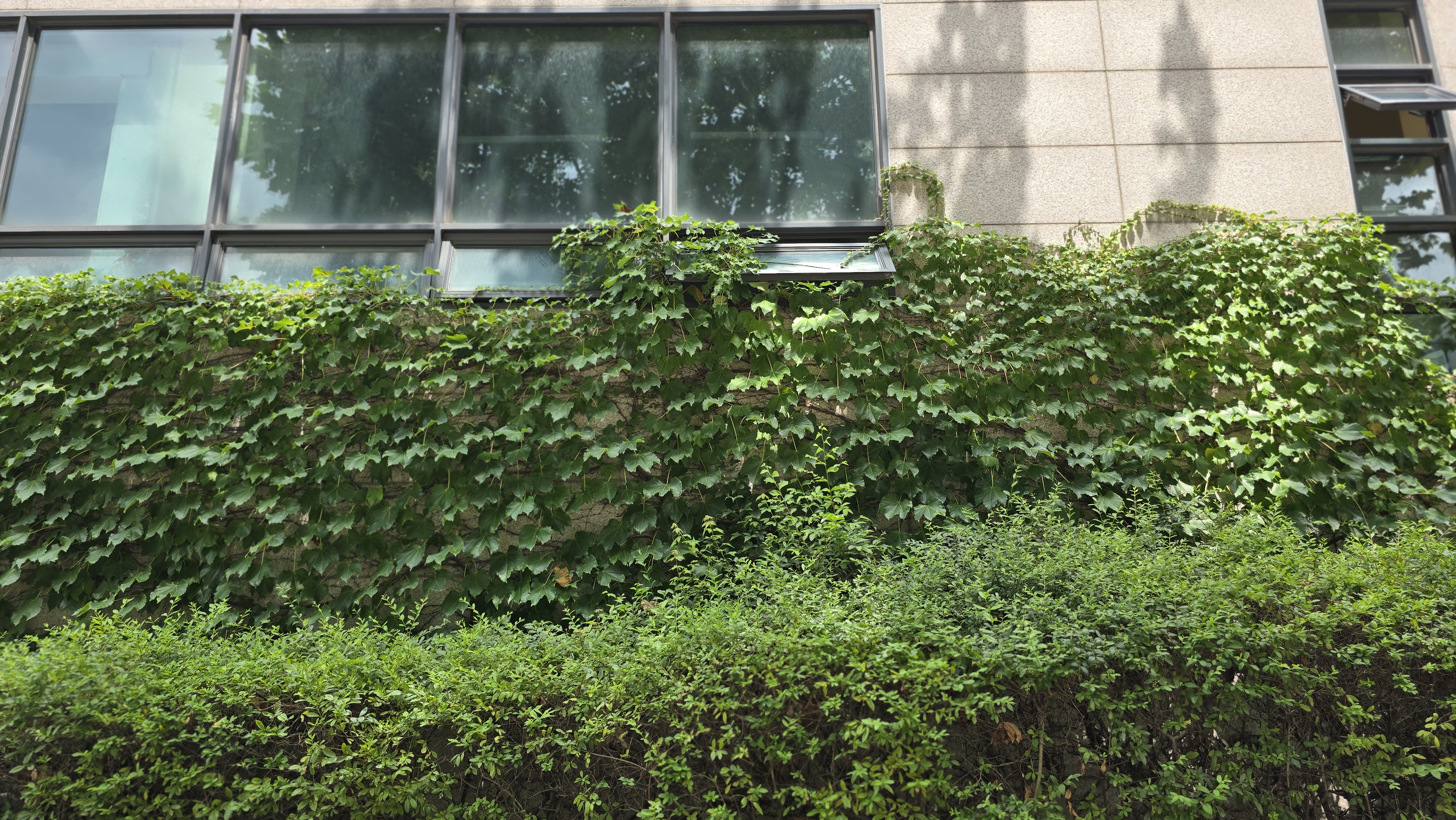 2024.07.15/ #도시기록 #안양 #벽면녹화 #담쟁이덩굴 #저탄소/ 안양 동안구청 민원실옆 별관 건물 벽면에 담쟁이넝굴이 번지고 있다. 내년 여름에는 벽면 전체가 짙푸른 녹음으로 더욱 멋지지 않을까 싶다.