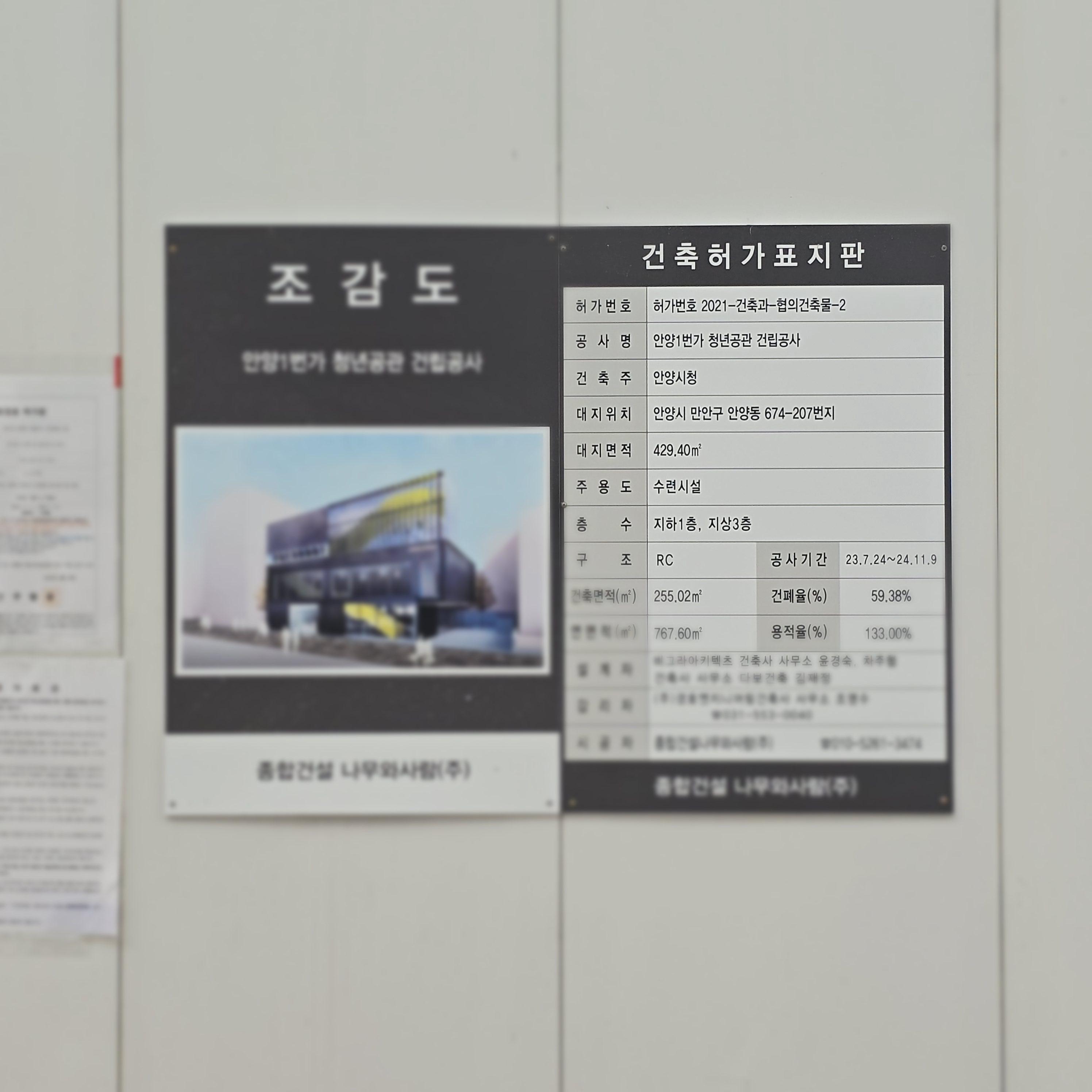 2024.08.08/ #도시기록 #안양 #안양일번가 #안양1동 #청년공간/ 안양일번가 쌈지공원 자리(구 서이면사무소옆)에 짓고 있는 청년공간 건립공사.