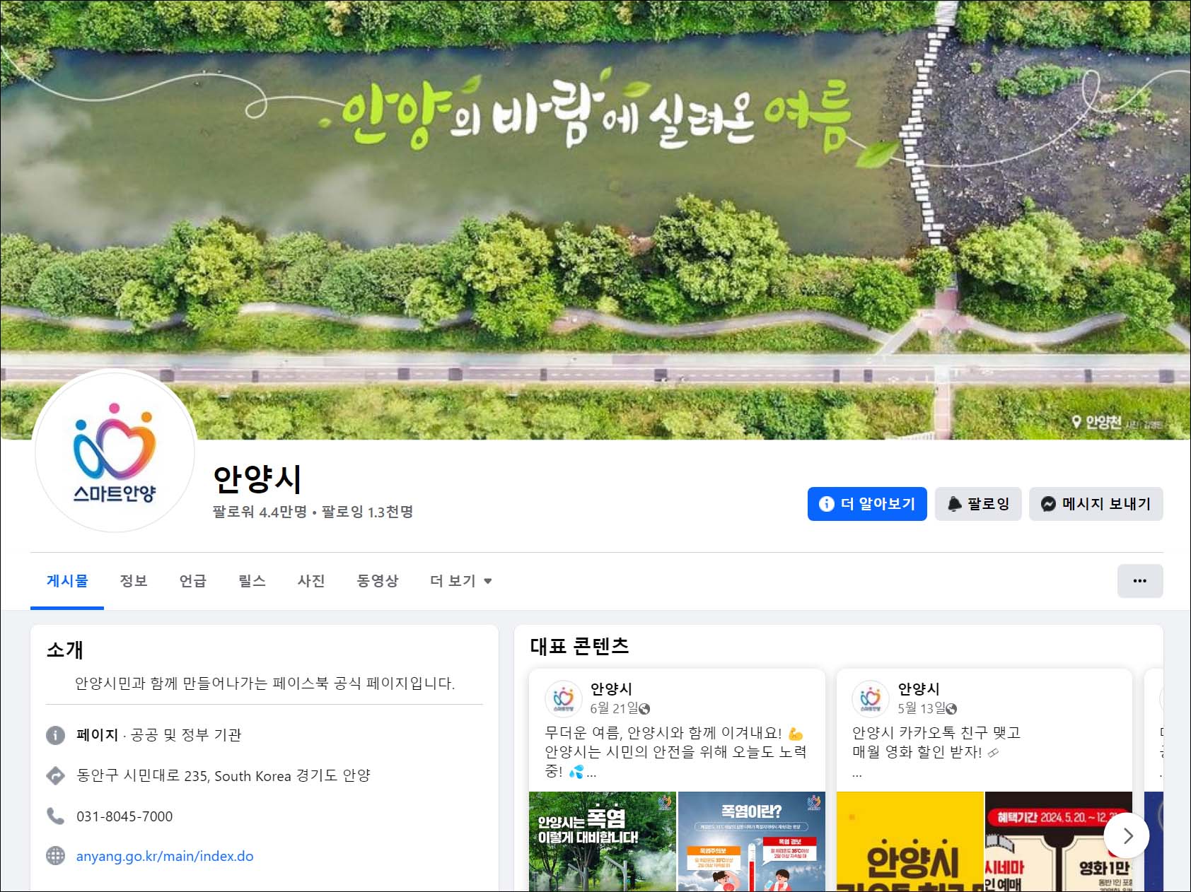 페이스북은 신고를 받고, 해당 게시물이 문제가 있다고 판단하는 경우 게시물을 삭제하고 해당 계정을 정지하는 조치를 할 수 있습니다만, 안양시가 올린 게시물은 시민들에게 제공하는 시정 소식과 정보였습니다.