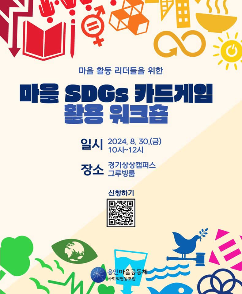 용인마을공동체 사회적협동조합에서 'SDGs 카드'의 활용을 위해 ‘마을SDGs 카드게임’ 활용 워크숍을 엽니다.