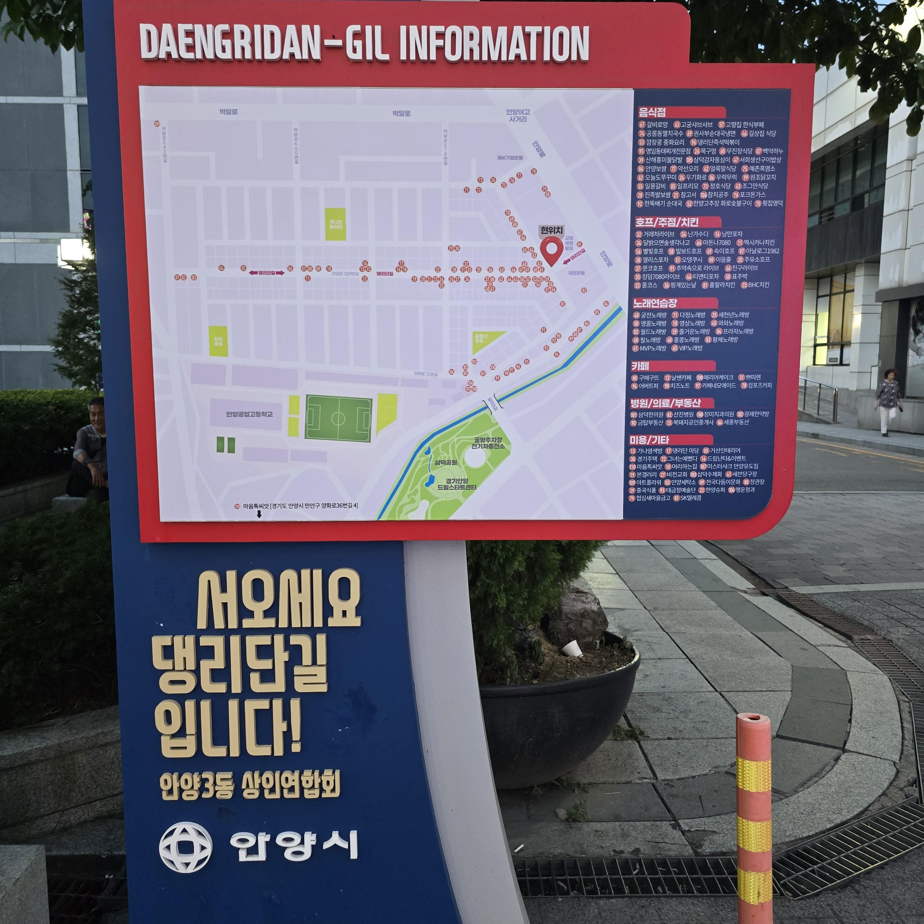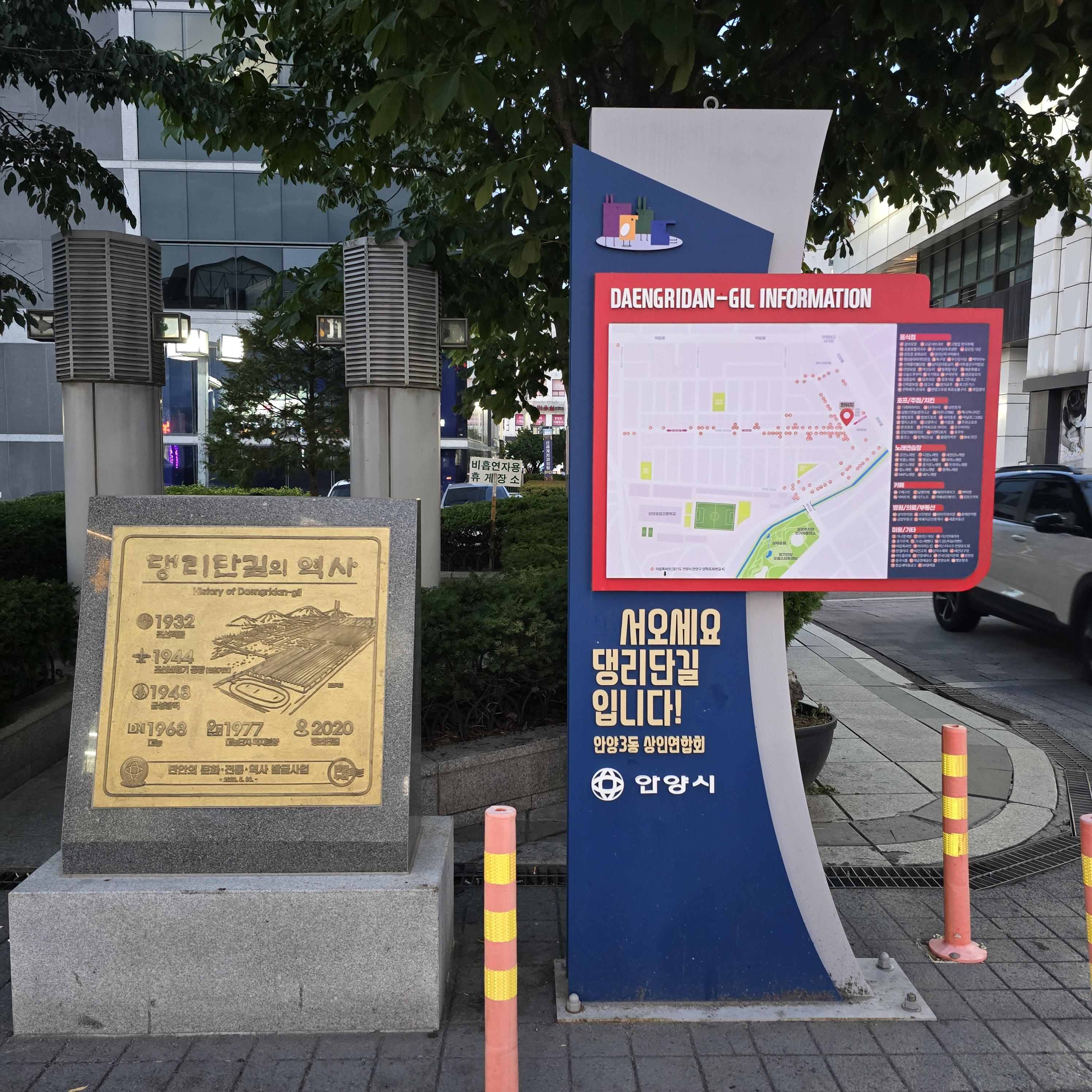 2024.08.20/ #도시기록 #안양 #댕리단길 #대농단지 #안양3동/ 안양3동 댕리단길 역사 표지석과 안내도