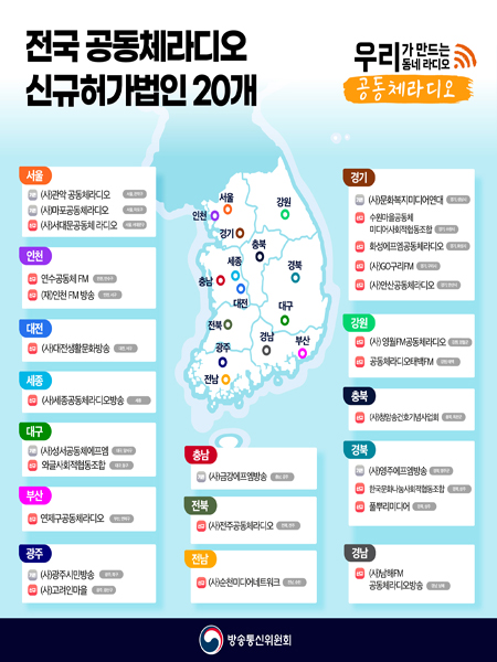 이후, 공동체라디오방송이 지역사회 내 소통과 유대를 강화하는 매체로 자리매김될 수 있도록 2021년 7월 21일(수) 제30차 방송통신위원회 전체회의에서 공동체라디오 방송 신규허가 대상 사업자 선정을 심의·의결하였다. 이때 허가를 받은 공동체라디오는 총 20곳으로, 옥천FM(충북 옥천군), 성주FM(경북 성주군), GBS고려방송(광주 광산구), 세종FM(세종특별자치시), 남해FM(경남 남해군), 서대문FM(서울 서대문구), 수원FM(경기 수원 팔달구), 영월FM(강원 영월군), 연제FM(부산 연제구), 전주FM(전북 전주시 덕진구), 단원FM(경기 안산시 단원구) 등이 개국하면서 27개로 늘어났다.