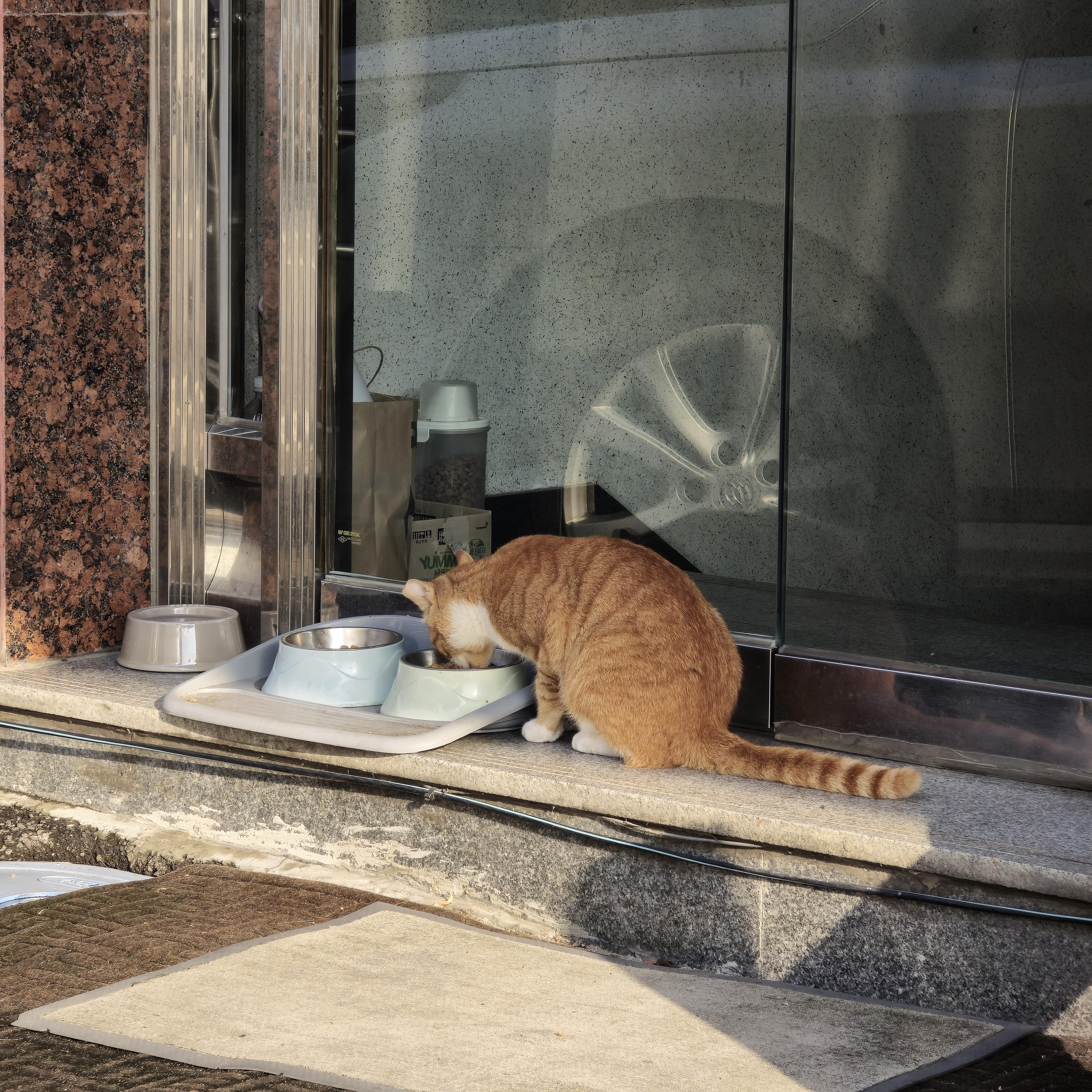 2024.08.24/ #도시기록 #안양 #평촌 #귀인동 #딜냥이 #나옹이/ 안양 평촌 귀인동 단독주택단지 골목을 걷다가 만난 길고양이. 녀석이 어디로 가나 뒤를 쫓았더니 어느집 현관앞. 사료그릇이 있는걸 보니 길고양들을 챙겨주시는 선하신 분이 계신듯 싶다. "감사합니다"