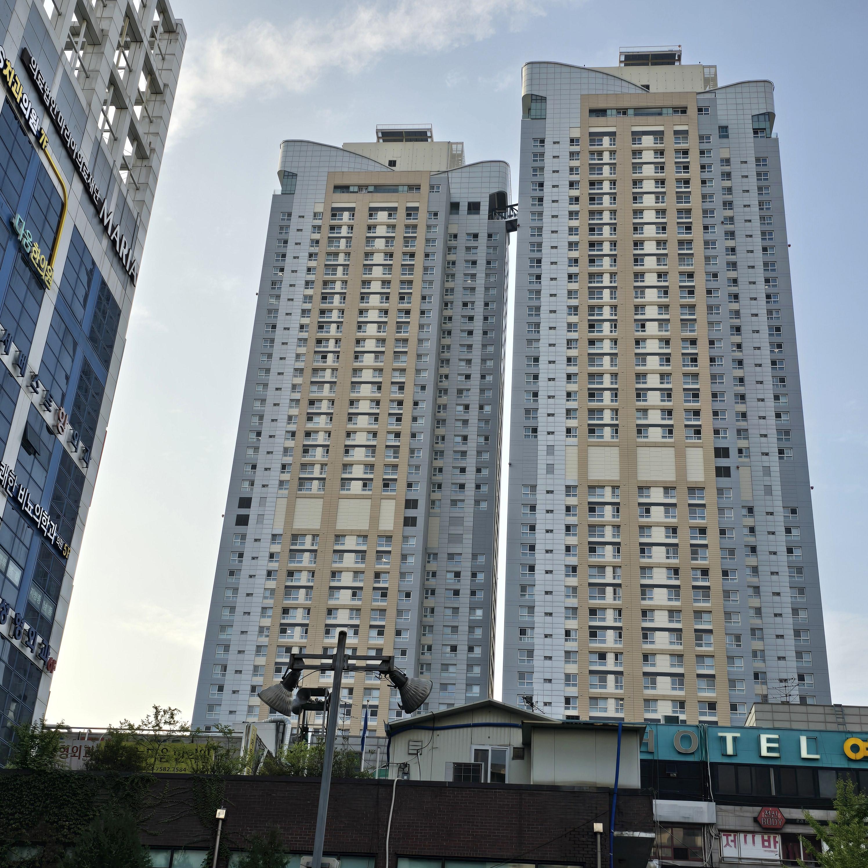 2024.08.24/ #도시기록 #힐스테이트범계모비우스 #43층/ 안양에서 가장 높은 건물. 옛 NC백화점을 허물고 그 자리에 지상 43층의 2개동으로 신축된 '힐스테이트 범계역 모비우스'로 안양의 새로운 랜드마크다. 2021년 8월 준공한 이 건물은 부동산 개발업체인 피데스개발이 시행하고 현대건설이 시공했으며 지하7층∼지상43층 2개동 622실(전용면적 49∼84㎡) 규모로 지상 150m 높이에 두 건물을 잇는 브릿지 연결통로(바닥 일부 투명유리)가 명소로 알려졌다.