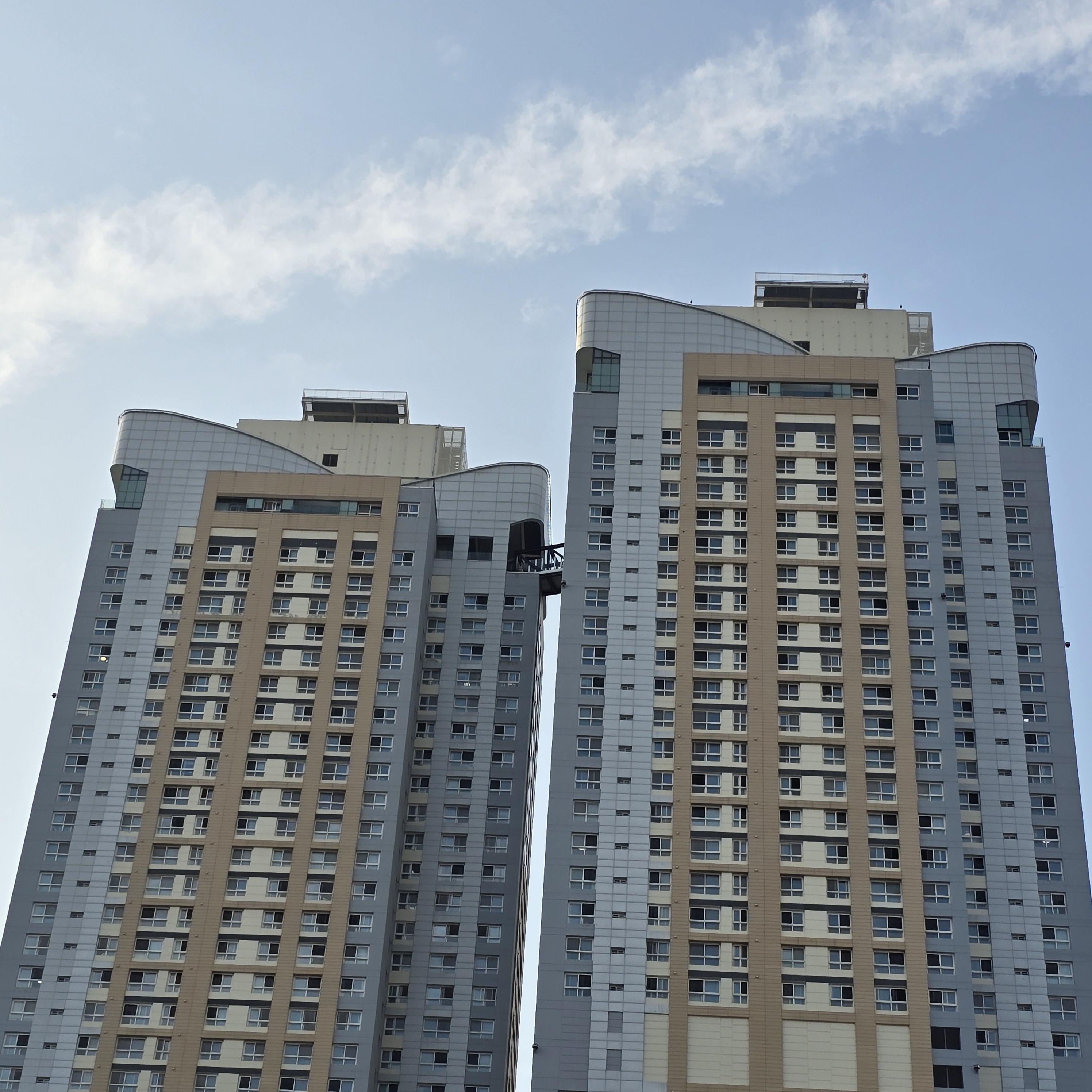2024.08.24/ #도시기록 #힐스테이트범계모비우스 #43층/ 안양에서 가장 높은 건물. 옛 NC백화점을 허물고 그 자리에 지상 43층의 2개동으로 신축된 '힐스테이트 범계역 모비우스'로 안양의 새로운 랜드마크다. 2021년 8월 준공한 이 건물은 부동산 개발업체인 피데스개발이 시행하고 현대건설이 시공했으며 지하7층∼지상43층 2개동 622실(전용면적 49∼84㎡) 규모로 지상 150m 높이에 두 건물을 잇는 브릿지 연결통로(바닥 일부 투명유리)가 명소로 알려졌다.
