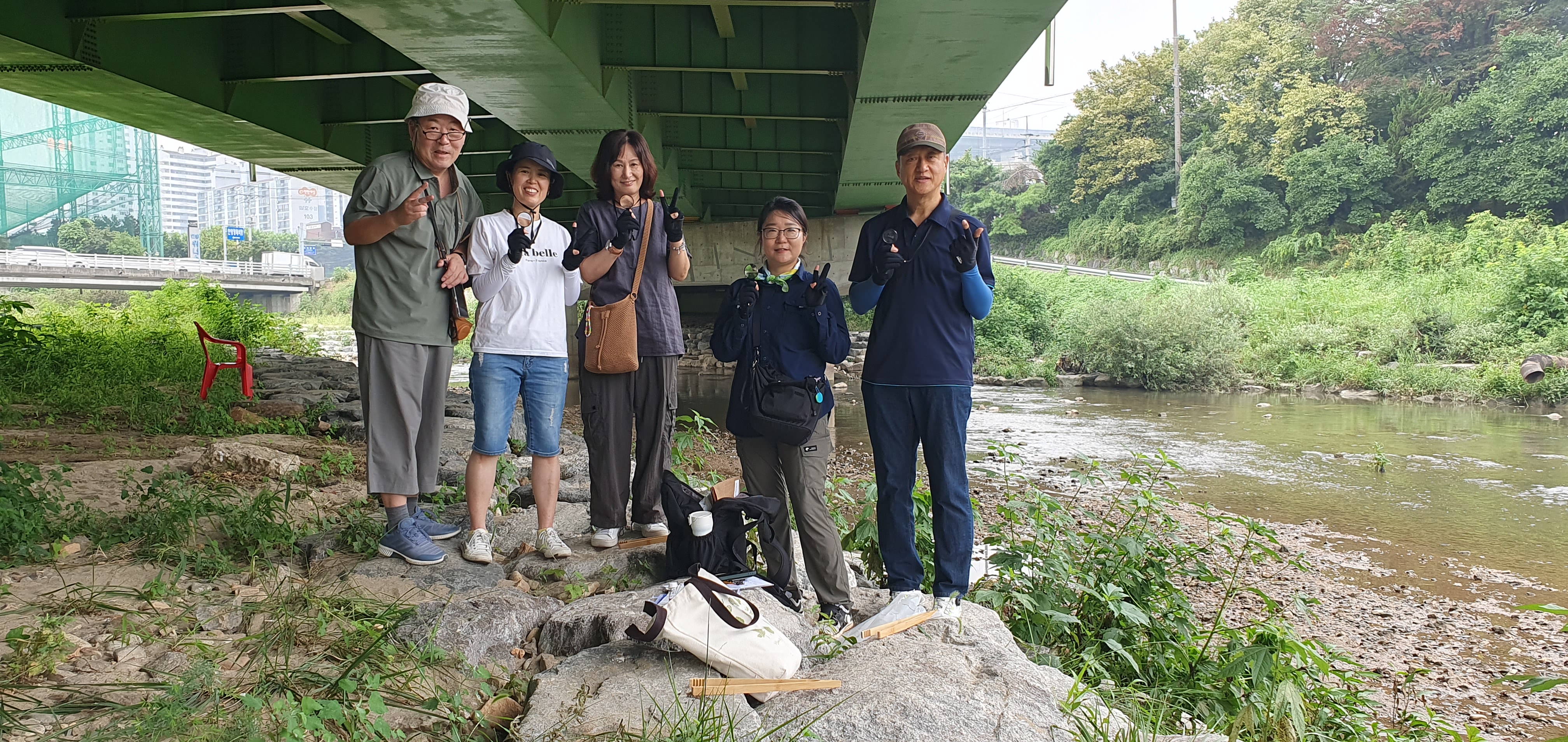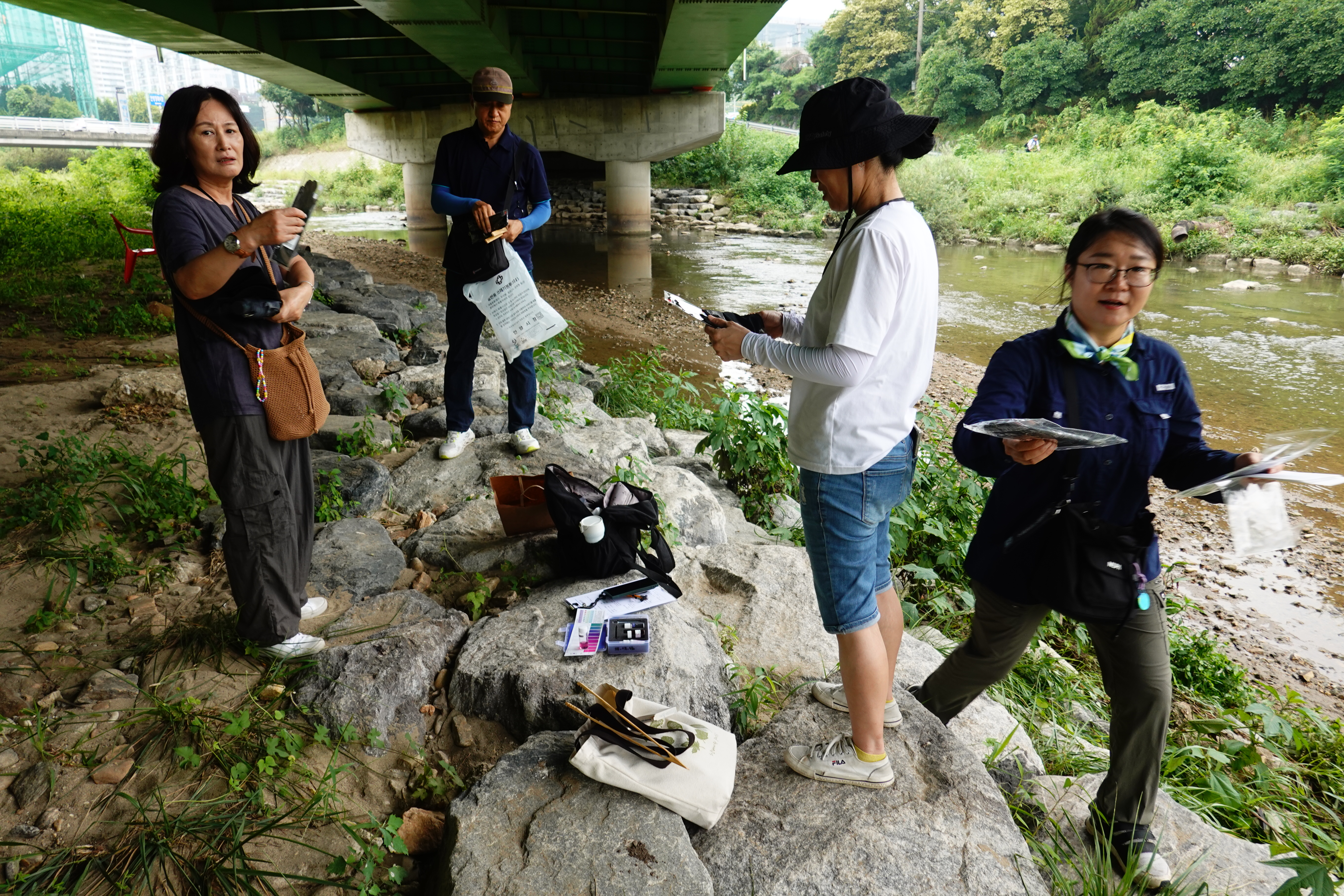 2024.08.25/ #도시기록 #안양천 #모니터링 #생태 #사람 #생물다양성/ 안양지속가능발전협의협 2024년 8월 하천 생태모니터링. 안양천(명학대교에서 군포교 구간)에서 생물 조사. 수질측정(2곳). 쓰레기 줍기 등을 실시하다.