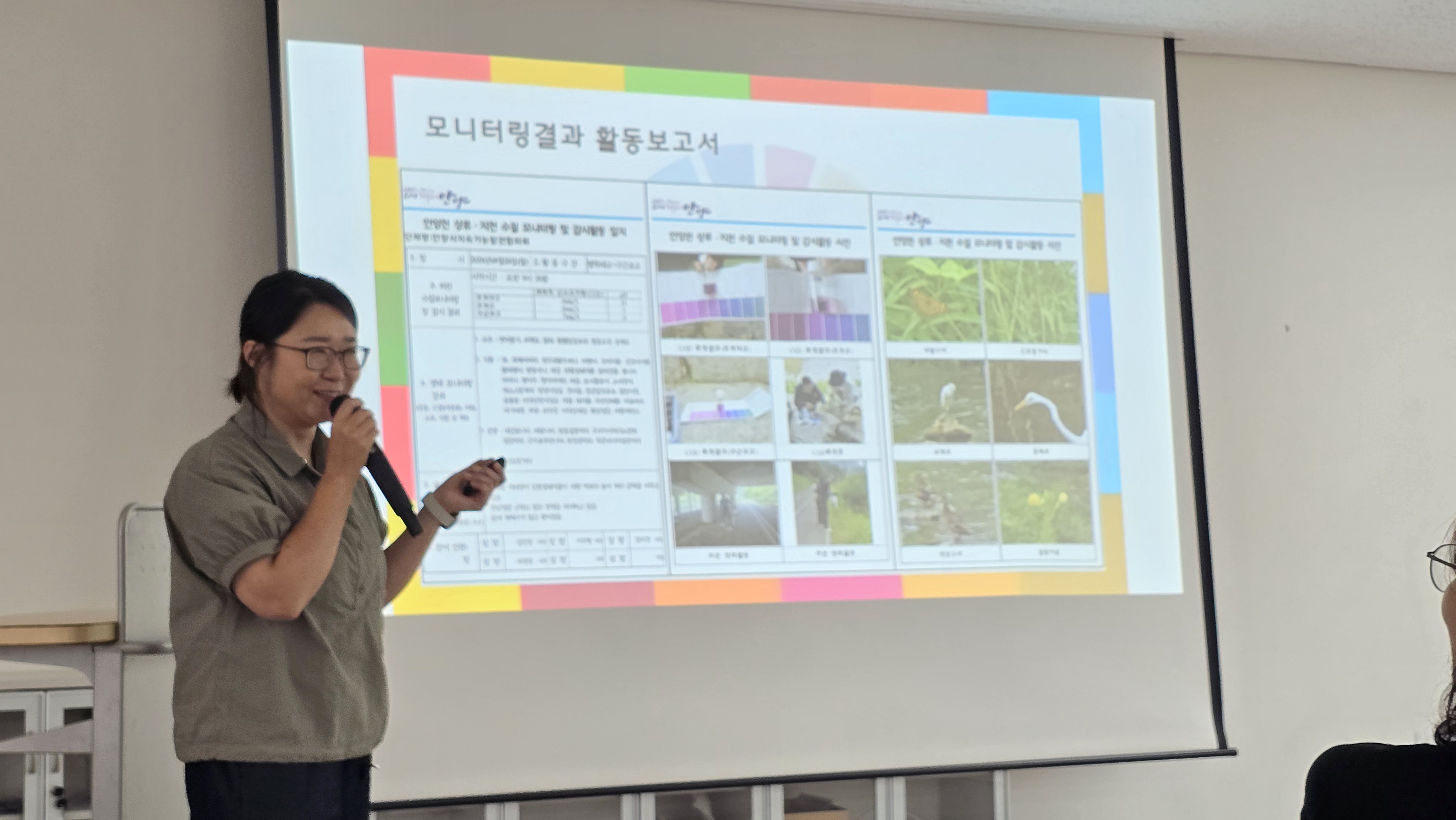 세번째 순서에서는 하천 모니터링을 직접 하고있는 5개 각 단체 팀장들이 마이크를 잡고 발표하는 시간을 가졌다. 이 시간을 통해 참가자들은 각 단체가 지천에서 해오고 있는 모니터링 사례와 결과를 듣고 배우면서 서로의 경험도 나누었다.