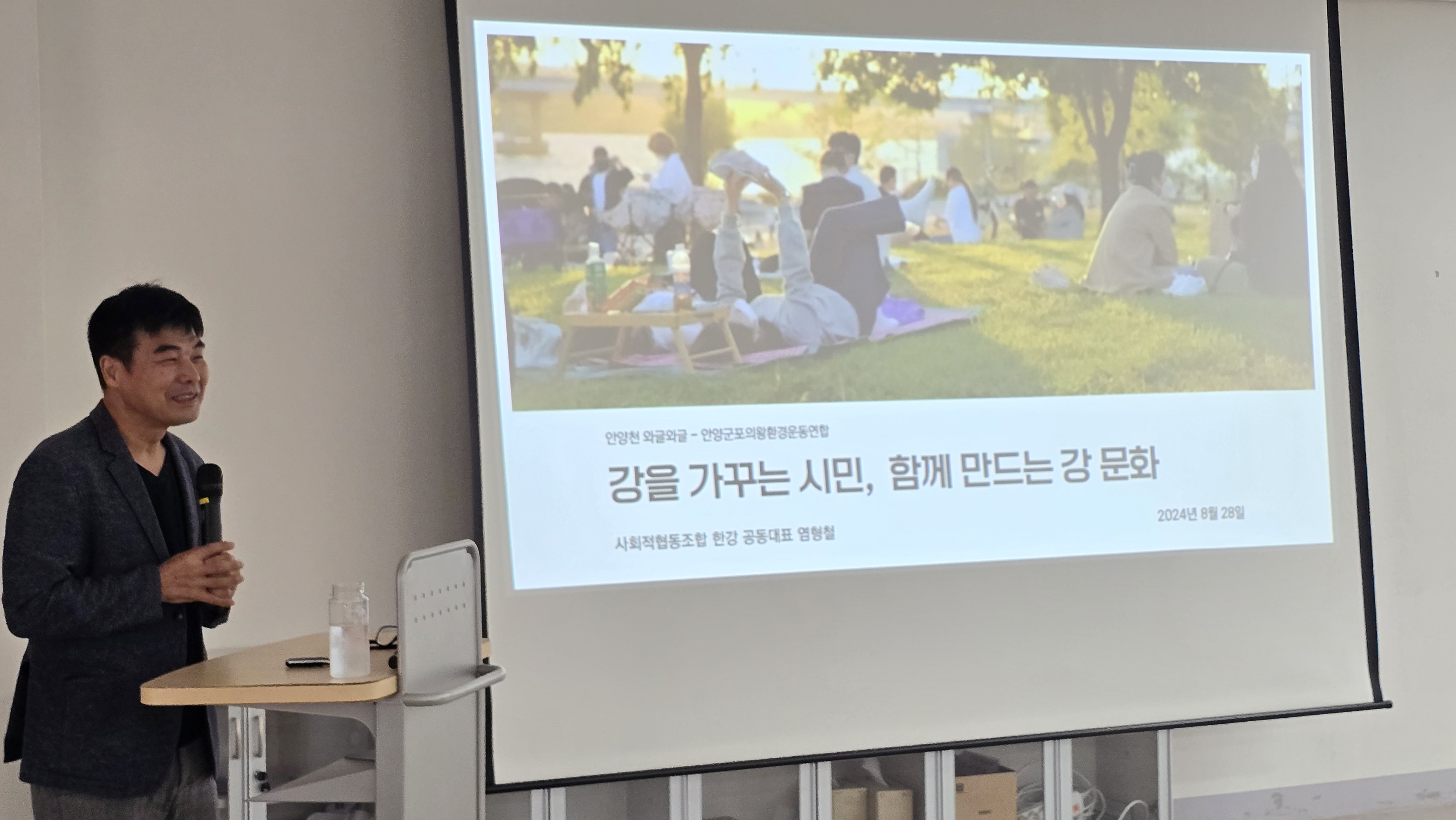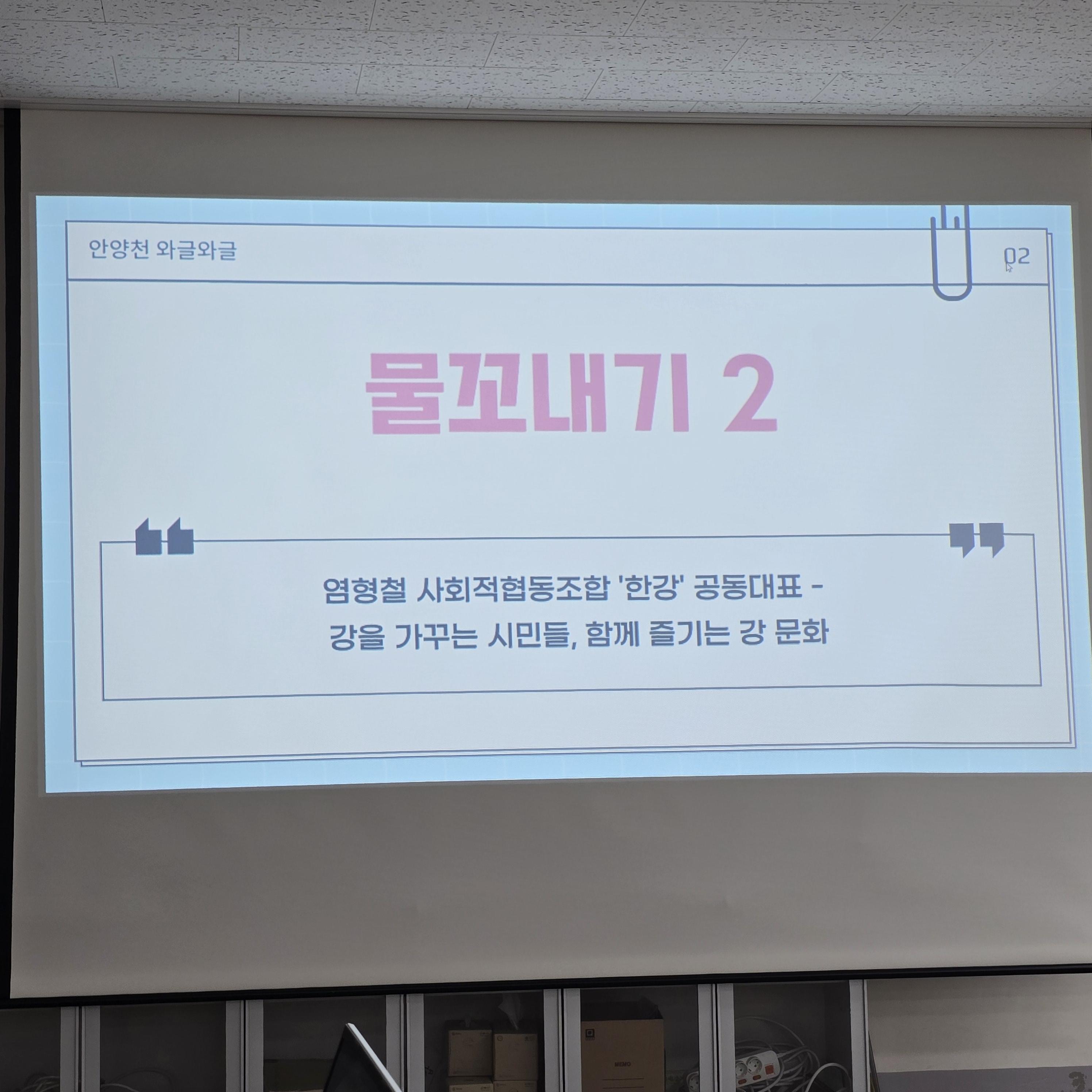 이어 물꼬내기 두 번째 순서에서는 사회적협동조합 ‘한강'의 염형철 대표의 강의를 롱해 ’한강‘ 샛강에서 펼쳐온 다양한 프르그램과 사례를 통해 강을 가꾸는 시민들과 함께 즐기는 강문화에 대해 듣는 사간을 가졌다.