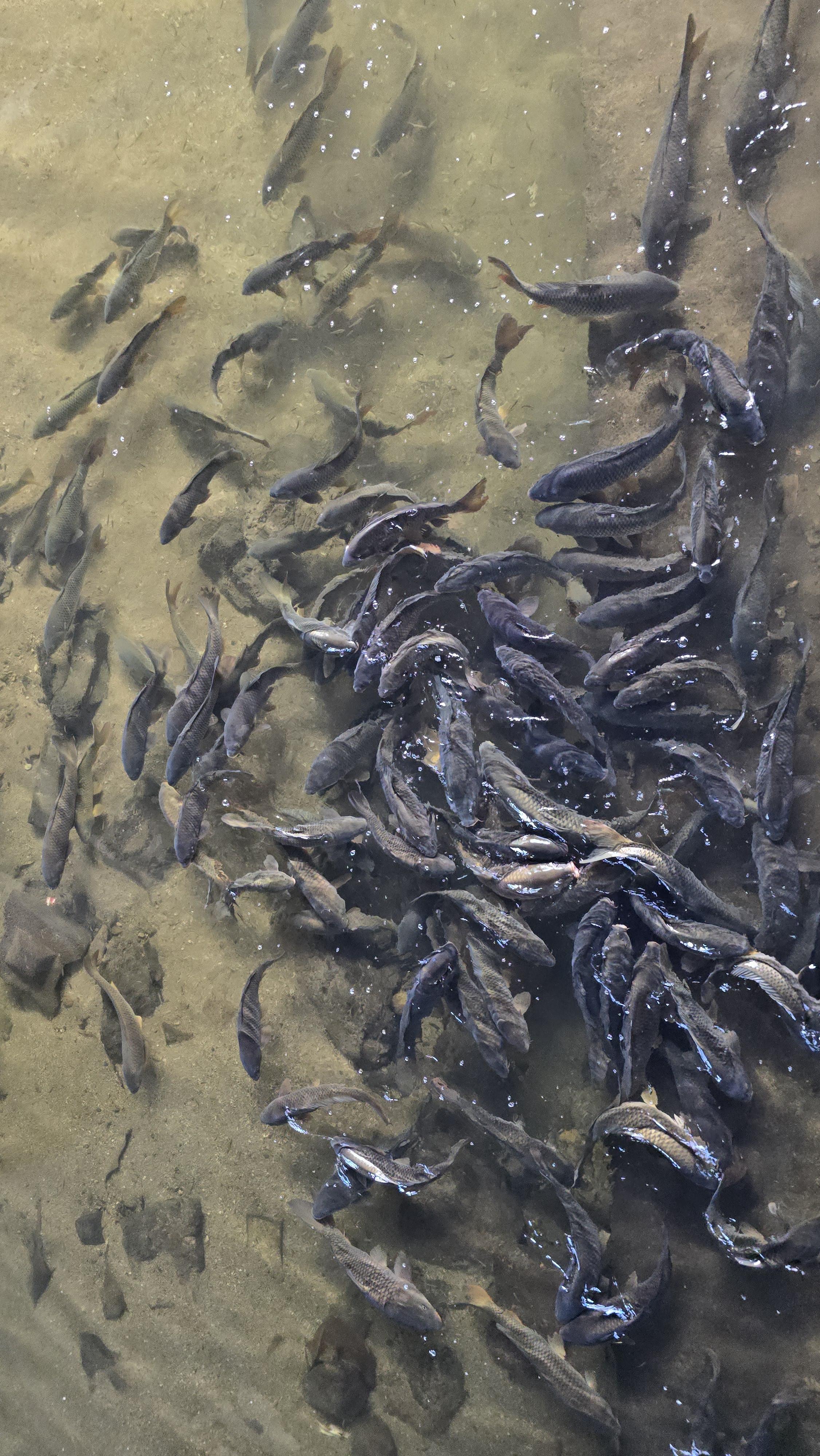 2024.09.01/ #도시기록 #안양 #생태 #학의천 #잉어떼 #수촌교 1년 4계절 잉어들이 모여있는곳. 뜨거운 햇살을 피해 그늘진 다리 아래로 모인 잉어들이 바글바글하다. 사람이 주는 먹이에 익숙한듯 난간에 사람이 가까이 가면 잉어들이 반사적으로 몰려들고 사람이 이동하는 방향을 따라서 계속 쫓아다닌다.