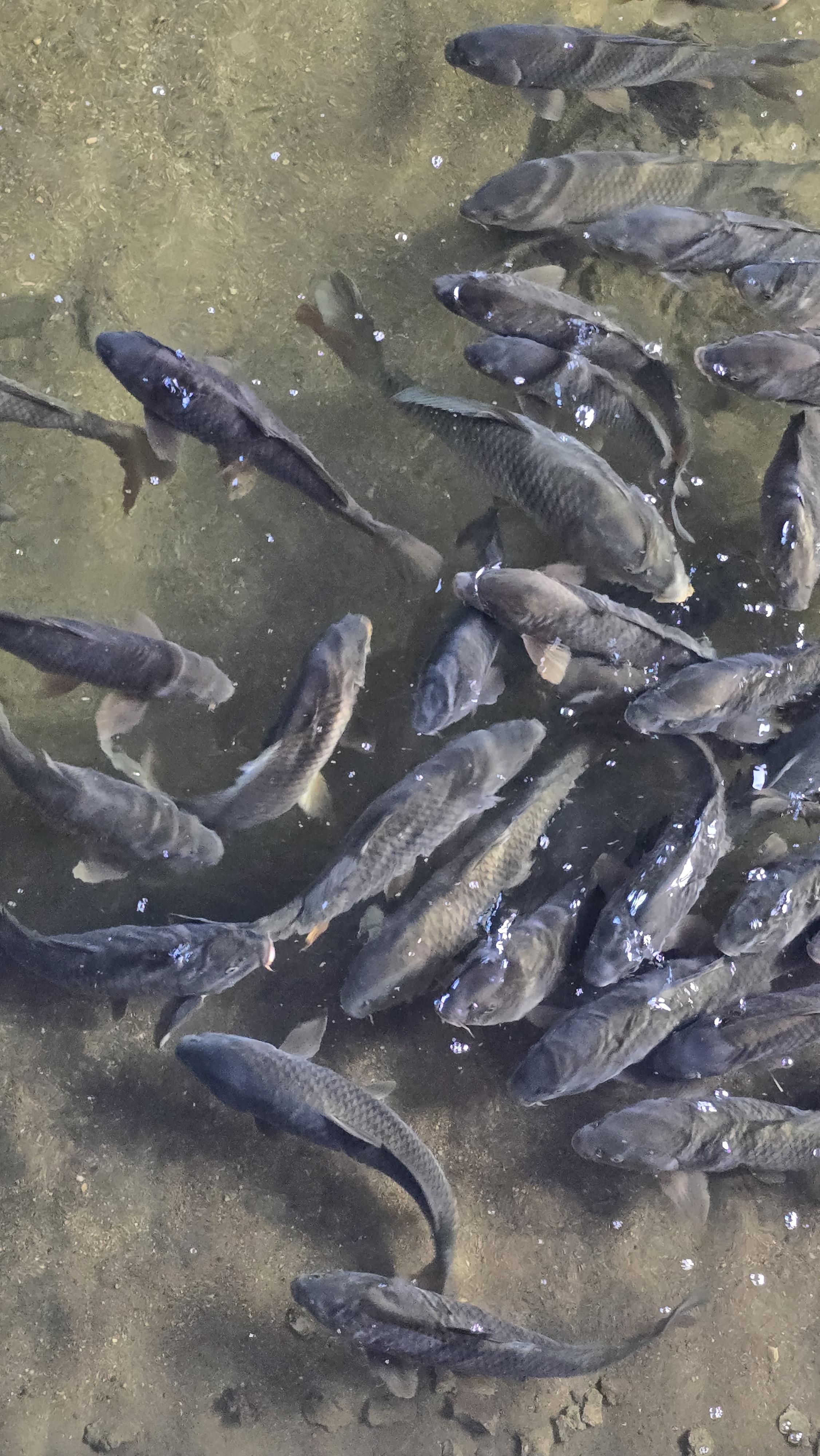 2024.09.01/ #도시기록 #안양 #생태 #학의천 #잉어떼 #수촌교 1년 4계절 잉어들이 모여있는곳. 뜨거운 햇살을 피해 그늘진 다리 아래로 모인 잉어들이 바글바글하다. 사람이 주는 먹이에 익숙한듯 난간에 사람이 가까이 가면 잉어들이 반사적으로 몰려들고 사람이 이동하는 방향을 따라서 계속 쫓아다닌다.