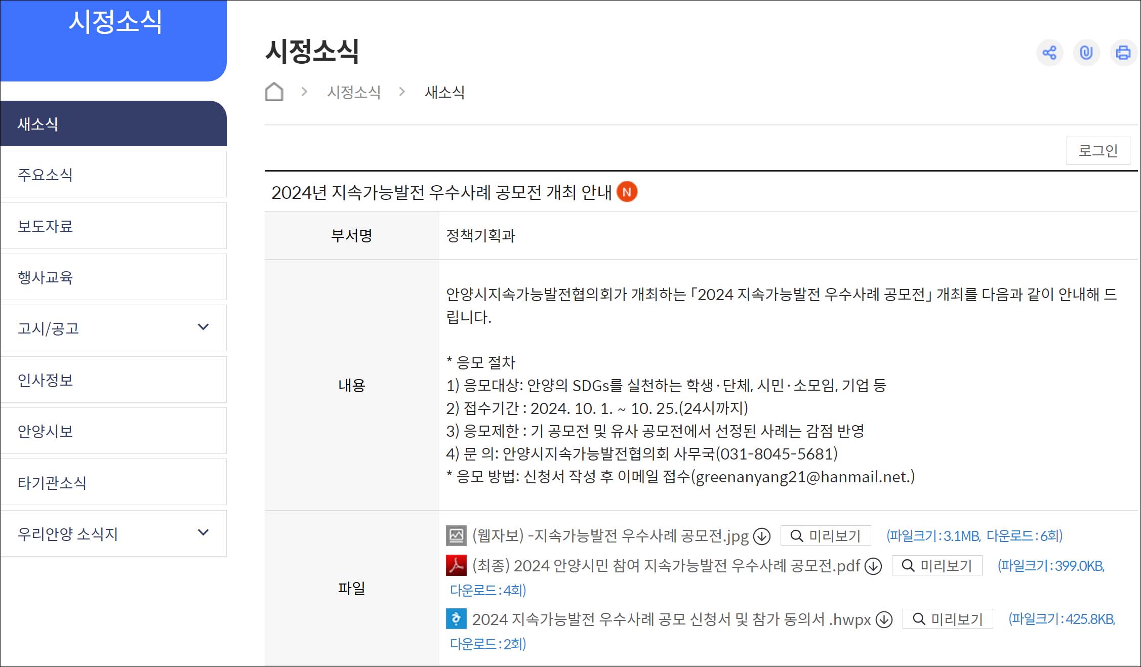 2024.09.03/ #안양시 #공모전 #안양시시지서속가능발젼협의회 #지속가능 #SDGs