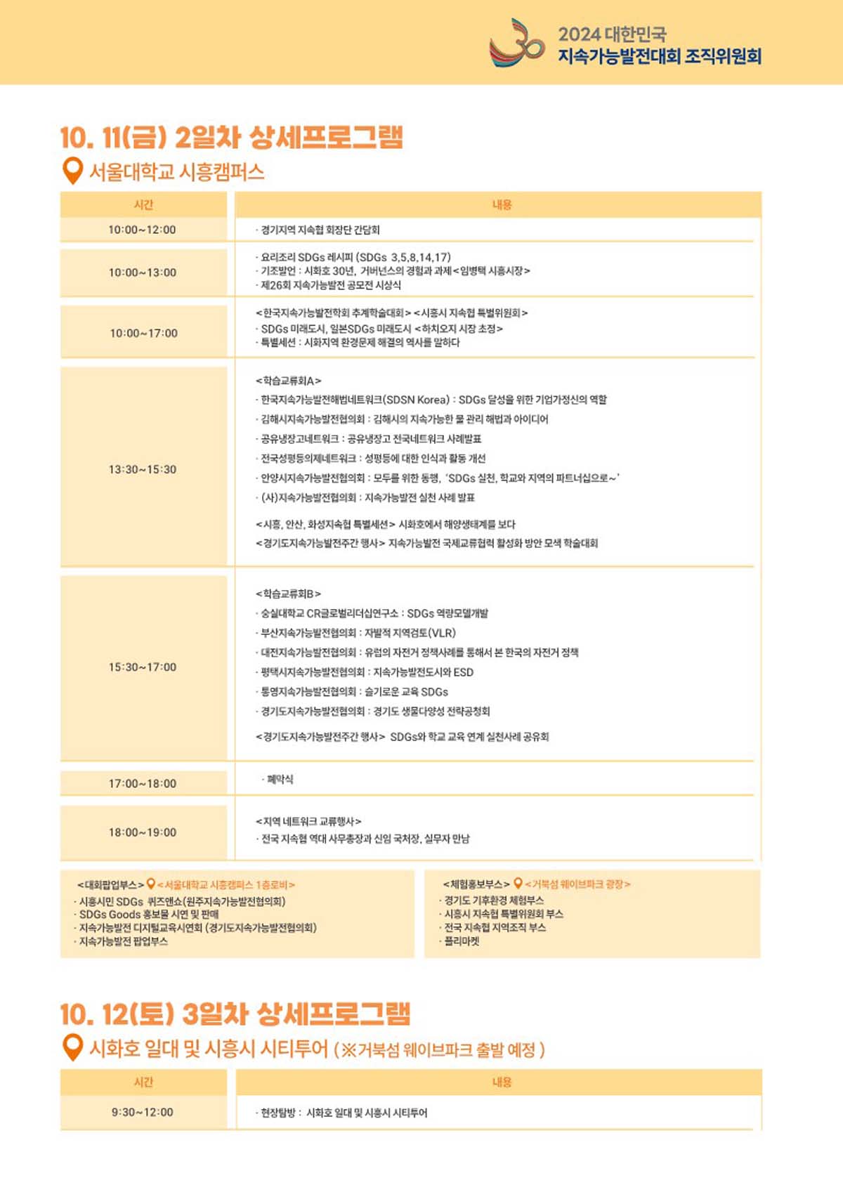 ‘2024 대한민국 지속가능발전대회’가 오는 10월 10일부터 12일까지 사흘간 시흥시 일대(거북섬 웨이브파크 광장, 서울대학교 시흥캠퍼스 등)에서 개최된다.