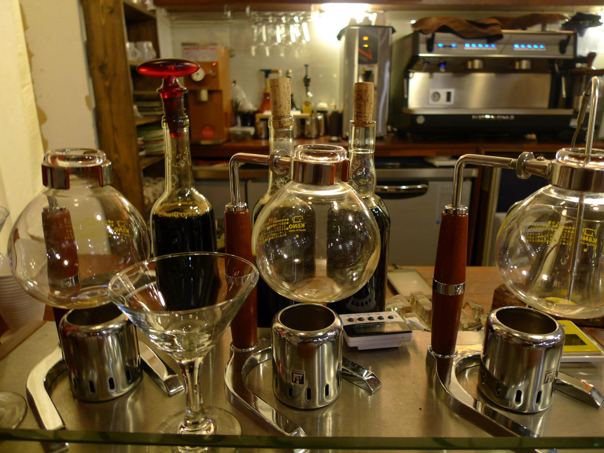 이집은 드립커피의 성지로 불리우는데 주인장(여성)이 미국, 유럽 커피 자격증에다 도자기 작가(도예가)이자 사진도 찍는 작가랍니다. 커피잔도 직접 구은 도자기. 아 그리고 ‘커피를 직접 뽑는 집’ 답게 상내에는 자양한 전세계의 원두가 잔뜩 쌓여있고, 홀 한쪽에는 원두를 볶는 큼지막한 로스팅 기계도 있고, 바리스타 교육도 하고 있지요.