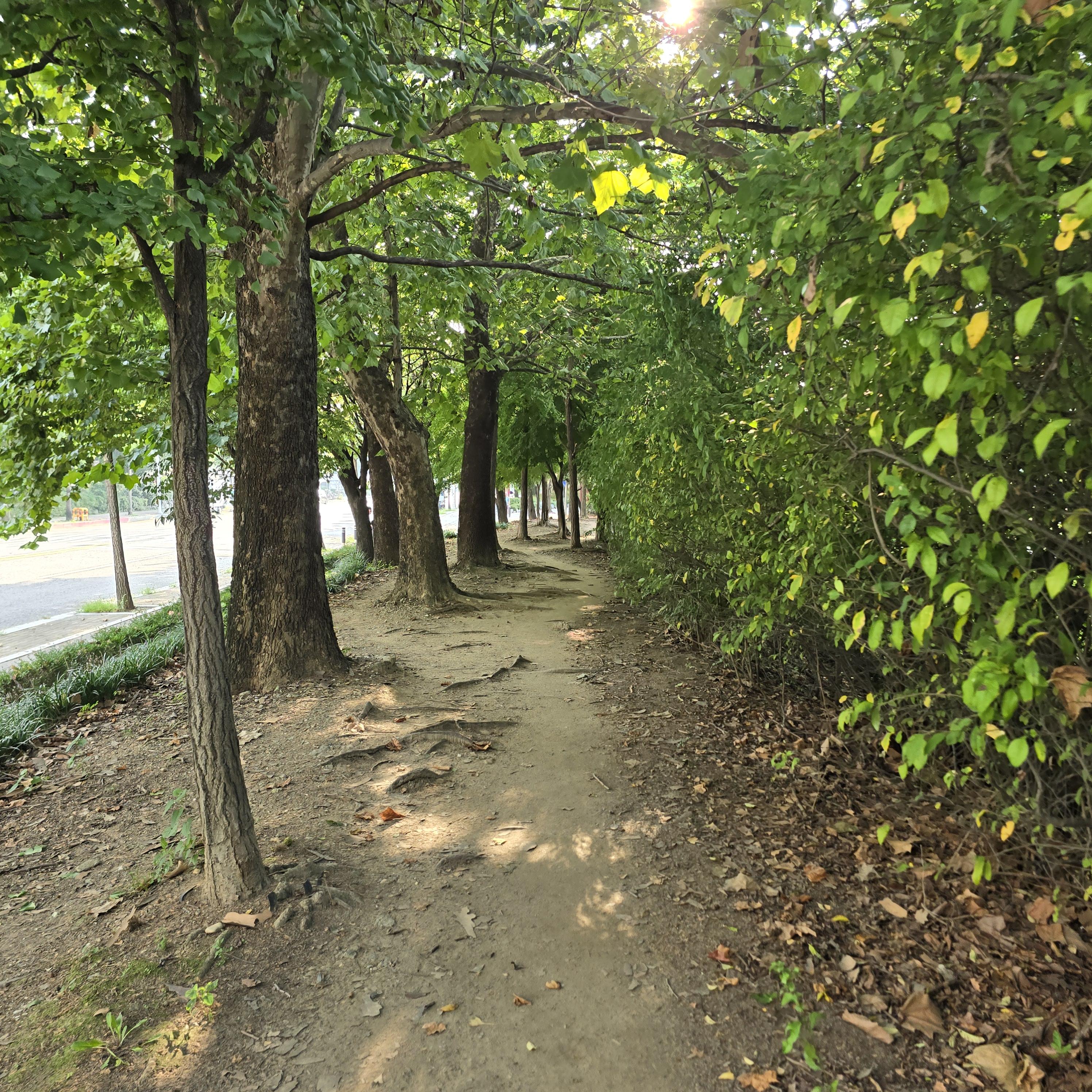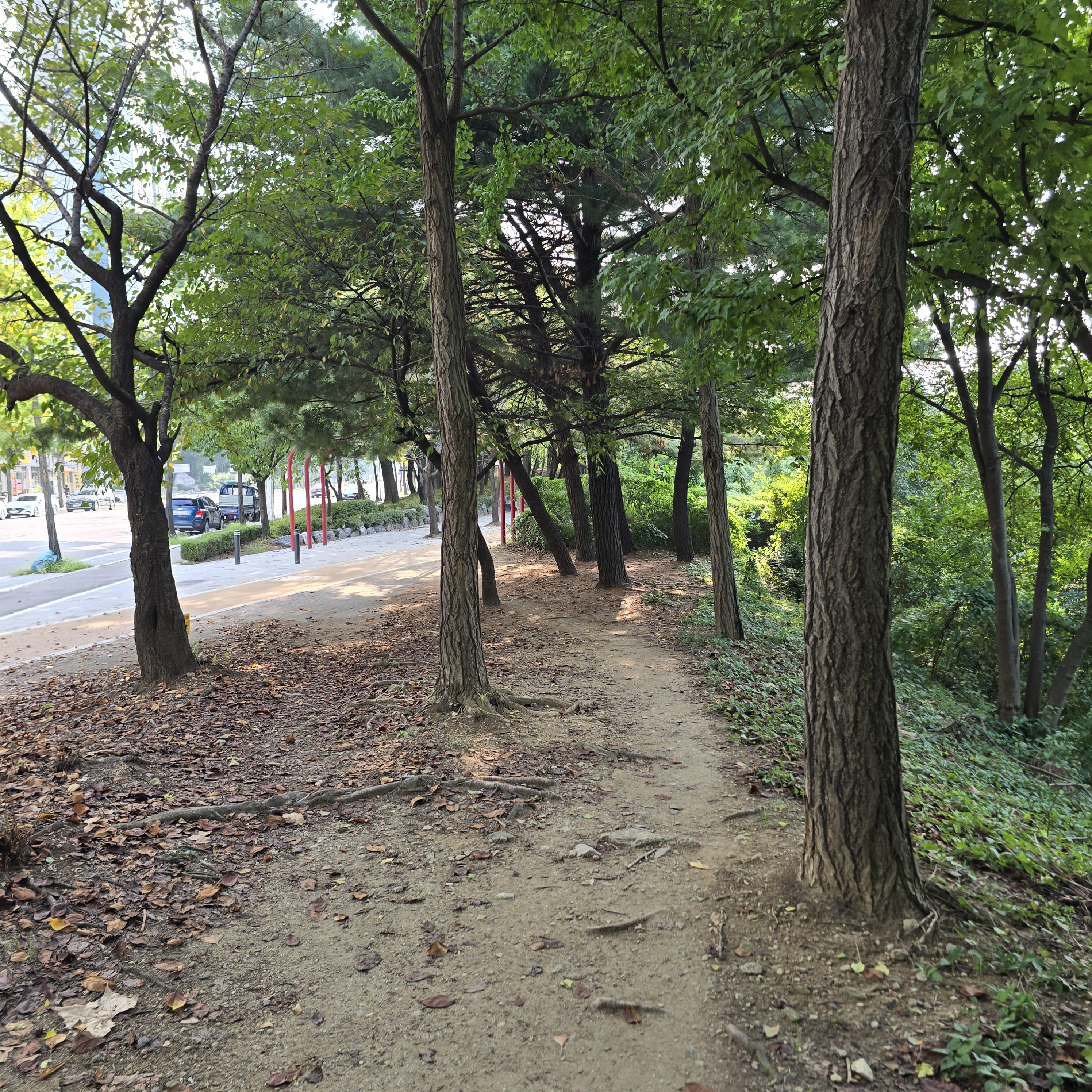 2024.08.08/ #도시기록 #안양 #학의천 #숲길 #그늘길 #제방길 #걷고싶은길/ 안양 학의천 남쪽 제방에는 동네 주민들과 아는 사람만이 걷는 길이 숨어있다. 코스는 비산인도교옆 소공원부터 시작해 대한교까지 이어지는 나무숲길로 그야말로 걷고싶은 길이다. 먼저 비산인도교부터 내비산교까지는 학운공원과 학의천 중간에 놓여진 산책길을 걷게된다.