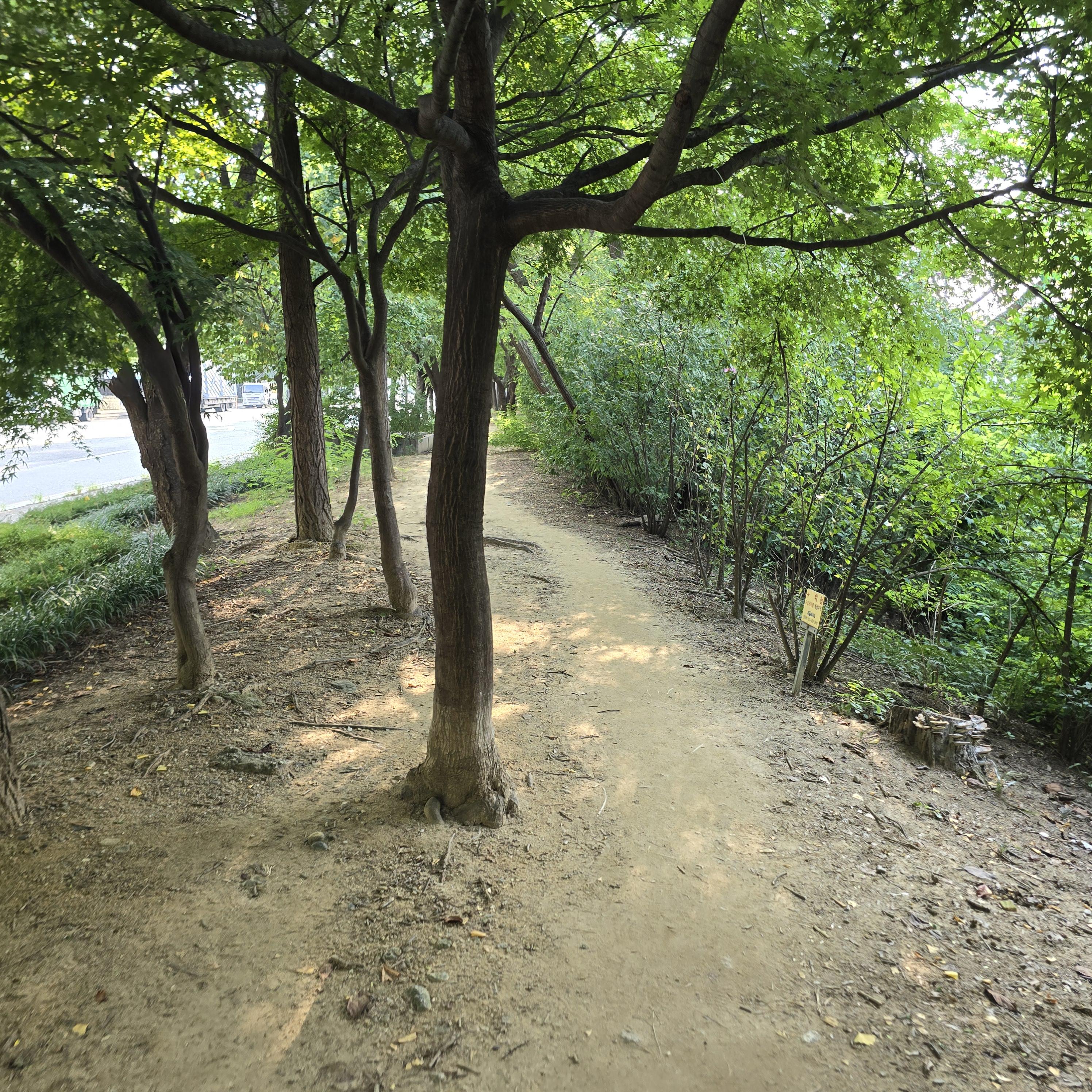 2024.08.08/ #도시기록 #안양 #학의천 #숲길 #그늘길 #제방길 #걷고싶은길/ 안양 학의천 남쪽 제방에는 동네 주민들과 아는 사람만이 걷는 길이 숨어있다. 코스는 비산인도교옆 소공원부터 시작해 대한교까지 이어지는 나무숲길로 그야말로 걷고싶은 길이다. 먼저 비산인도교부터 내비산교까지는 학운공원과 학의천 중간에 놓여진 산책길을 걷게된다.