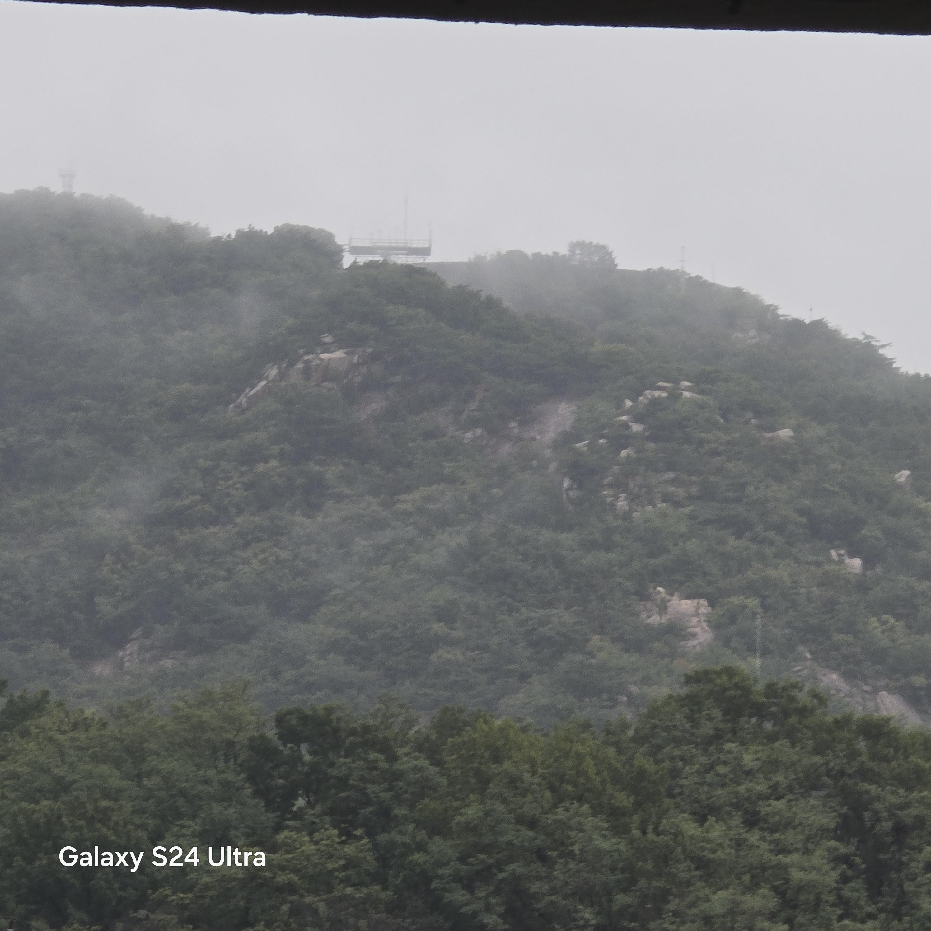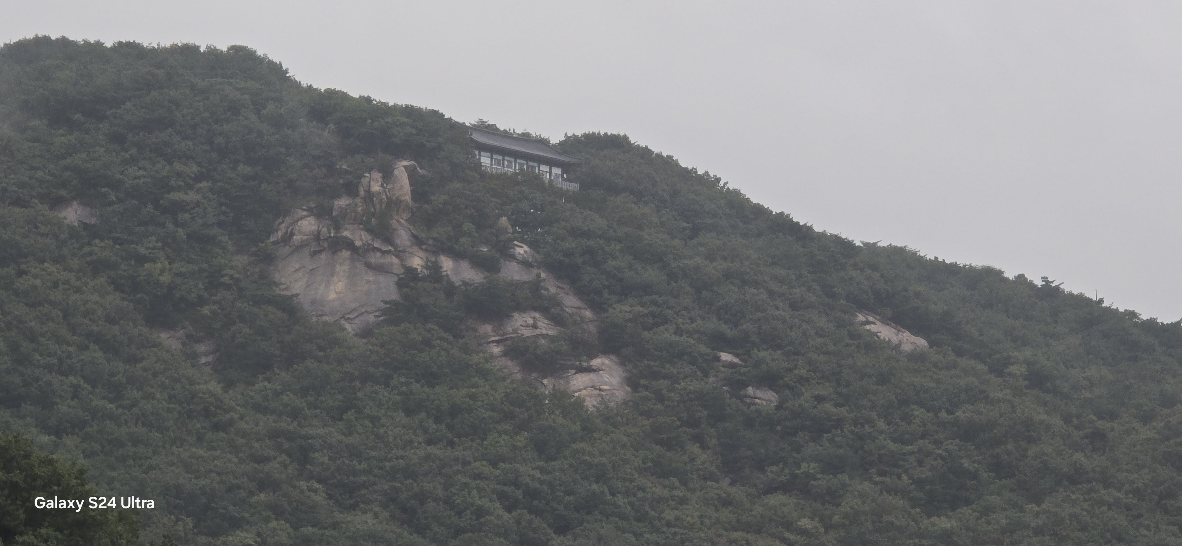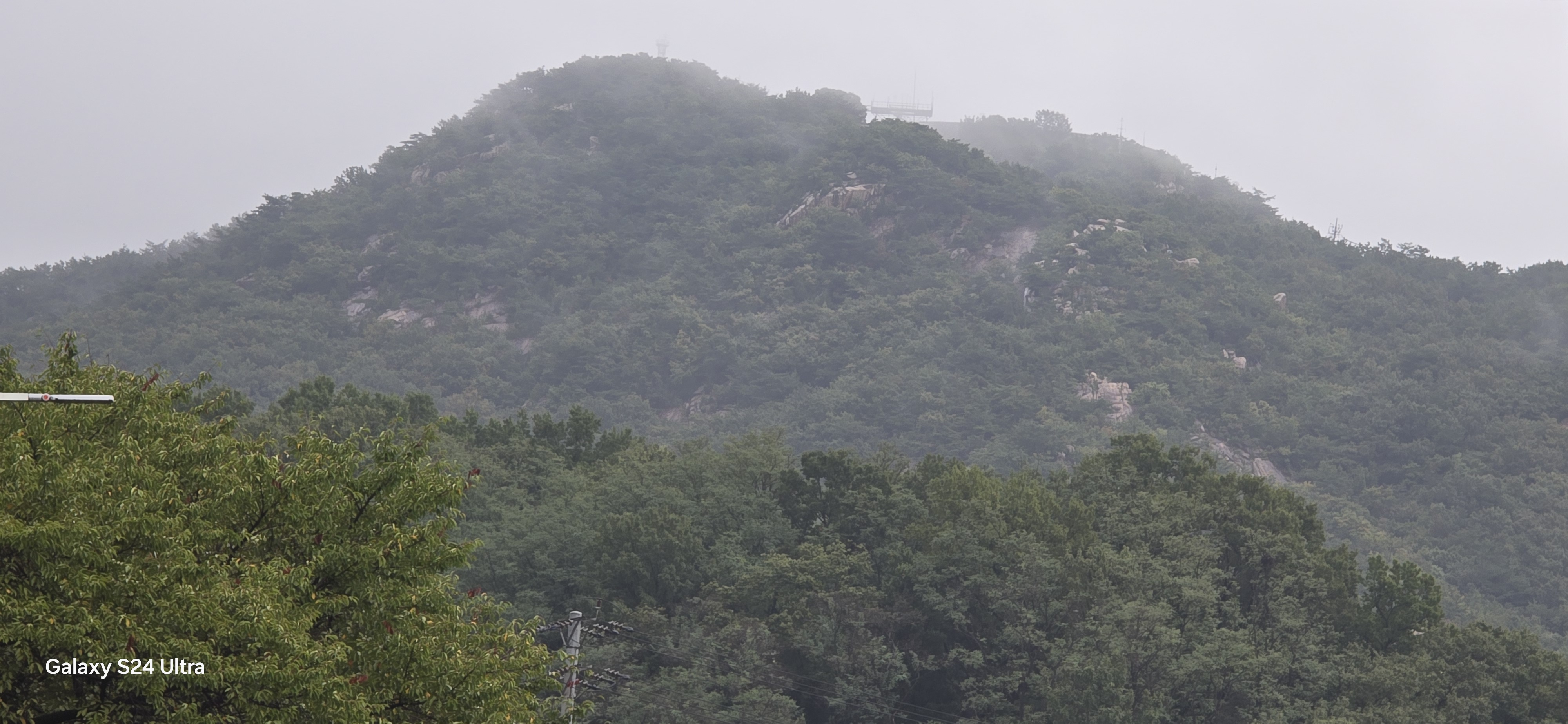 2024.09.20/ #도시기록 #안양 #비봉산 #망해암 #비행기등대/ 비 내리던 날, 안양대교에서 본 비봉산. 사진에 보이는 산은 망해암 일몰이 아름다운 비봉산으로 중턱 암벽위에는 망해암, 산 꼭대기에는 비행기 등대(안양무선표지소)가 있다.