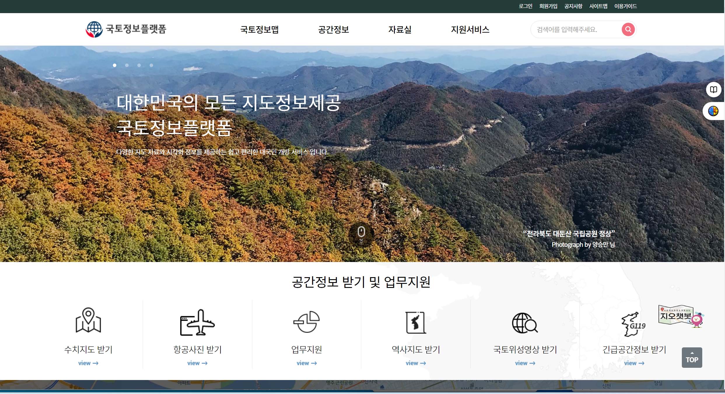 국토와 관련된 데이터에 대한 포괄적인 이용과 배포를 관리하는 국토정보 플랫폼이 다양한 지도 데이터를 공급하는 서비스를 운영하고 있다.